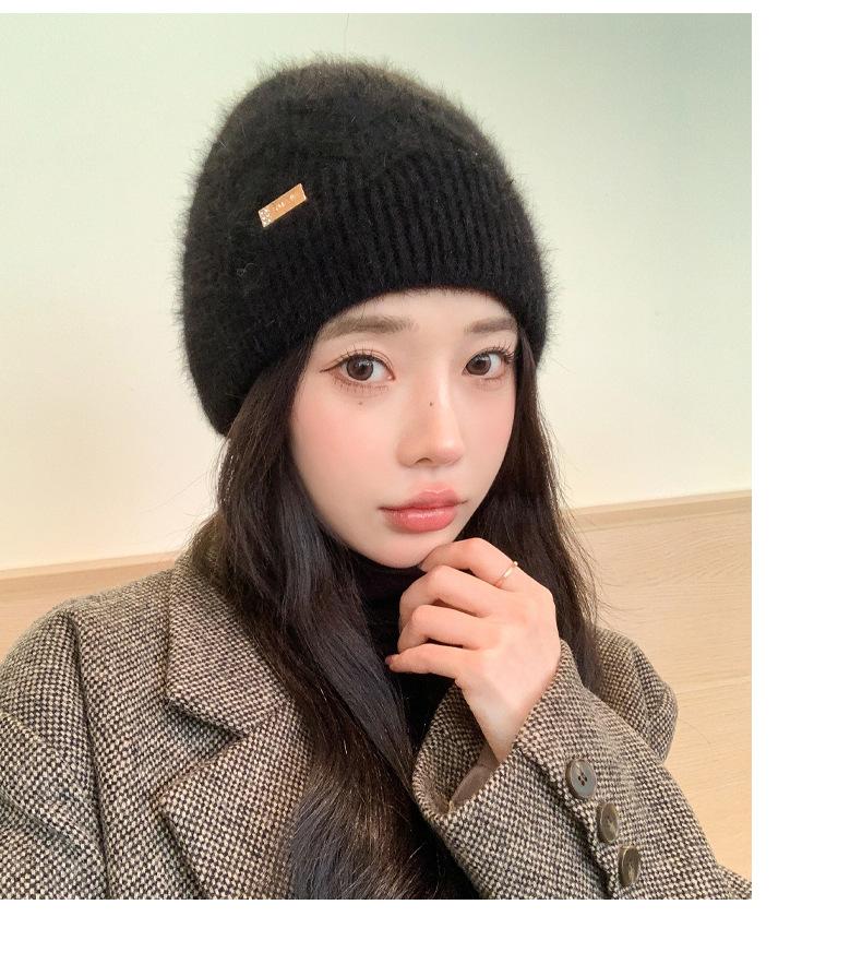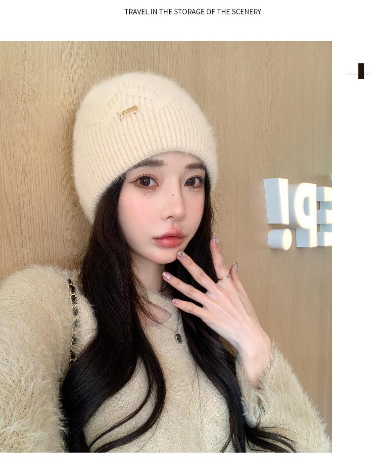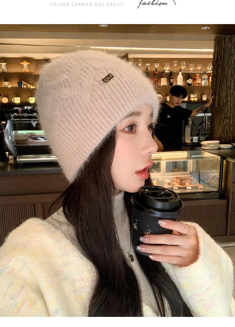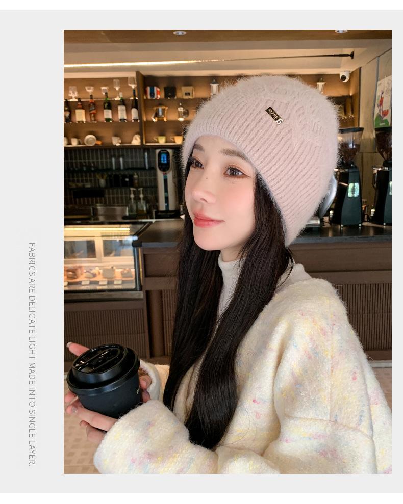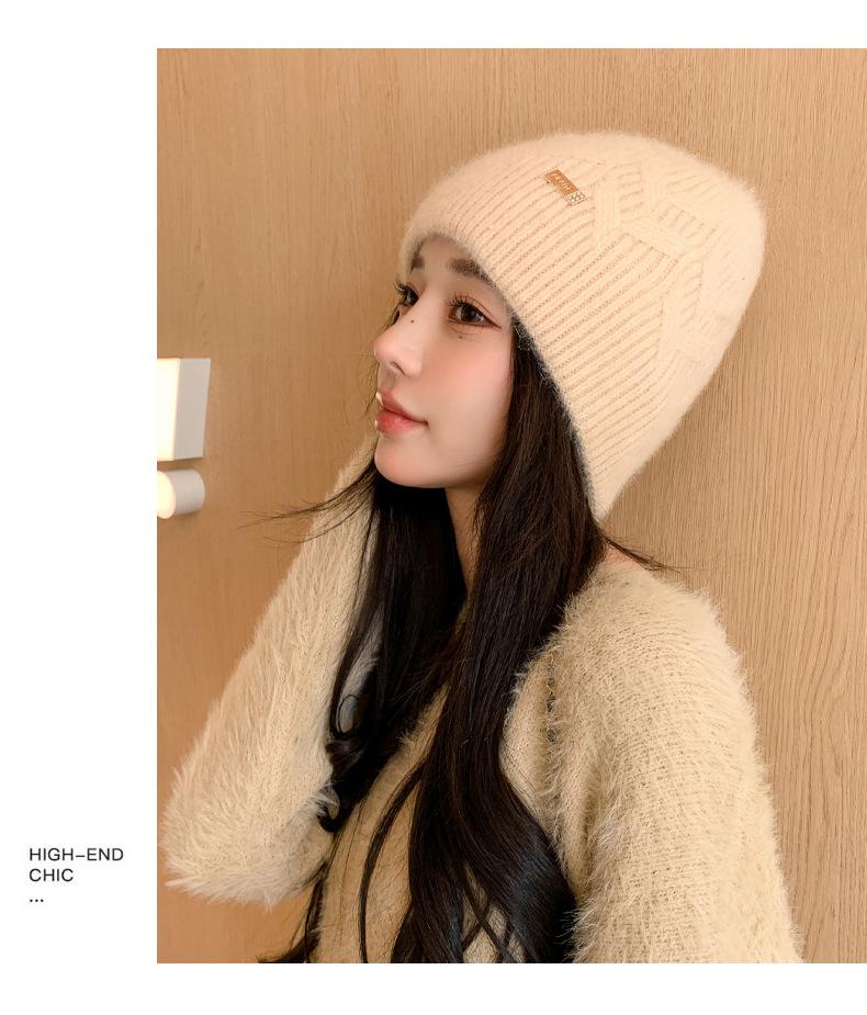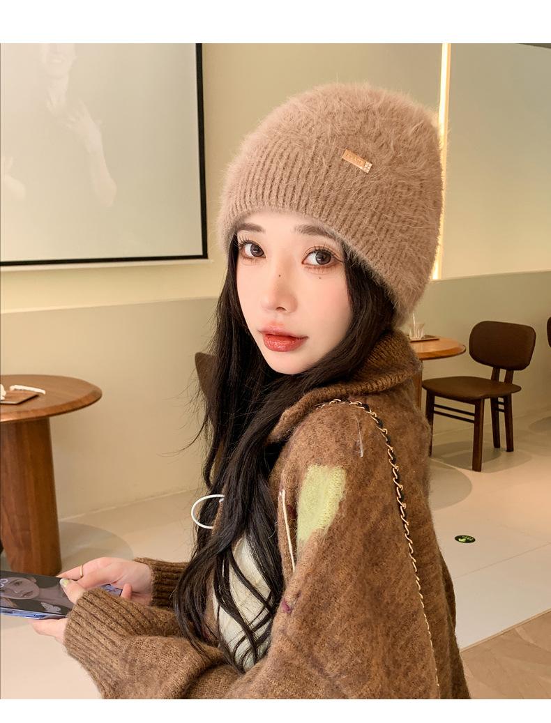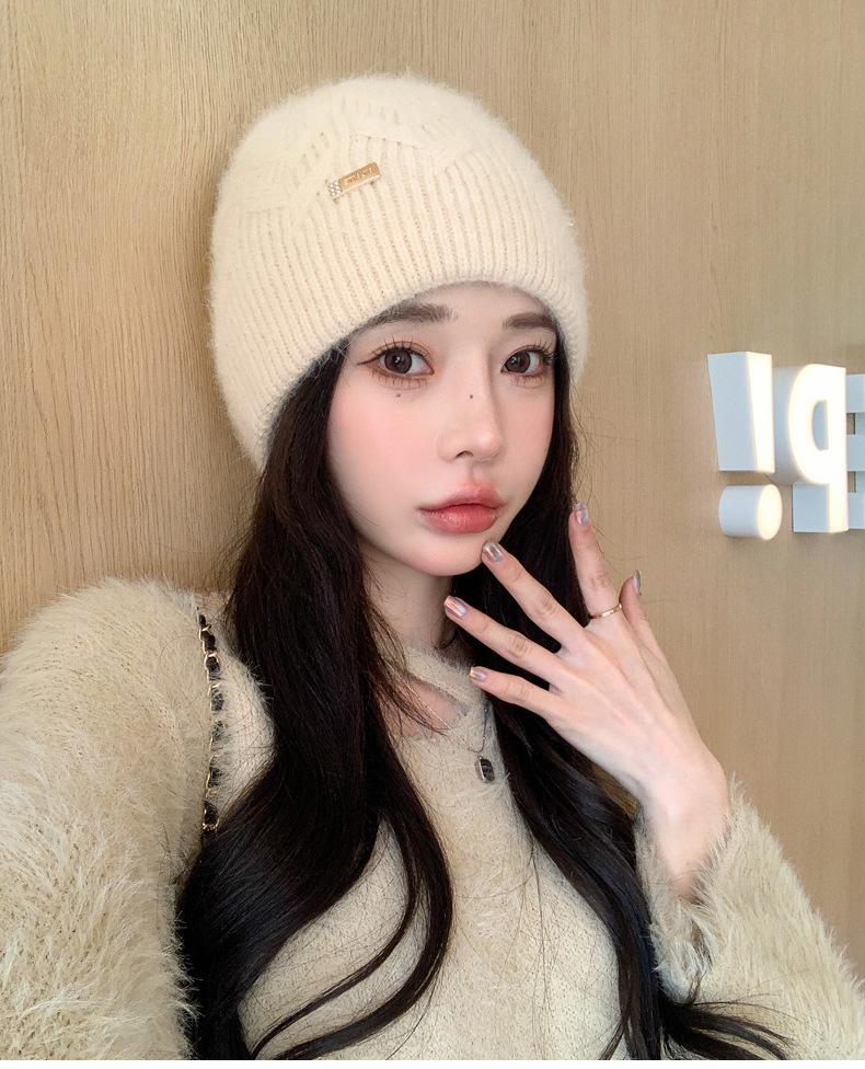 Sombrero nuevo de otoño e invierno versión coreana 2024 para mujer, color sólido, combinable con todo, sombrero de lana de punto de pelo de conejo, gorro de invierno cálido y grueso