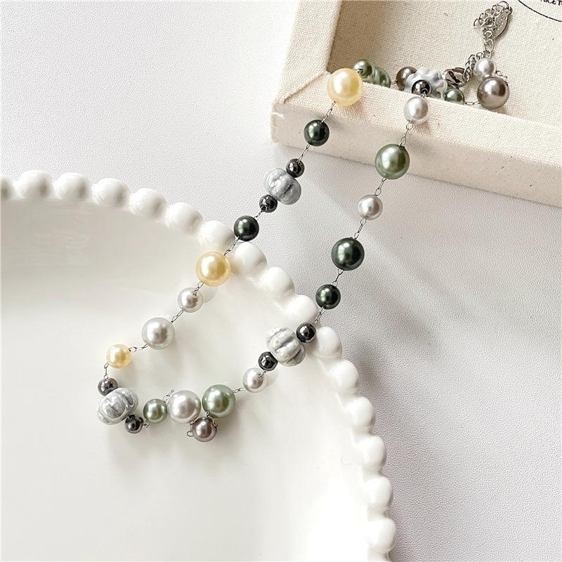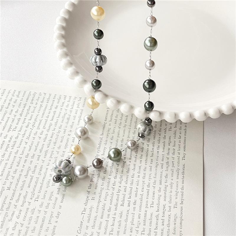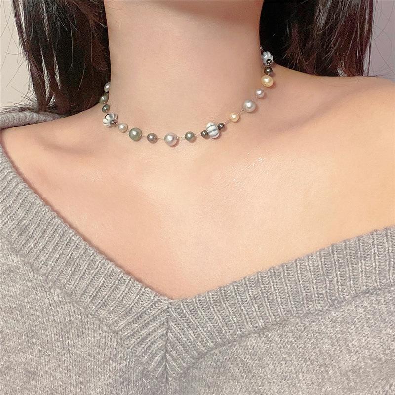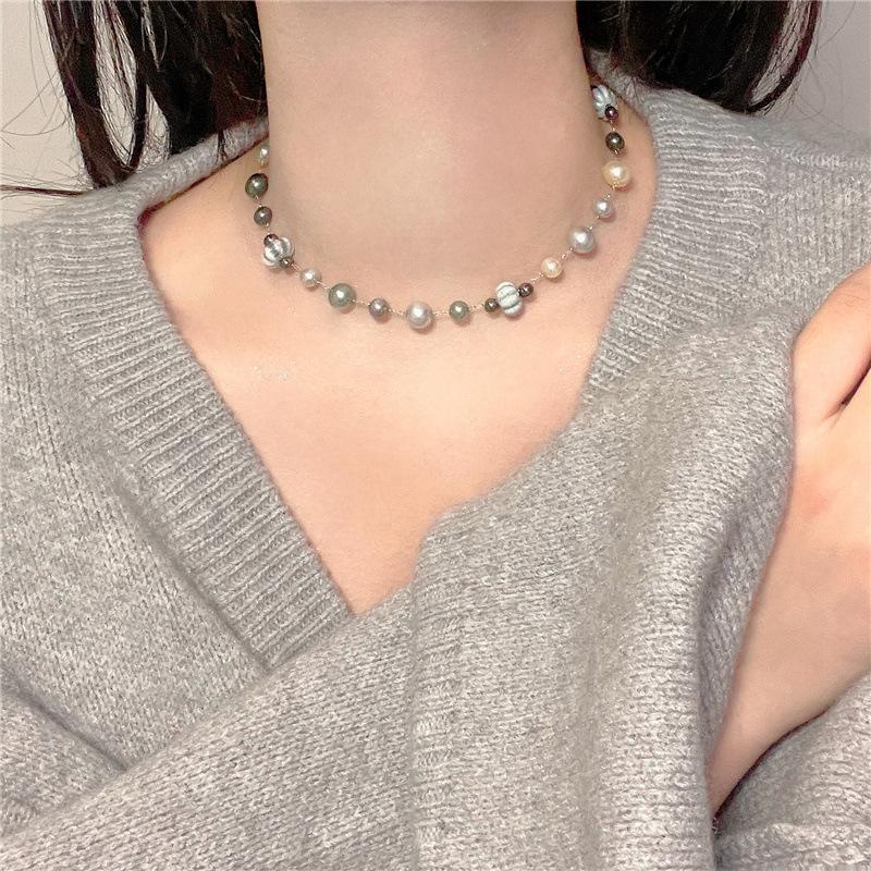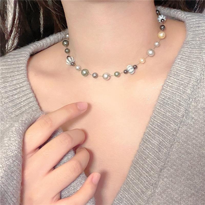 Collar de perlas francesas grises y blancas, diseño de mujer, lujo accesible, nuevo collar de clavícula 2024