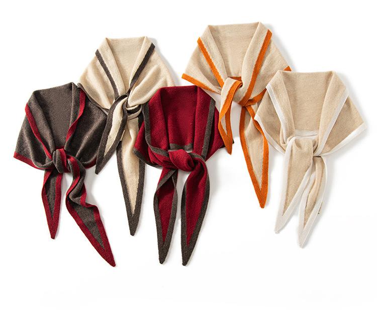 Bufanda de Cachemira para Mujer 100% Cachemira Pura Otoño e Invierno Nueva Combinación de Colores Calentador de Cuello Tejido Cálido Bufanda Triangular Pequeña