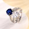 Blue spiked crystal ring, Red corundum ring, Emerald ring