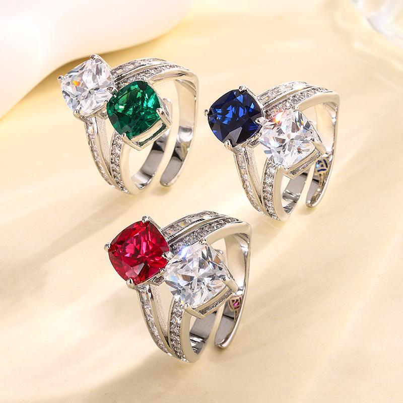 Anillo de temperamento femenino de piedra de dos colores, corindón cuadrado gordo, color oro simulado, joyería cruda, 2024, 8 x 8