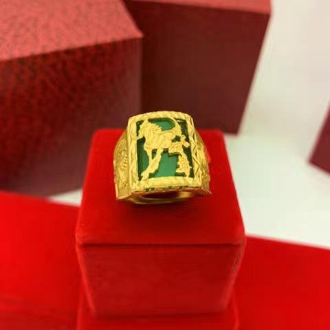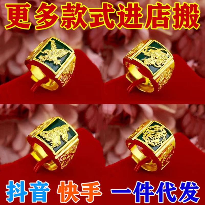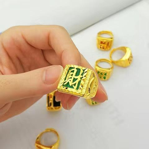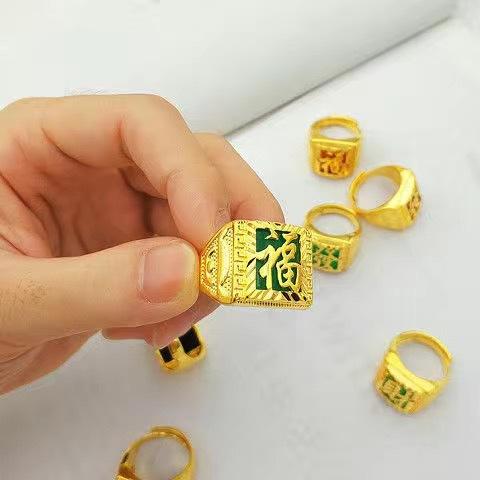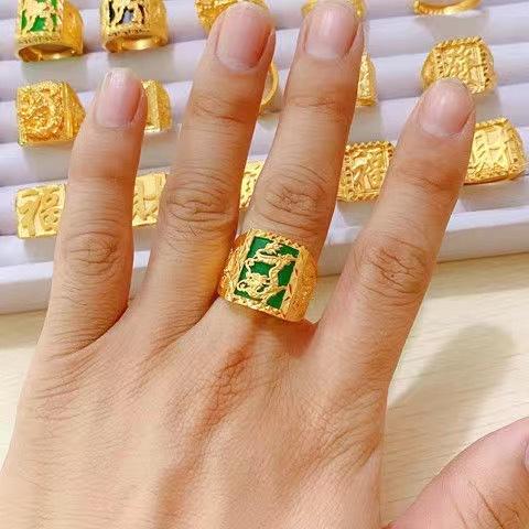 Anillo Guan Gong protésico de oro y arena vietnamita para hombres y mujeres, con patrón de dragón dominante, cuadrado, palabra de bendición, anillo para dedo, boca viva, ajustable