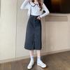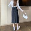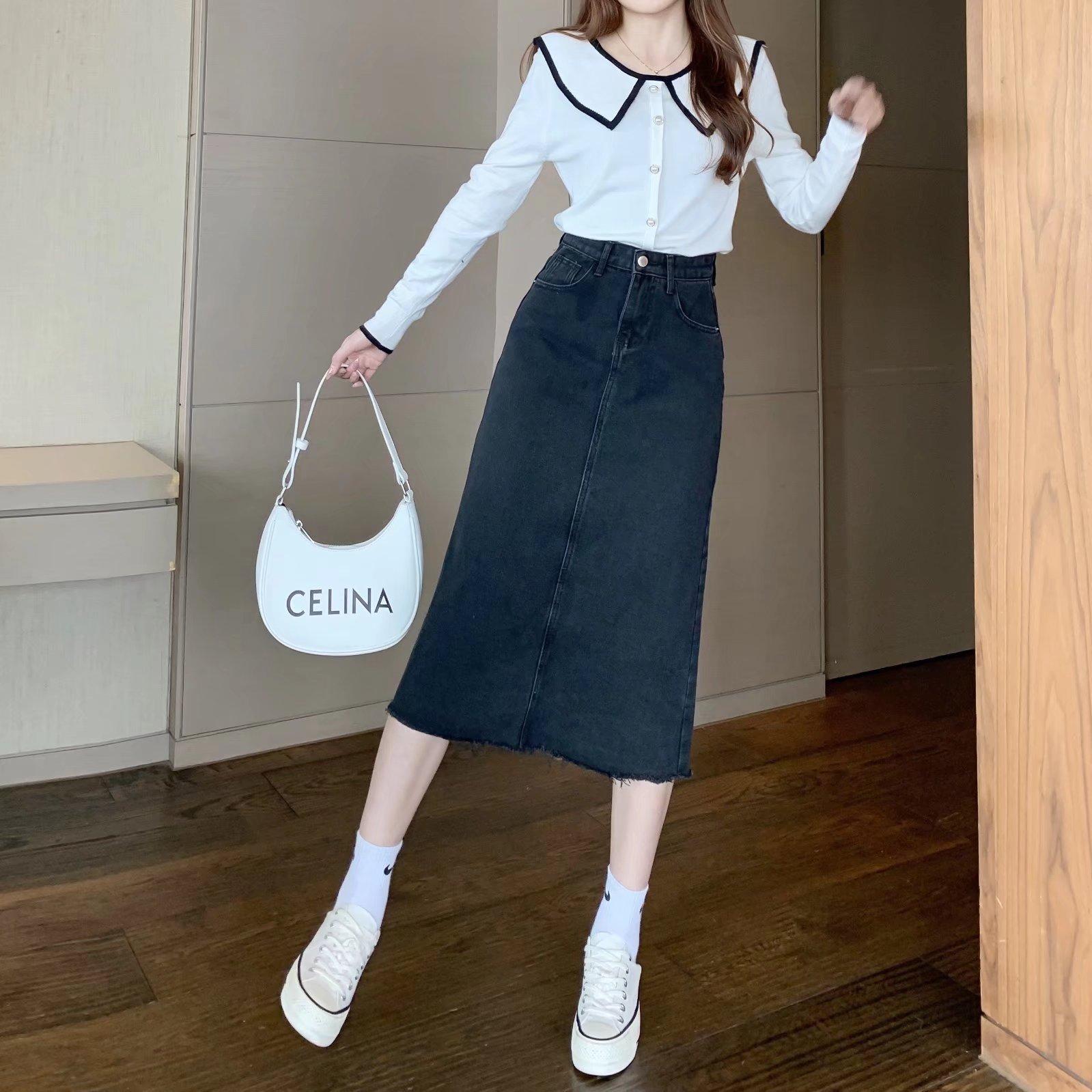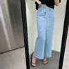 Falda larga de cintura alta con borde sin rematar, estilo retro, versátil y ajustada, de mezclilla versátil, primavera y verano 2024