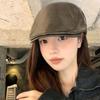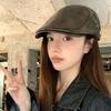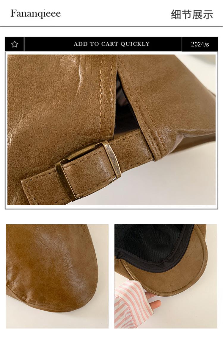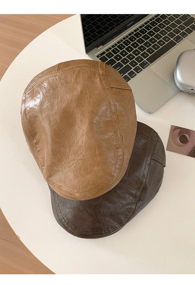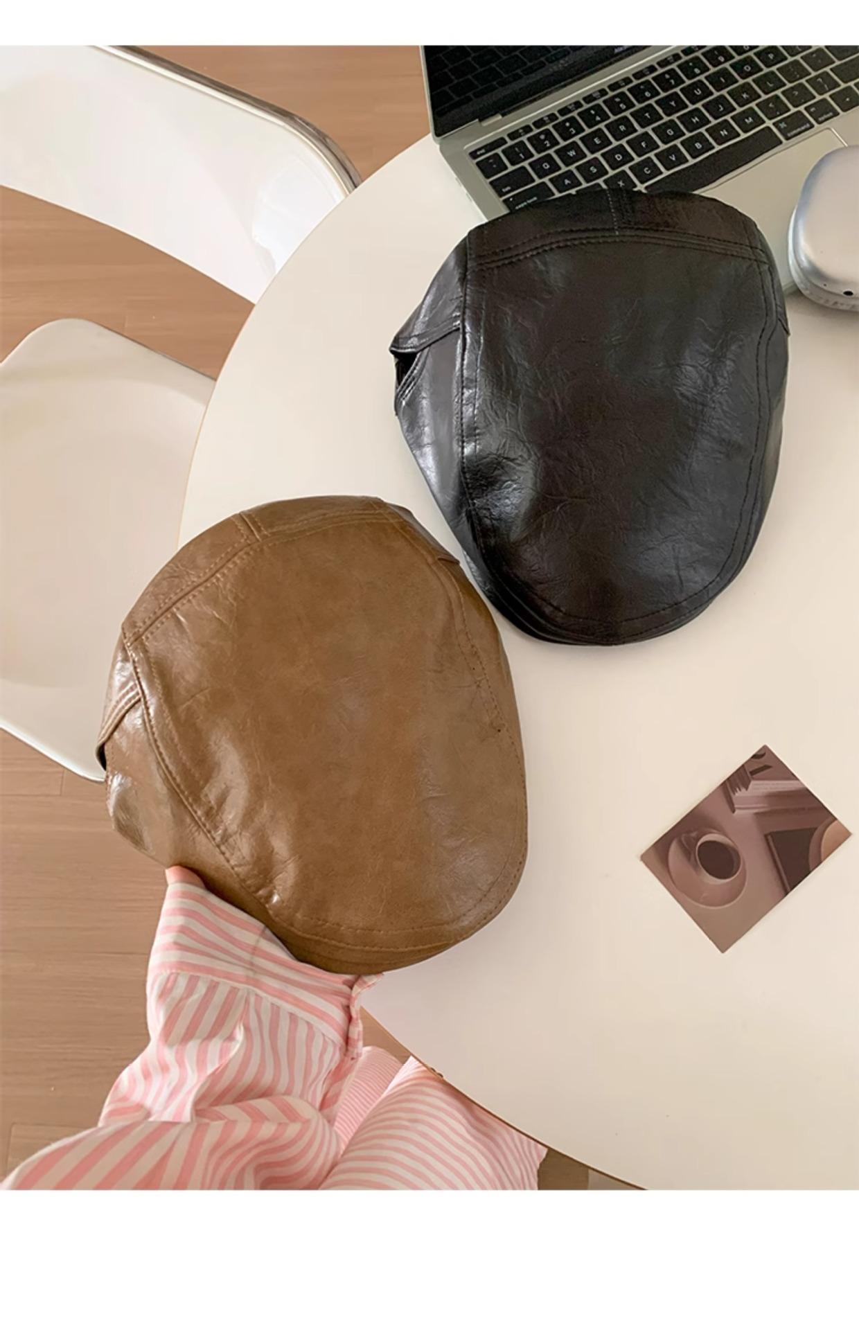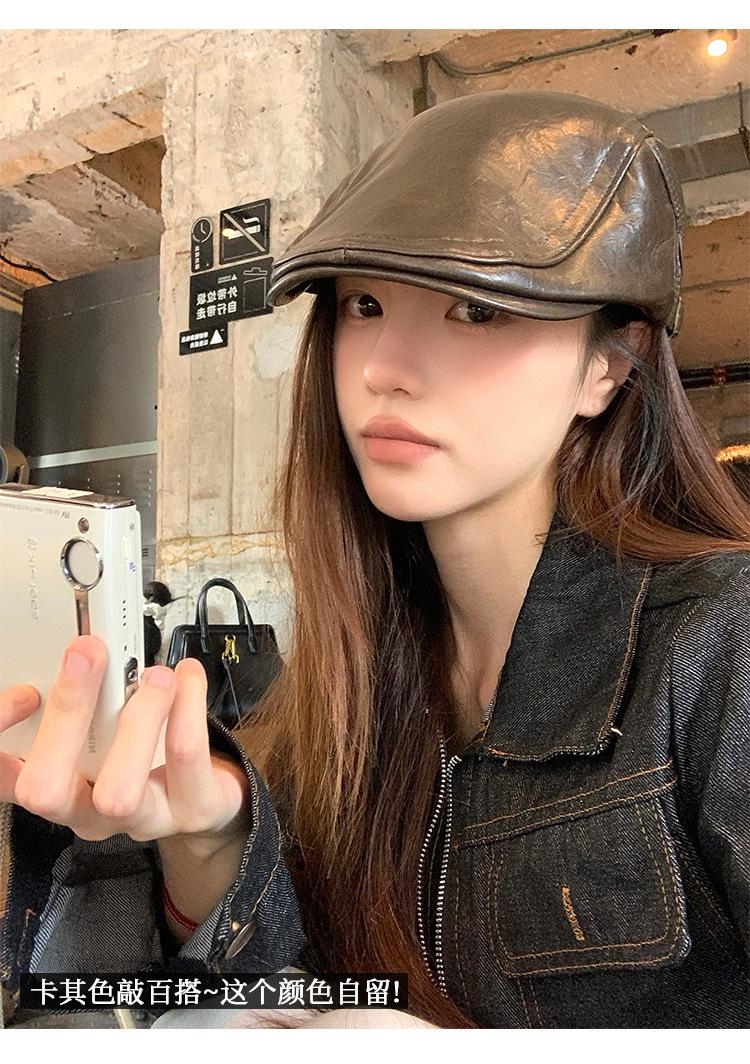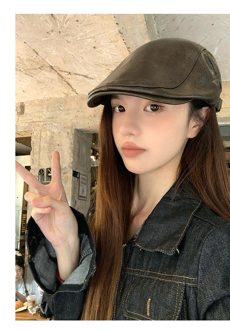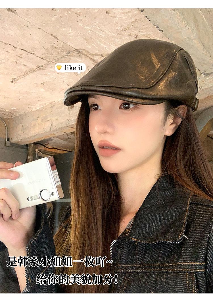 Boina Retro de Cuero PU Estilo Americano para Mujer Otoño e Invierno Combinable Personalidad Chica Hot Cara Pequeña Pequeña Adelante Sombrero de Lengua de Pato