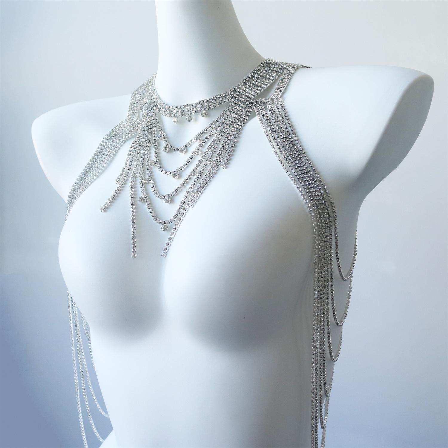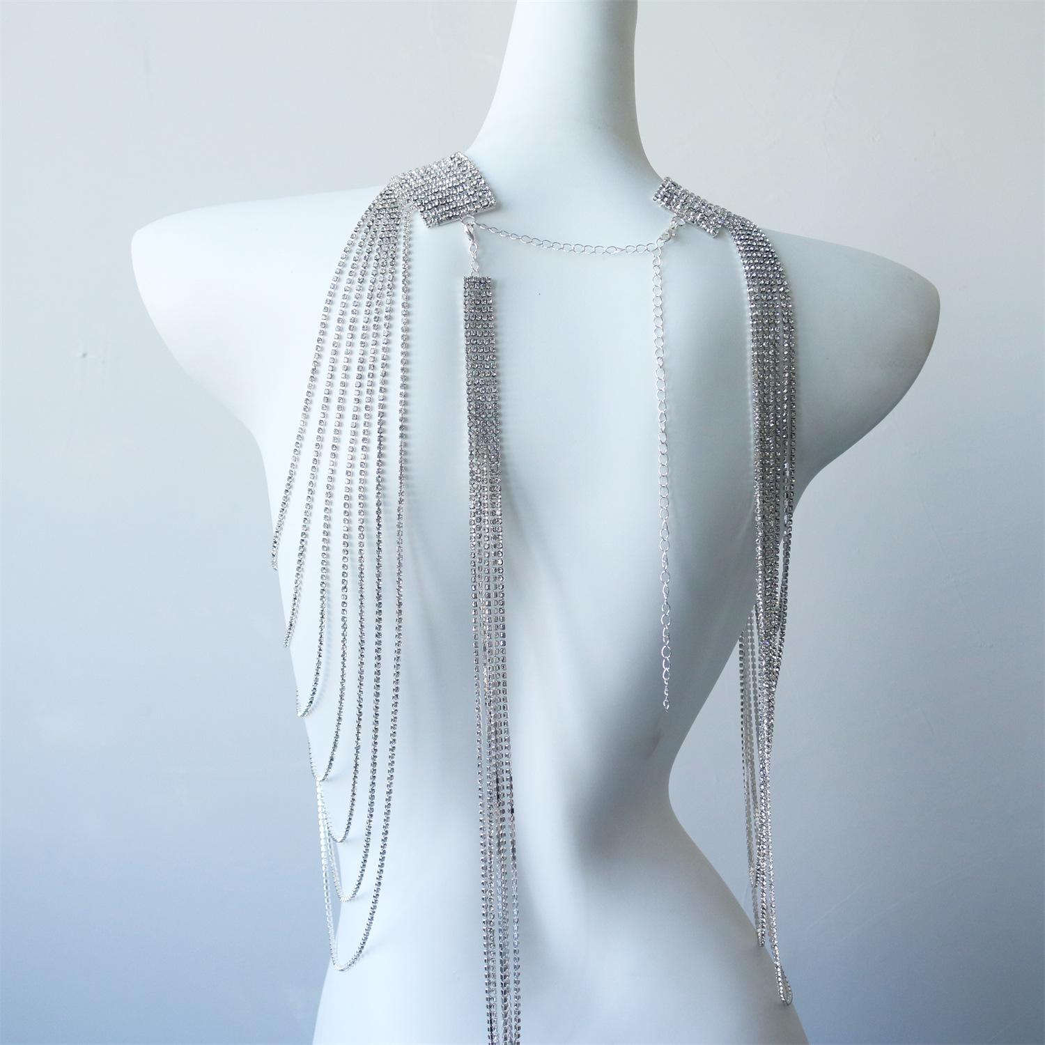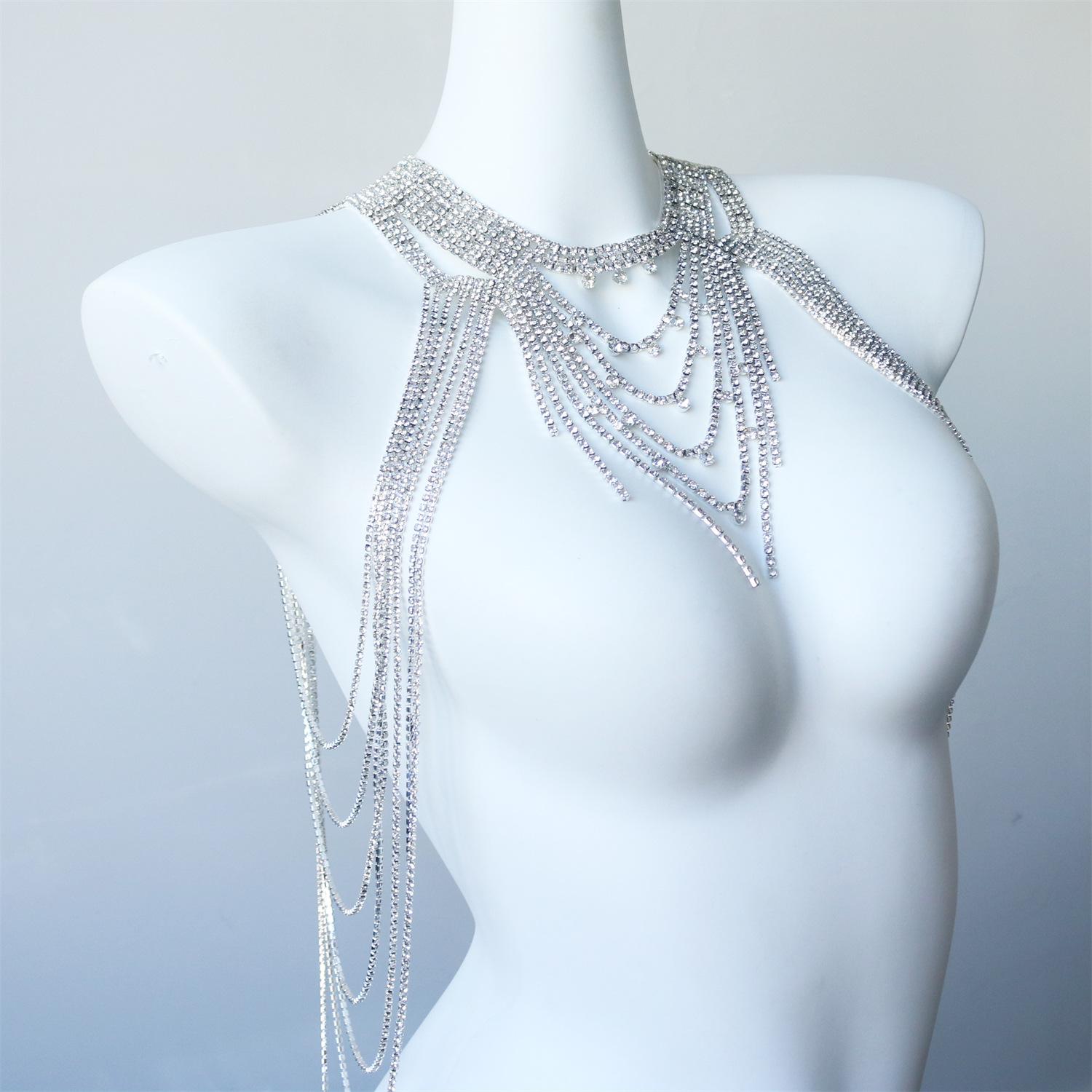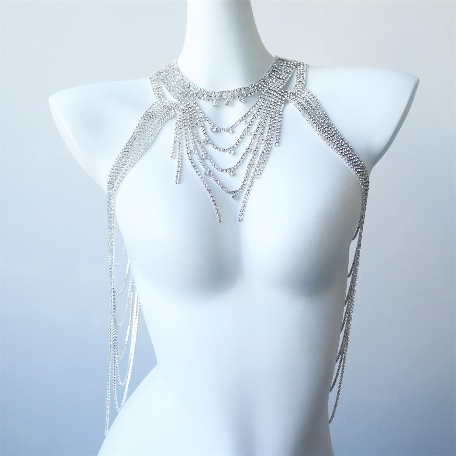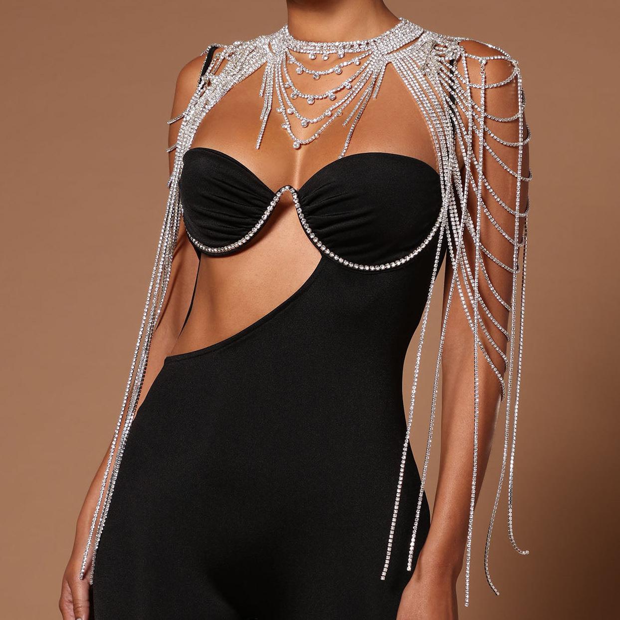 Cadena de hombro con borlas transfronterizas, cadena corporal con diamantes de imitación exagerados de estilo europeo y americano, accesorios de banquete de moda para mujer
