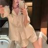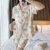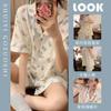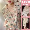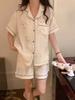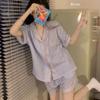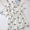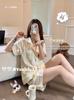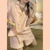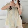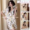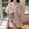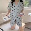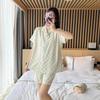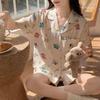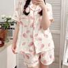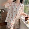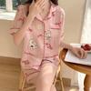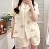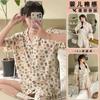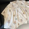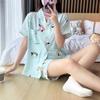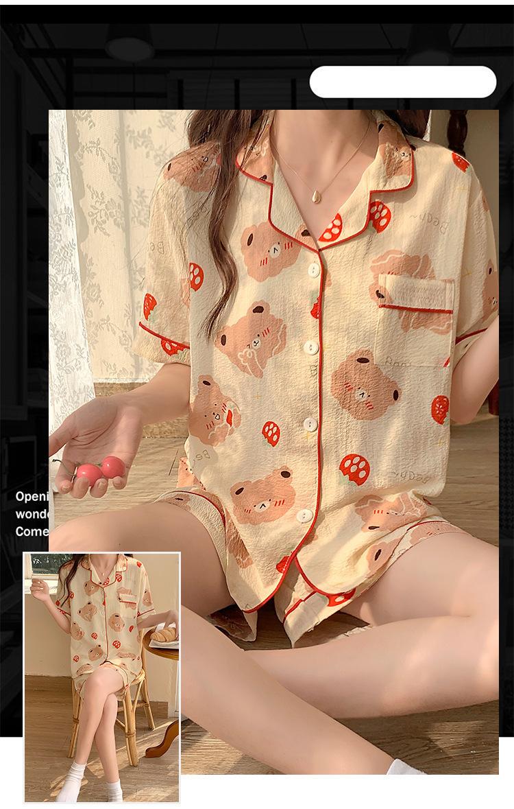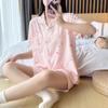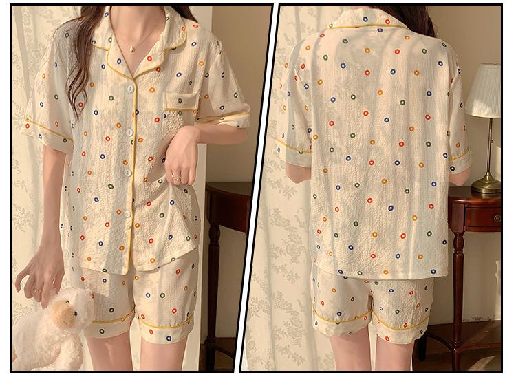 Pijama de manga corta coolomi de hilo de algodón japonés de comercio exterior para mujer, cárdigan de tela con burbujas de verano, bonito y dulce traje para el hogar