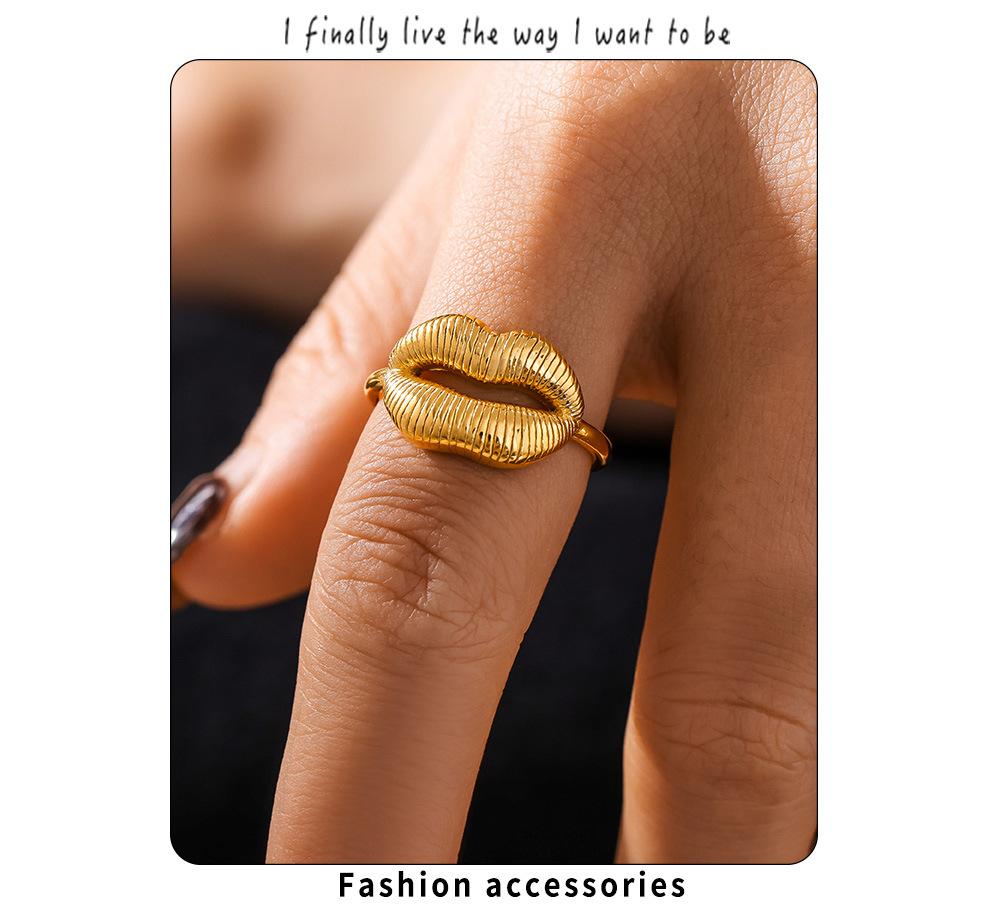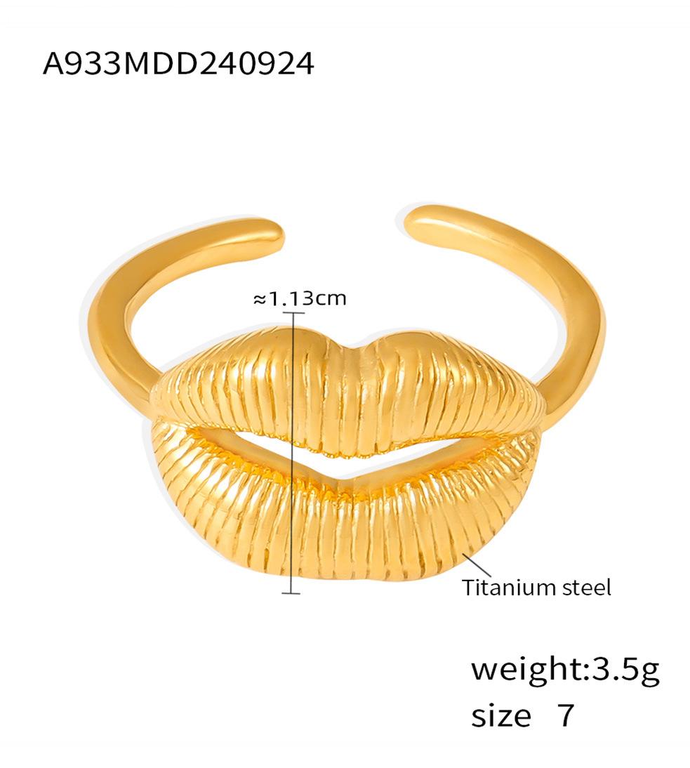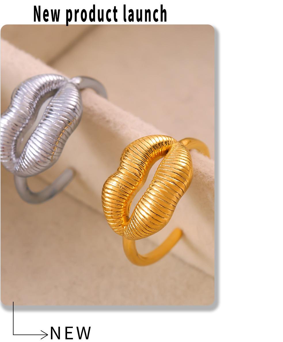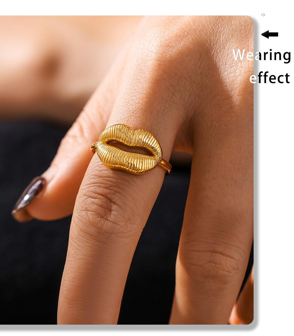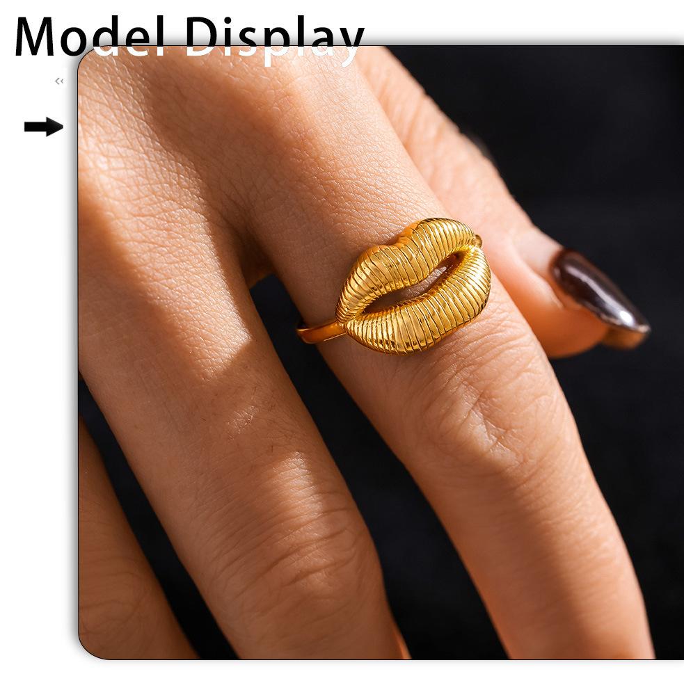 Anillo abierto con patrón de labios estilo europeo y americano, moda para mujer, acero de titanio, chapado en oro al vacío PVD, anillo abierto geométrico