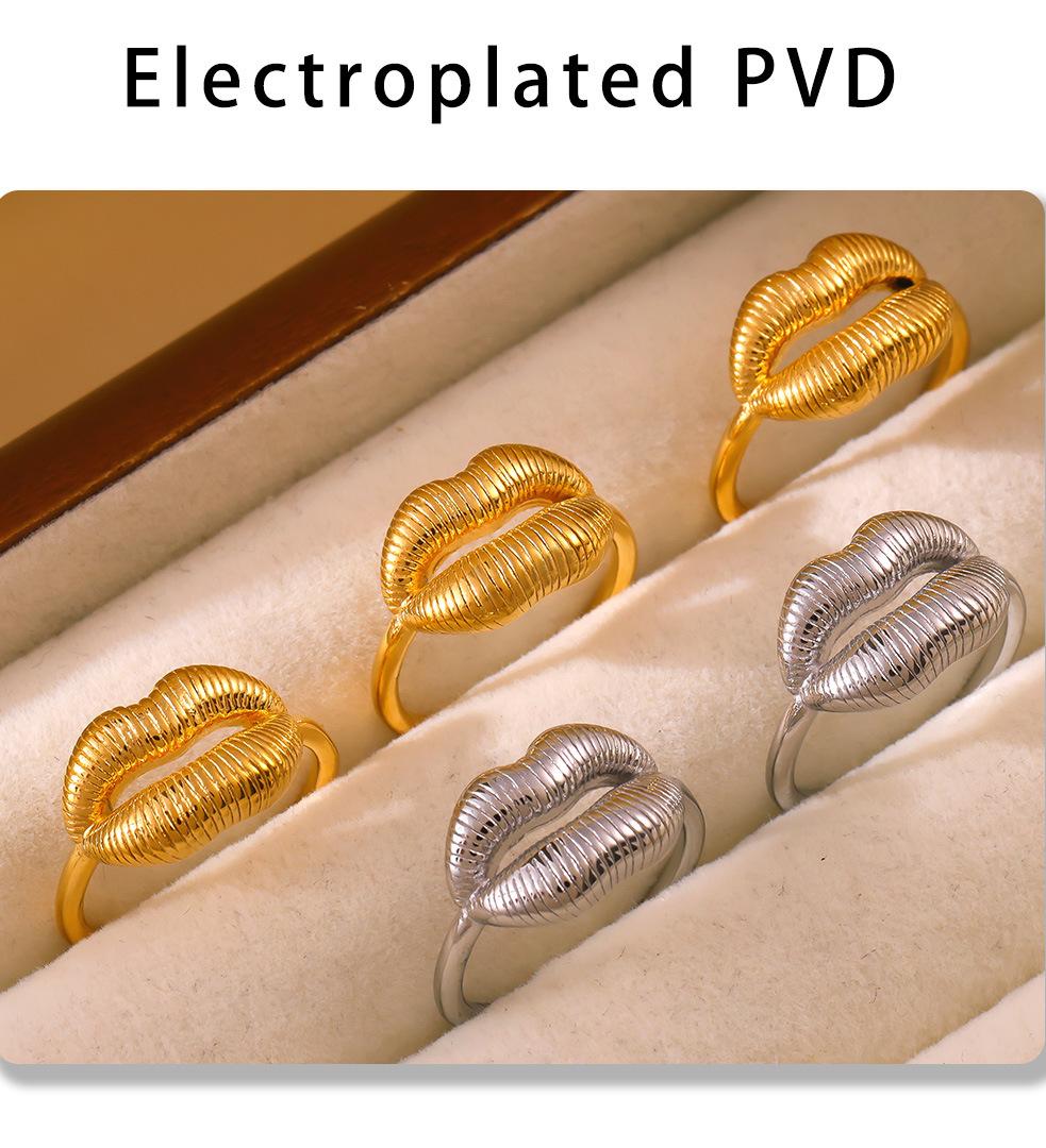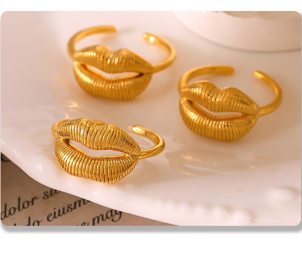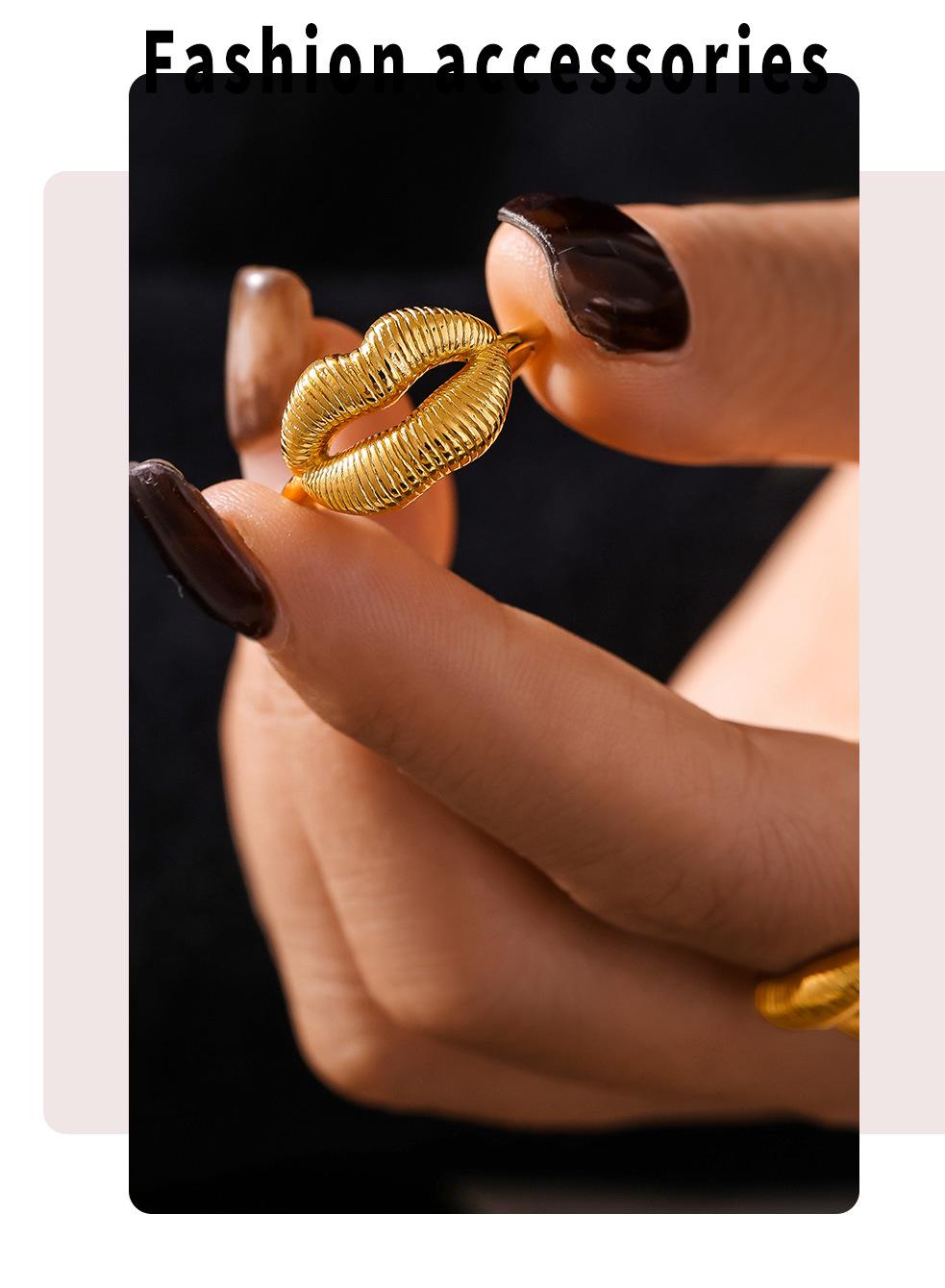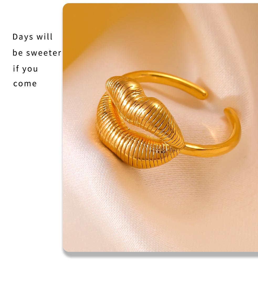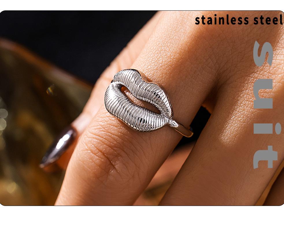 Anillo abierto con patrón de labios estilo europeo y americano, moda para mujer, acero de titanio, chapado en oro al vacío PVD, anillo abierto geométrico