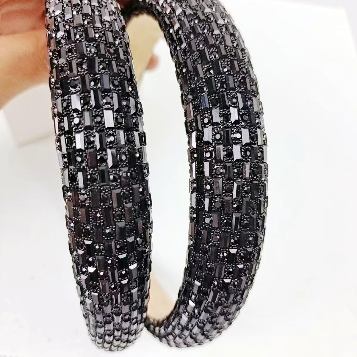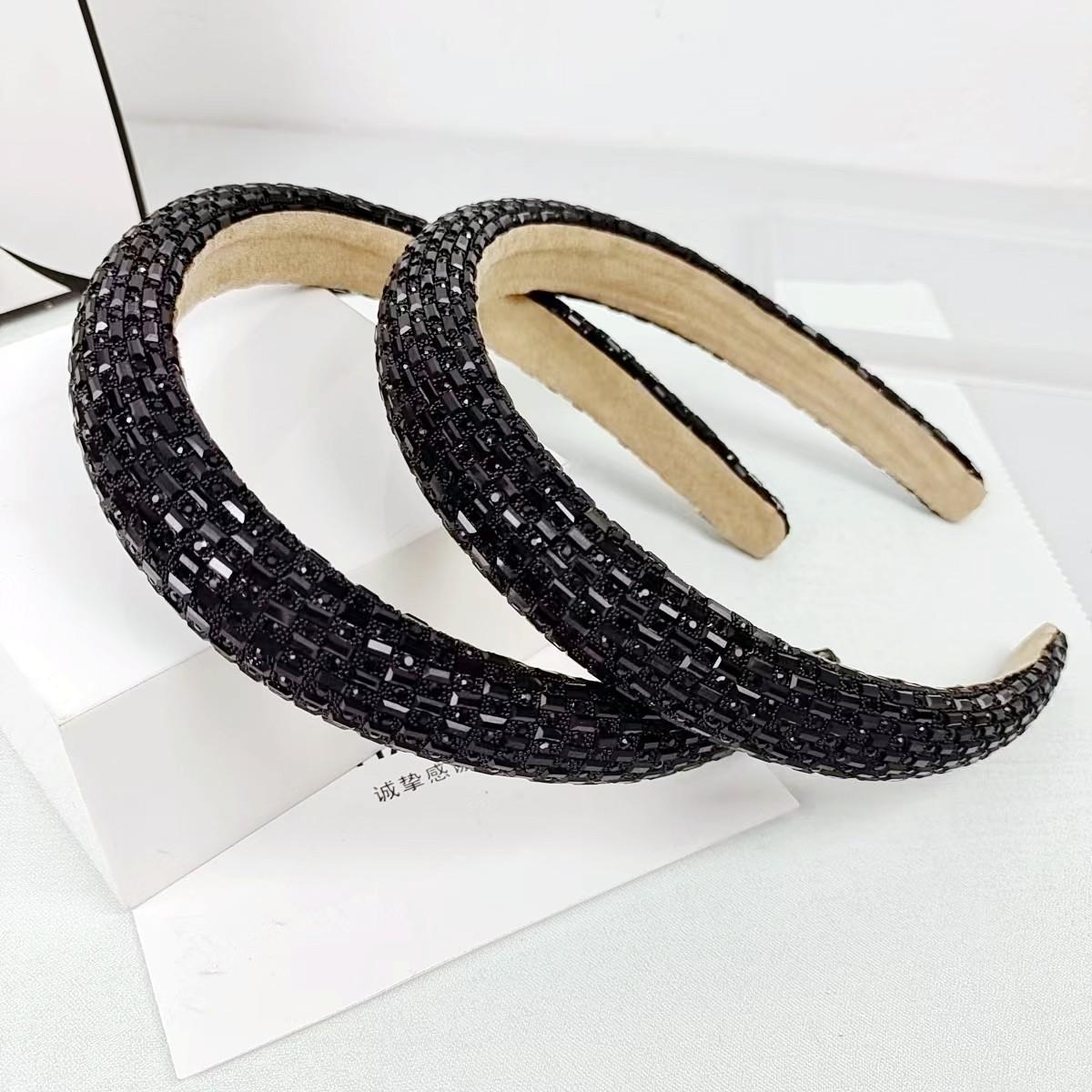 Diadema de diamantes negros de estilo coreano para verano, estilo barroco retro de alta gama, lavable, con presión para el cabello, accesorios para el cabello que combinan con todo.