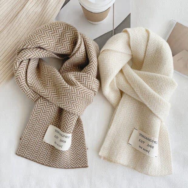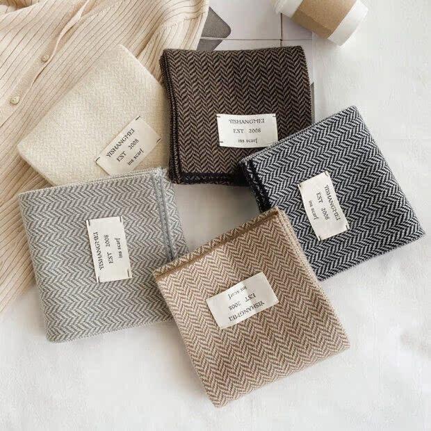 Solid color herringbone scarf-off-white, Solid color herringbone scarf-brown, Solid color herringbone scarf-bl...