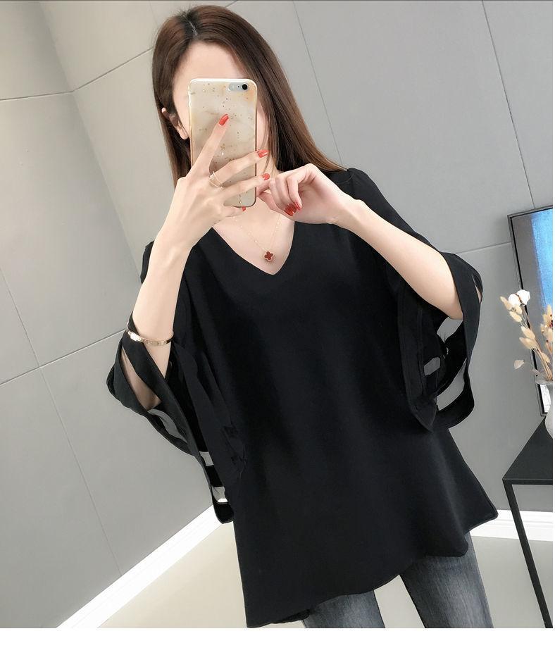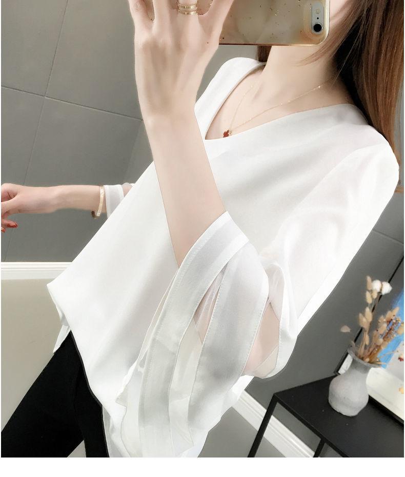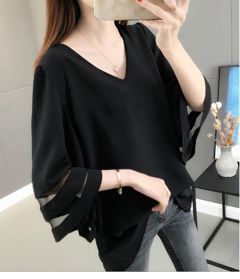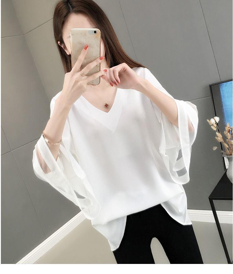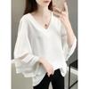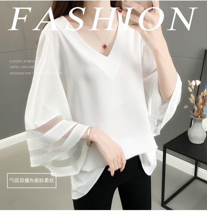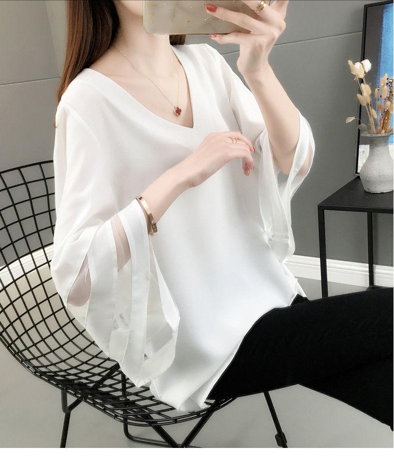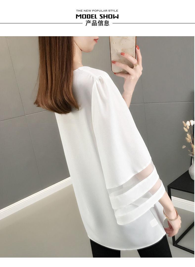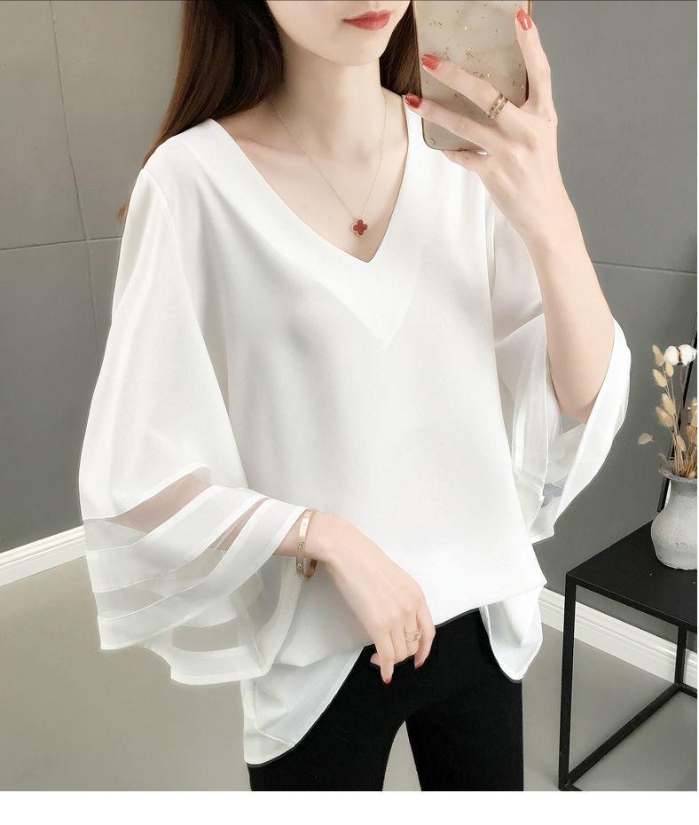 Camisa de gasa blanca de organza hueca para mujer, novedad de verano 2023, estilo coreano, manga de cuerno, suelta, talla grande, que cubre el vientre.