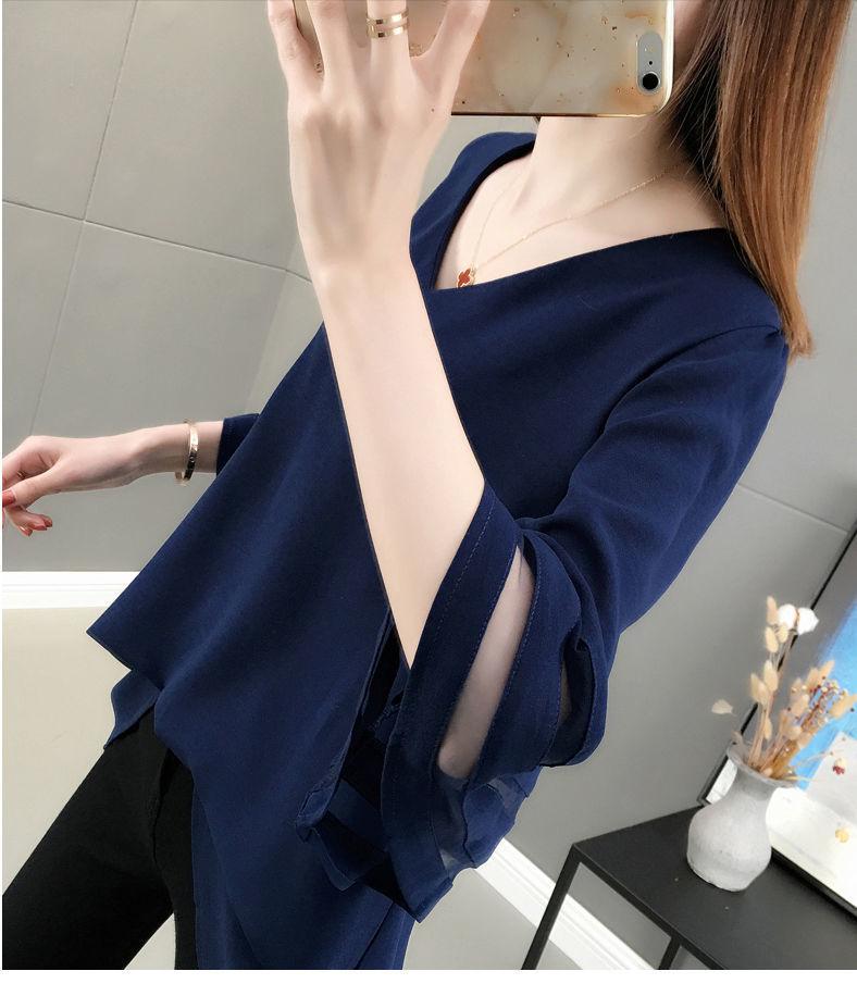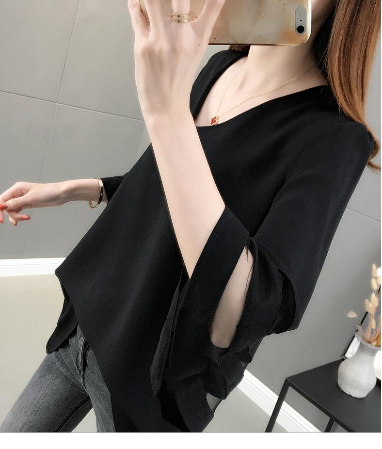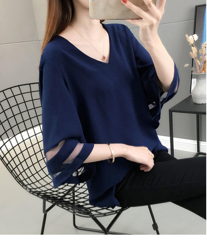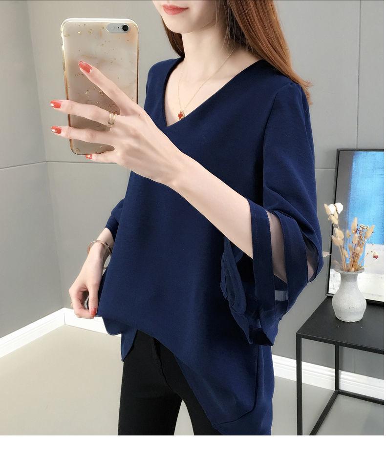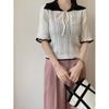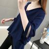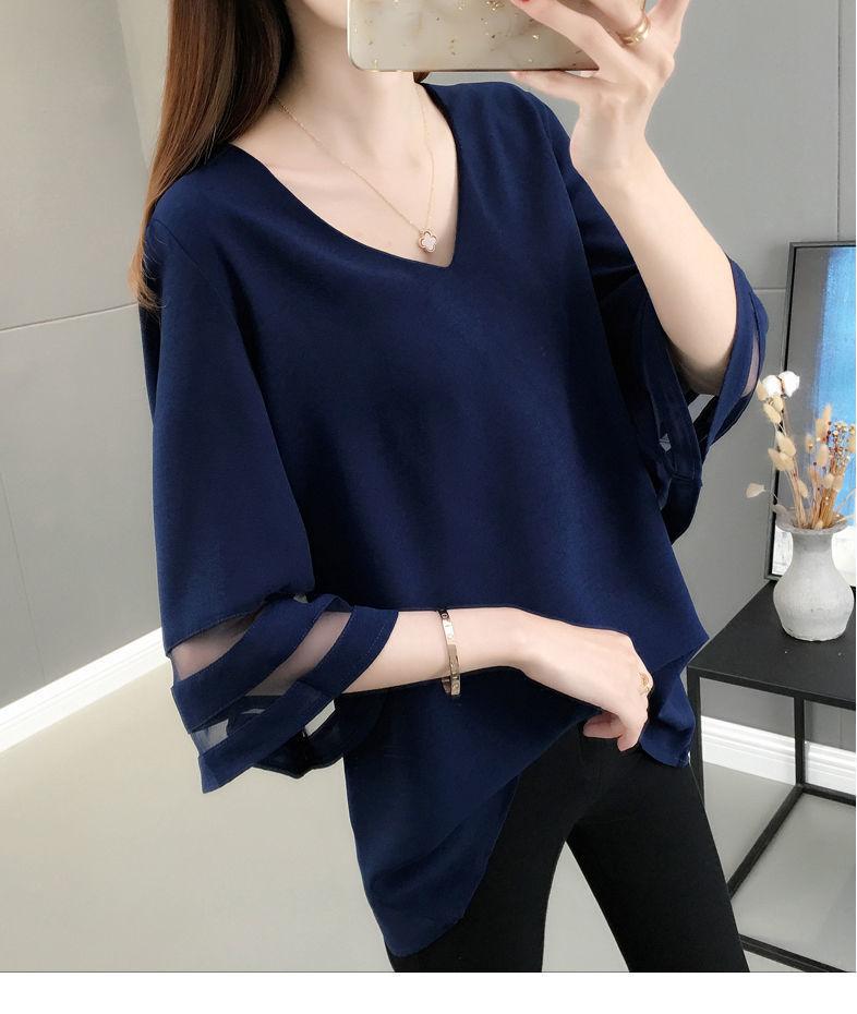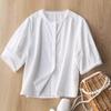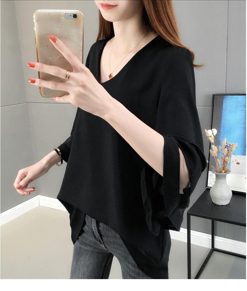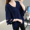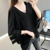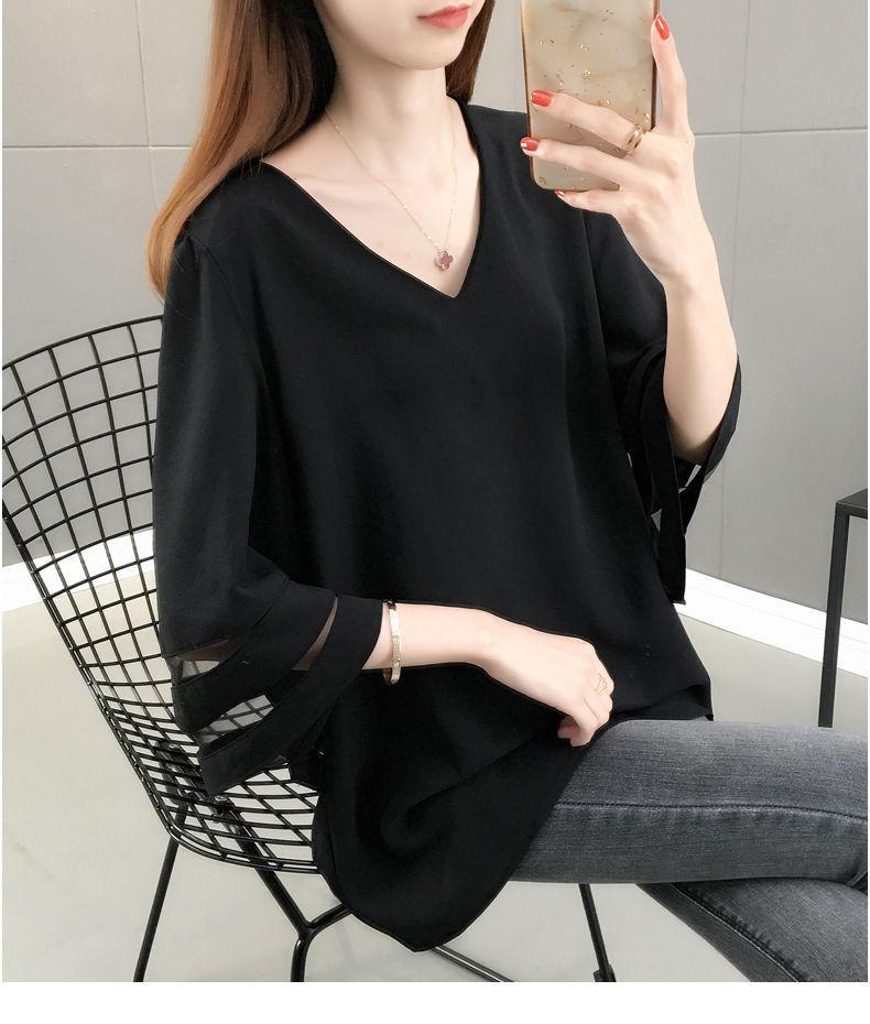 Camisa de gasa blanca de organza hueca para mujer, novedad de verano 2023, estilo coreano, manga de cuerno, suelta, talla grande, que cubre el vientre.