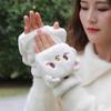 Guantes de peluche con orejas de cachorro para niñas, cálidos, forrados de vellón y gruesos, de medio dedo, con tendencia de otoño e invierno.