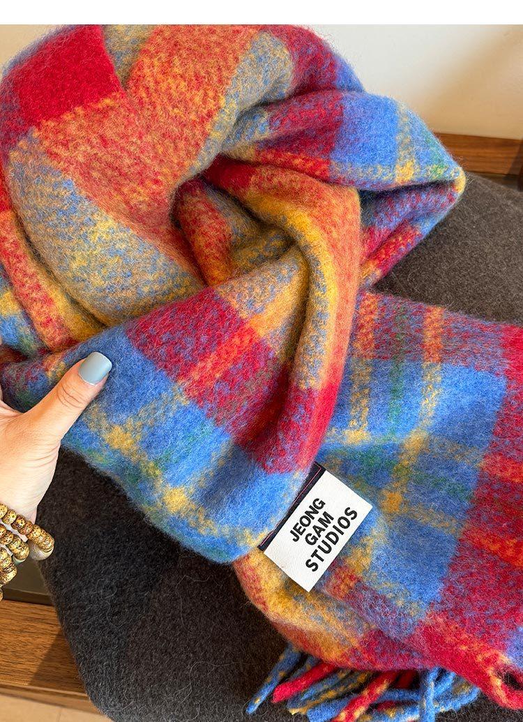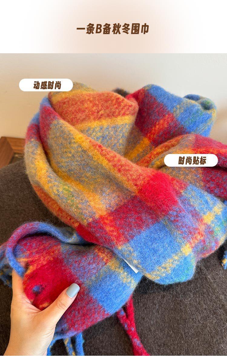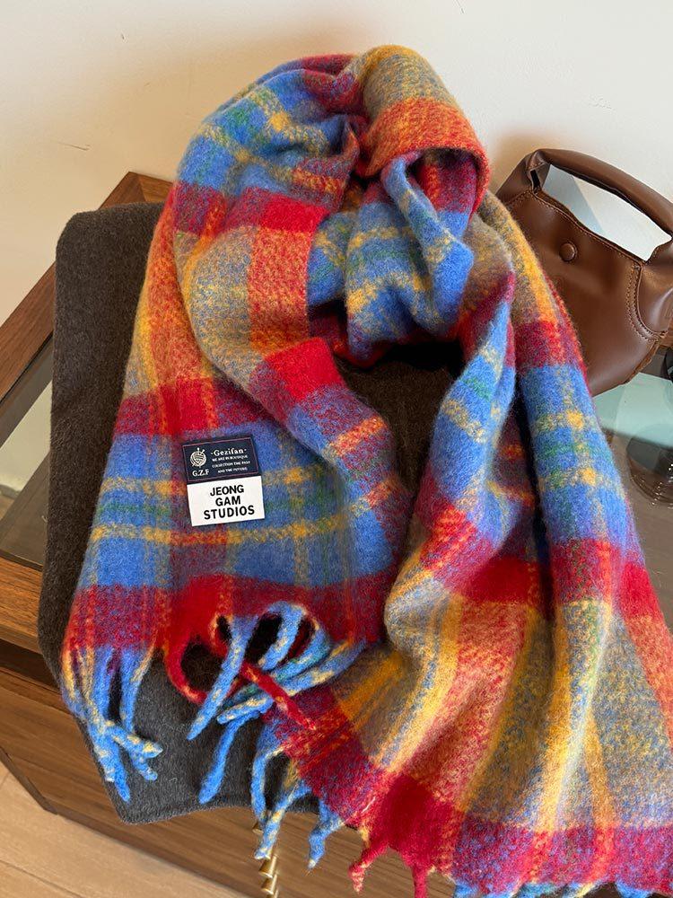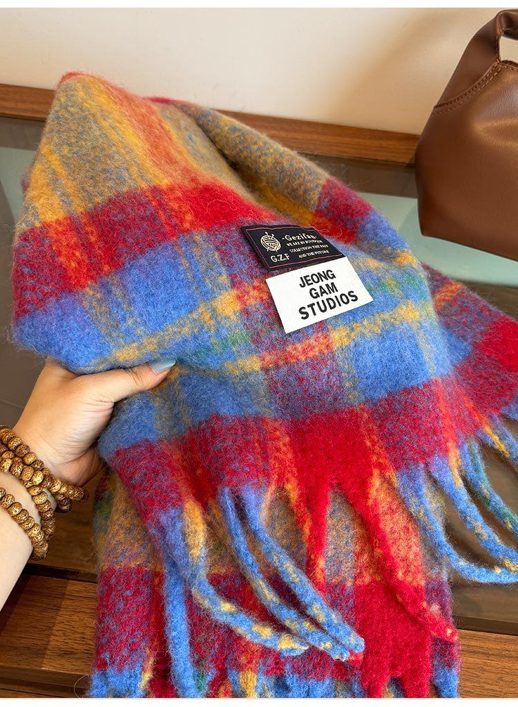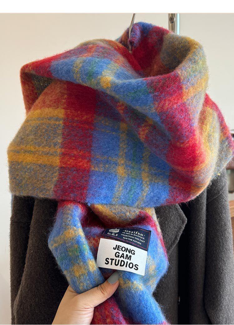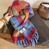 Otoño e invierno cálido nuevo poder poder con bufanda de lana larga a cuadros azul blanco bufanda cálida para mujer