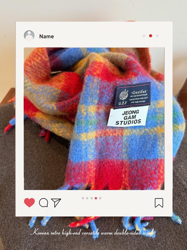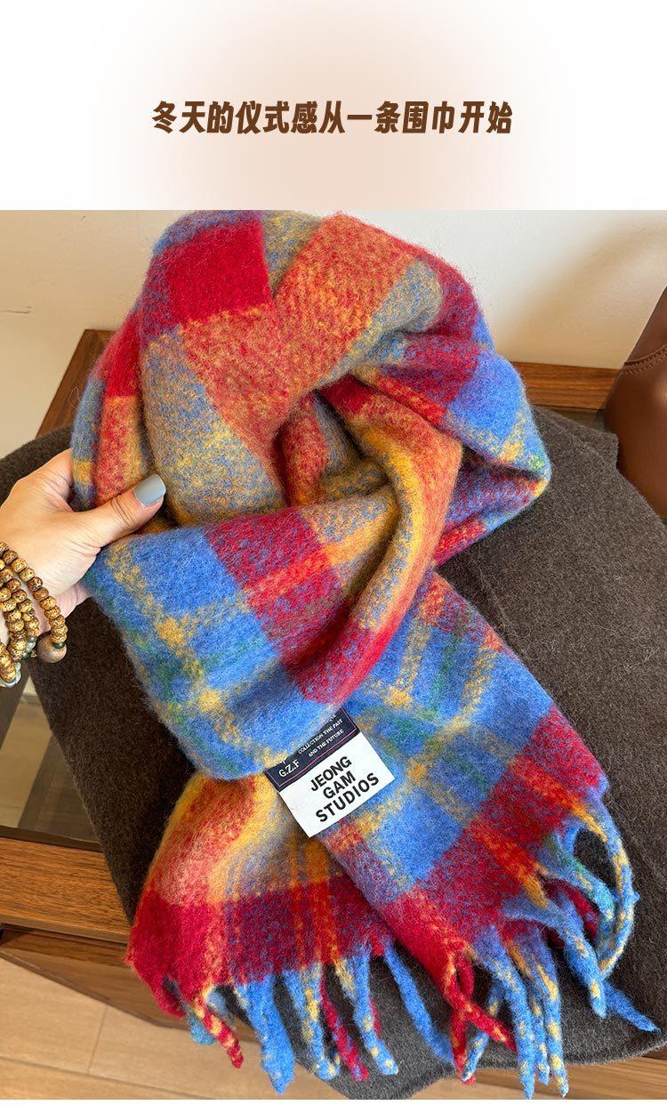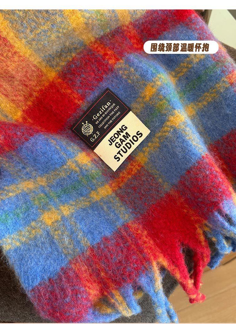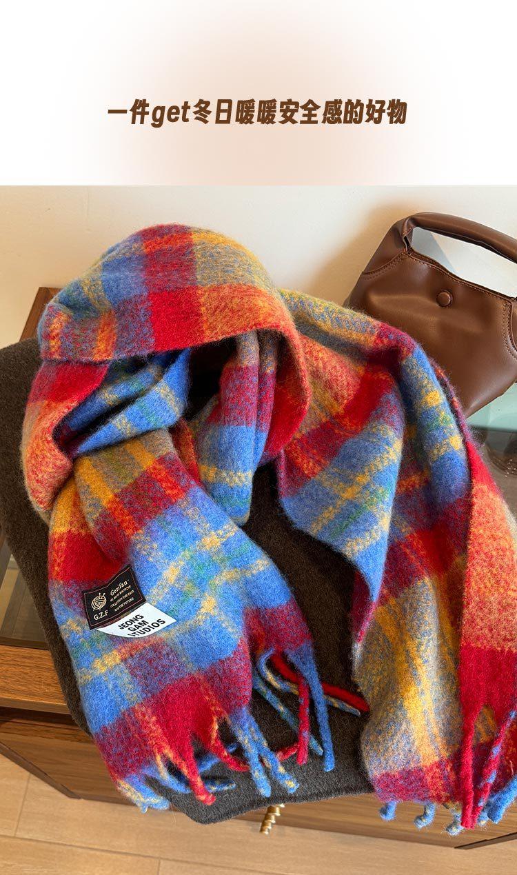 Otoño e invierno cálido nuevo poder poder con bufanda de lana larga a cuadros azul blanco bufanda cálida para mujer