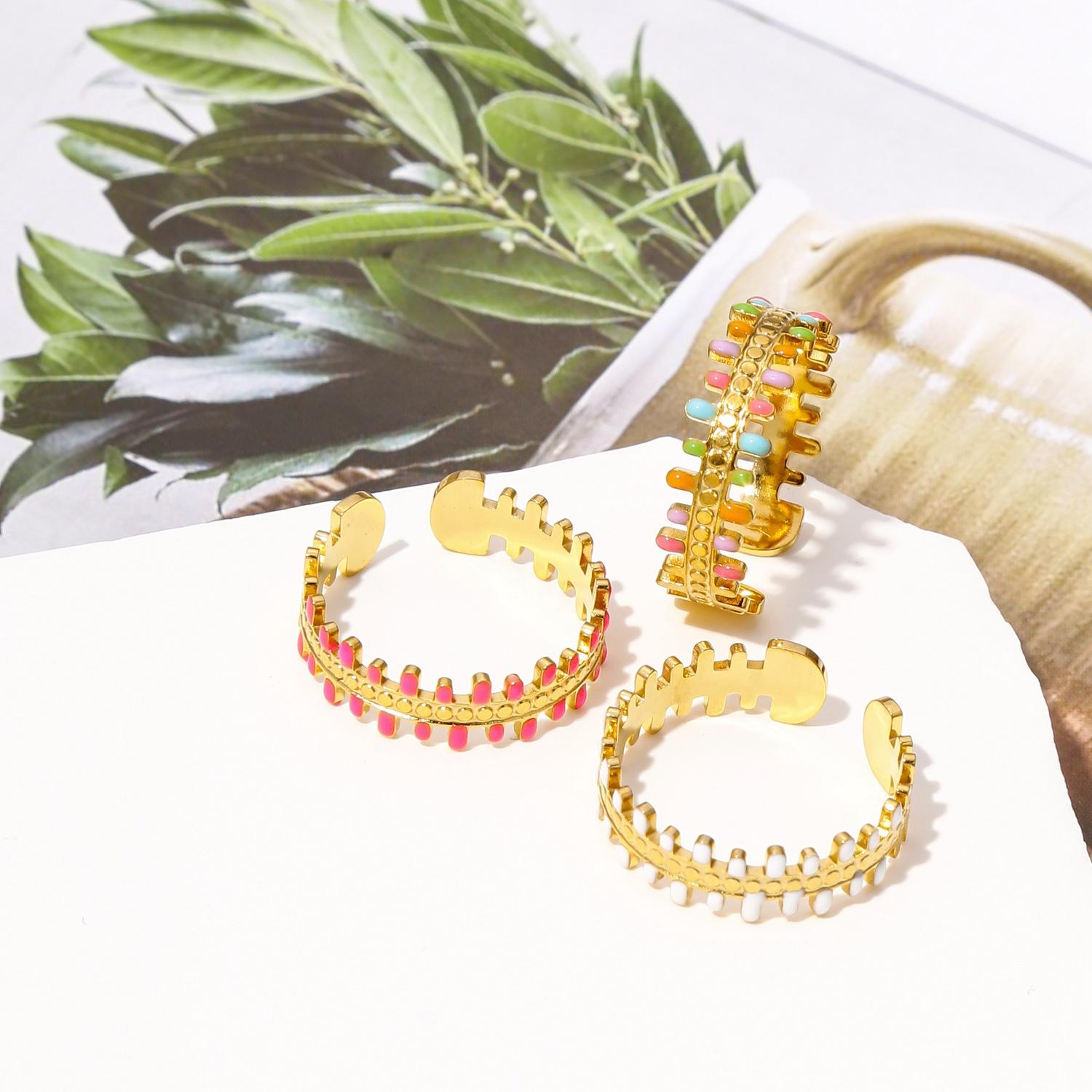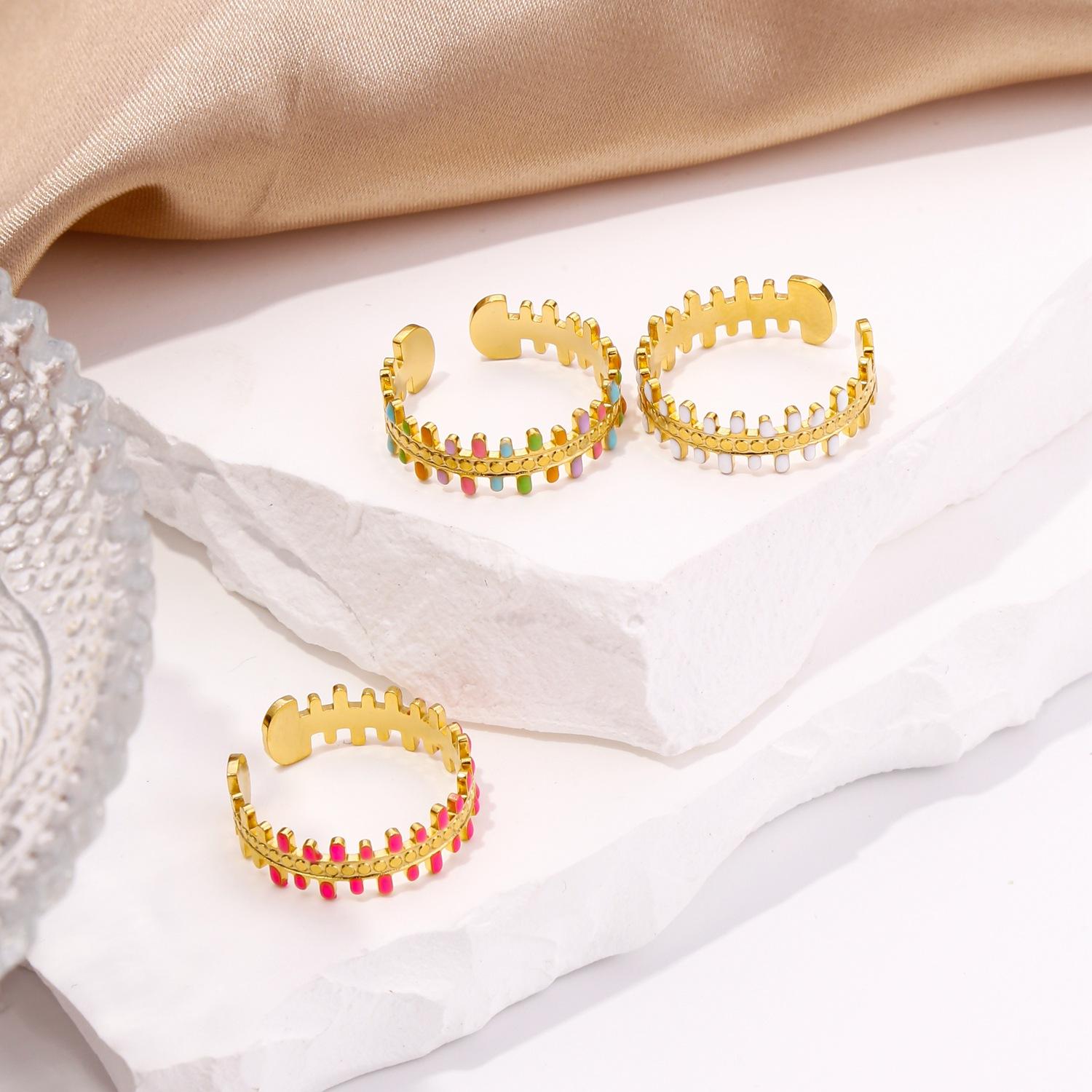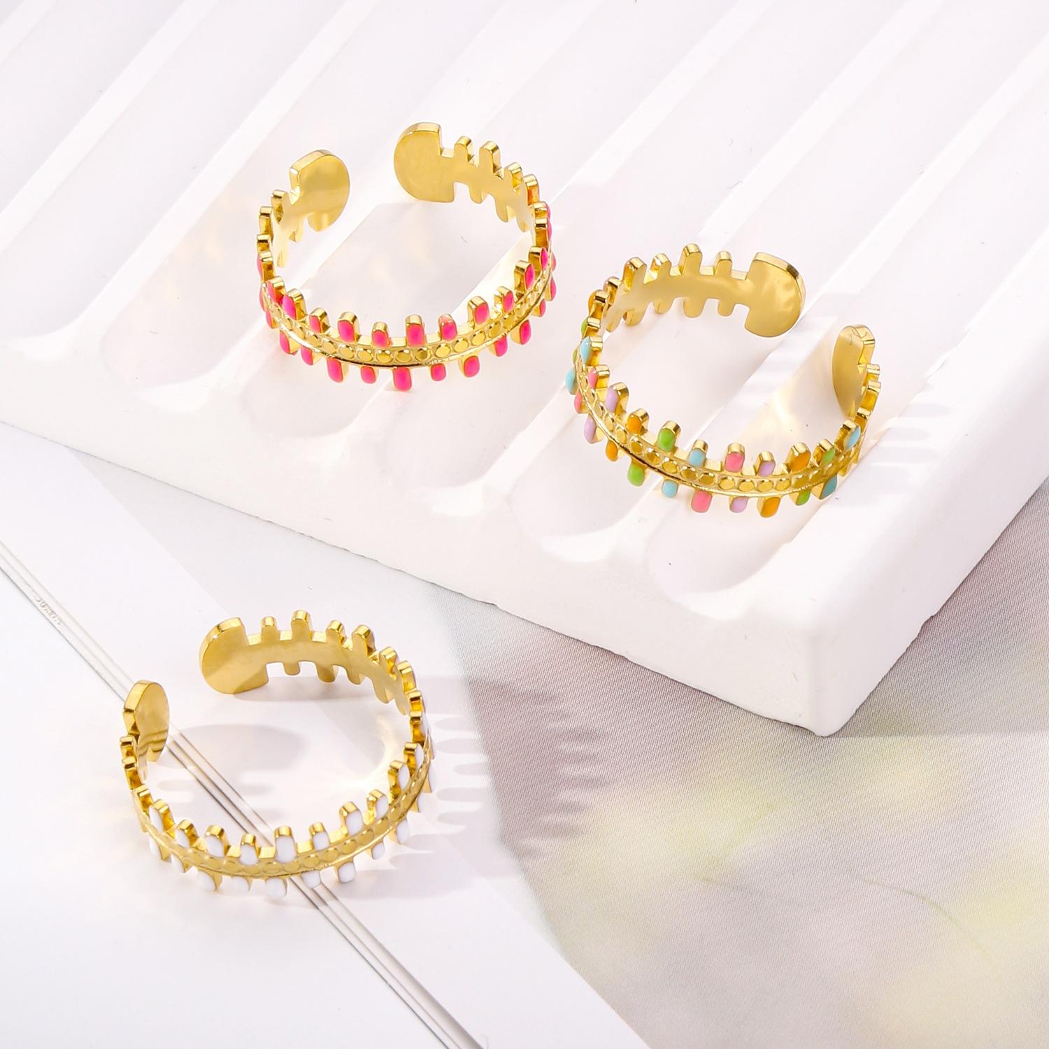 Anillo Versátil Ins con Borla de Esmalte Colorido Anillo Abierto Acero Inoxidable Joyería para Mujer Anillo Geométrico Abierto