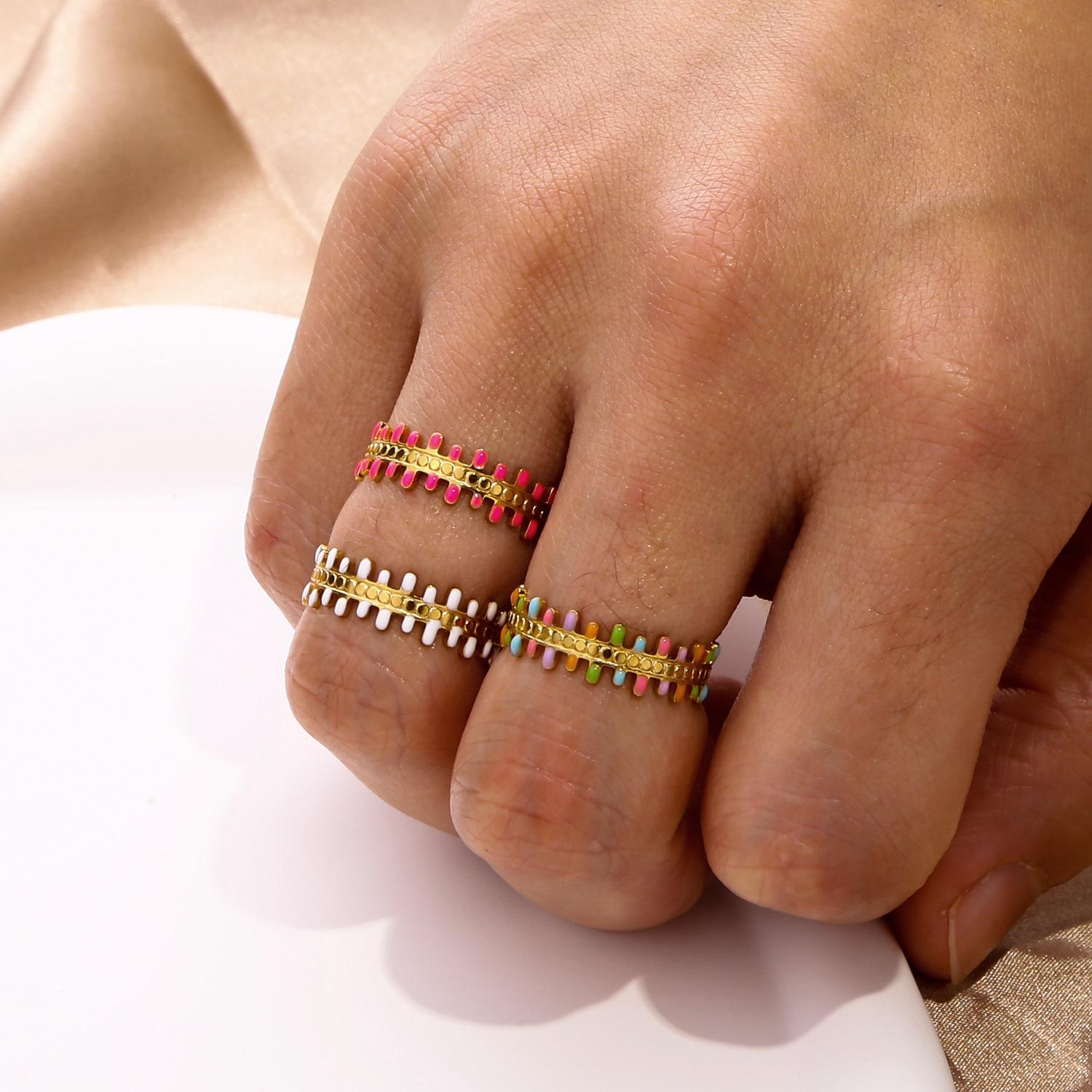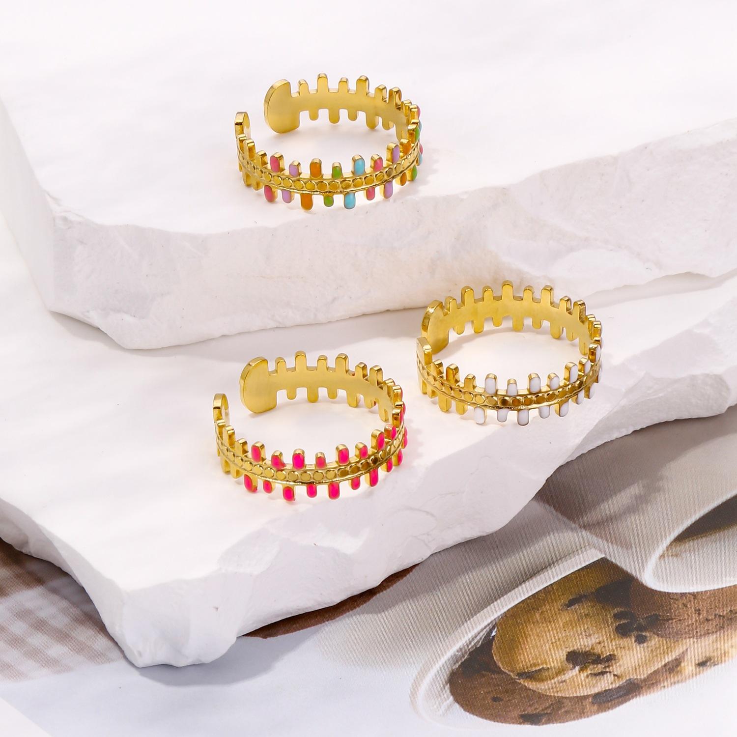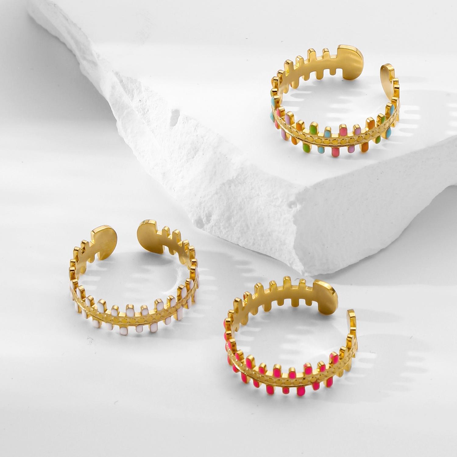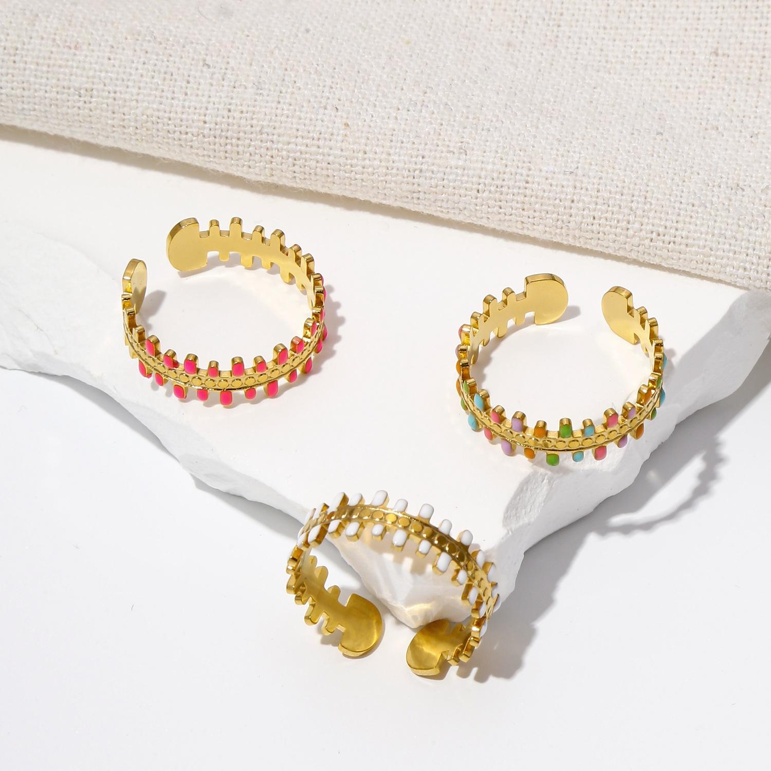 Anillo Versátil Ins con Borla de Esmalte Colorido Anillo Abierto Acero Inoxidable Joyería para Mujer Anillo Geométrico Abierto