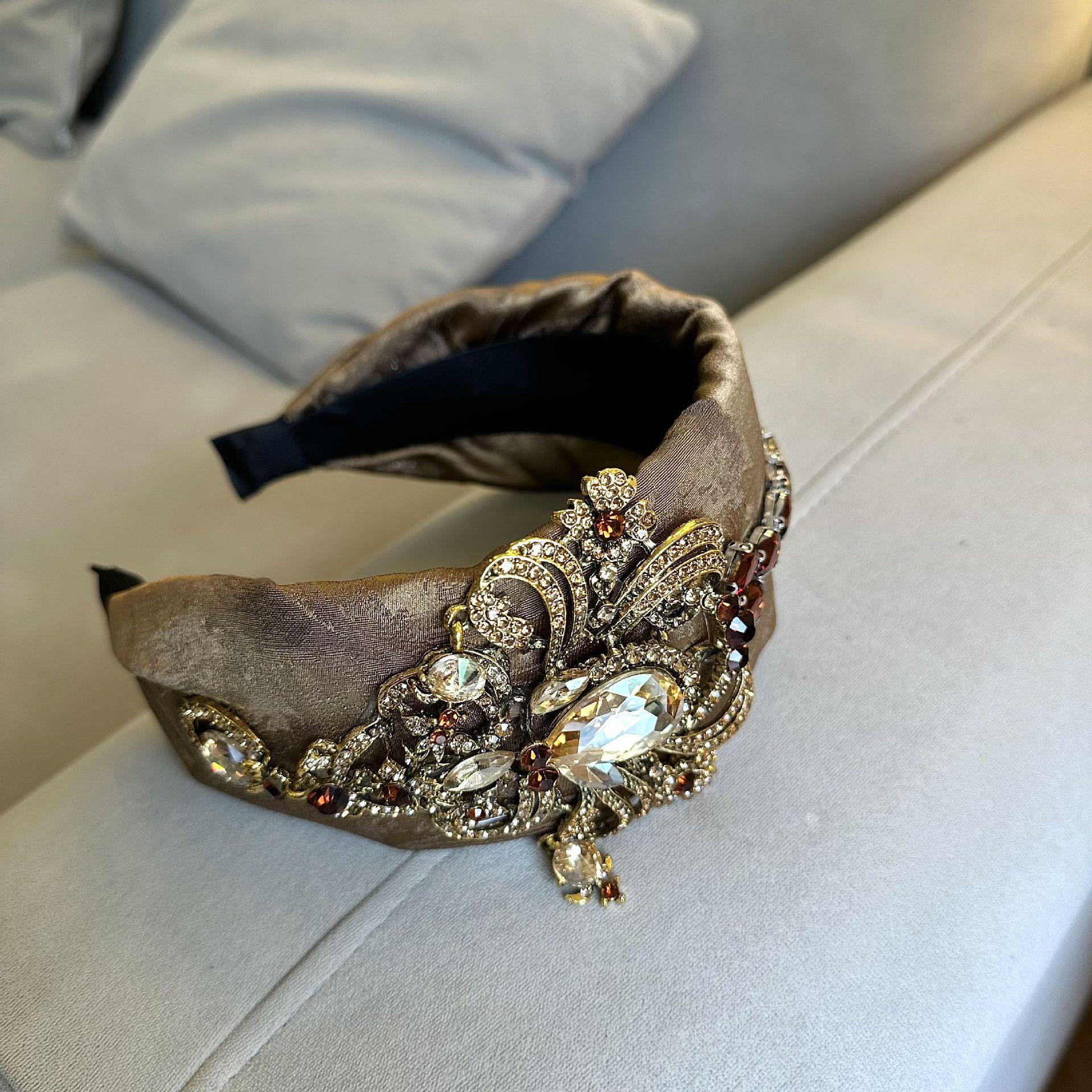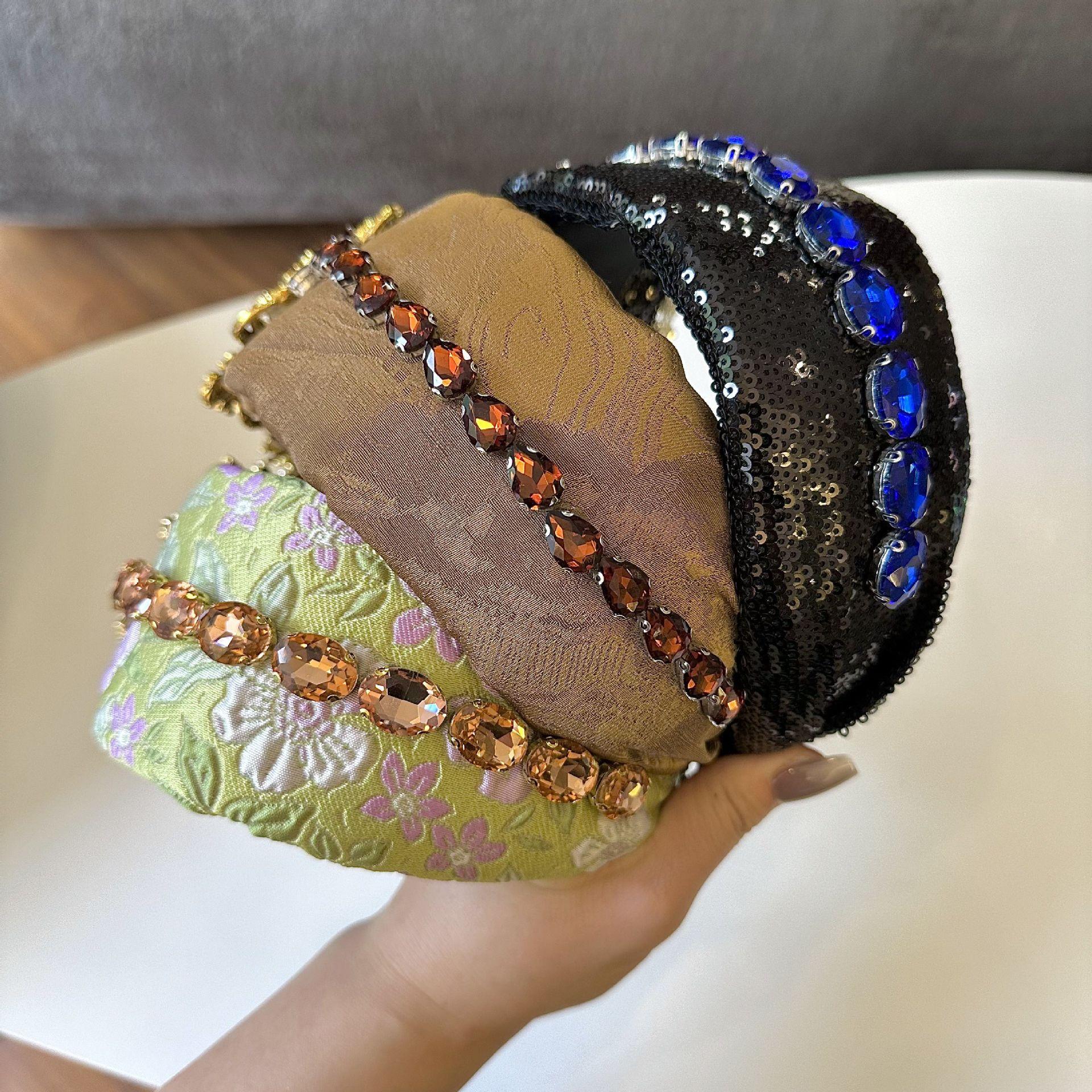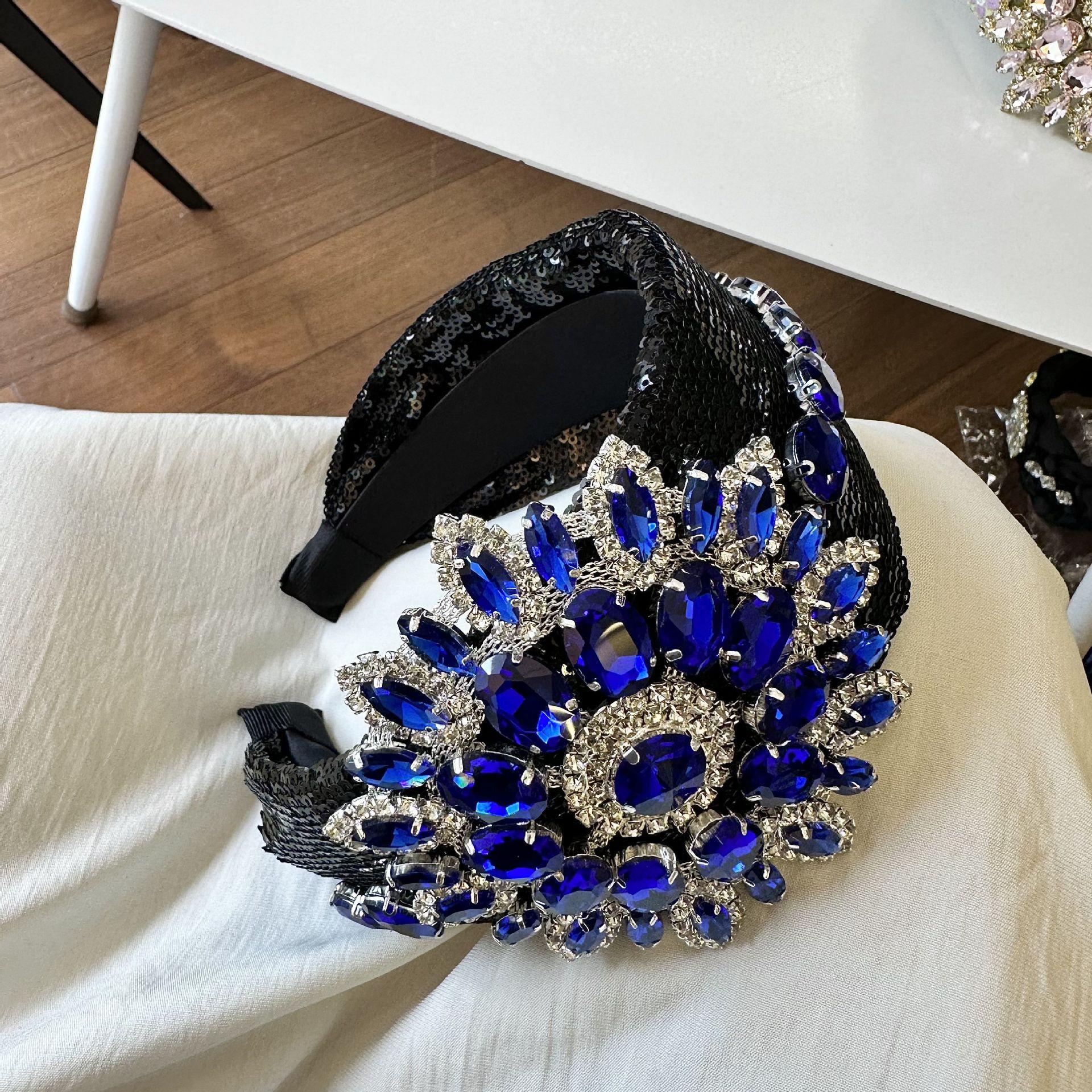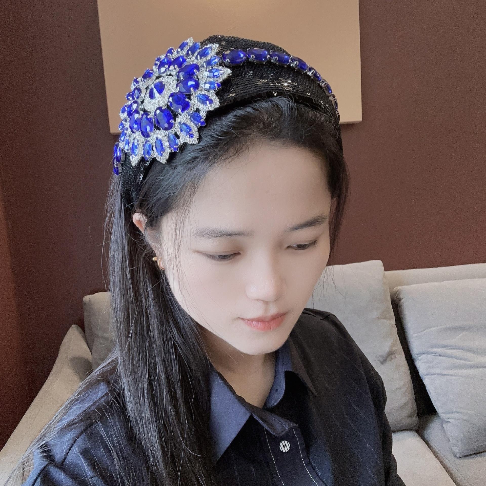Diadema de estilo francés, ligera, de lujo, para industria pesada, con flores de cristal, de ala ancha, diseño de nicho para dama, accesorios de fiesta para mujer