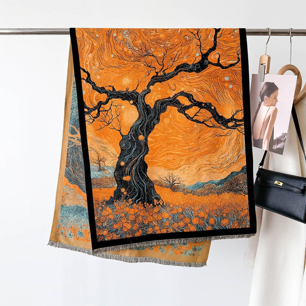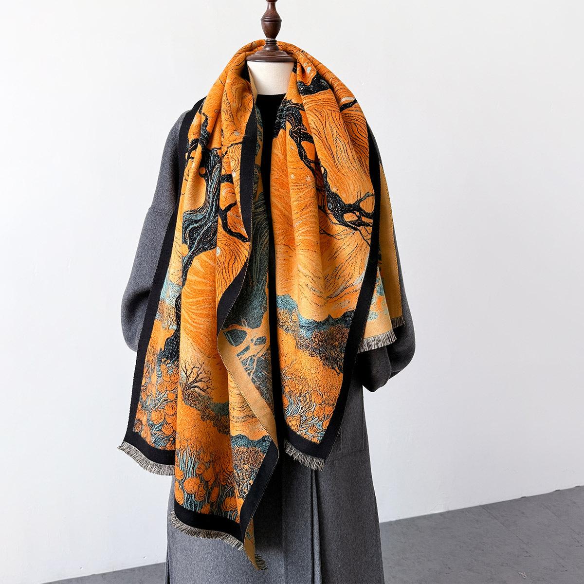 2024 Nuevo Bufanda Larga Artística de Otoño e Invierno Imitación Cachemira Cálida Cálida Sala con Aire Acondicionado Chal Estilo Chino Mujer