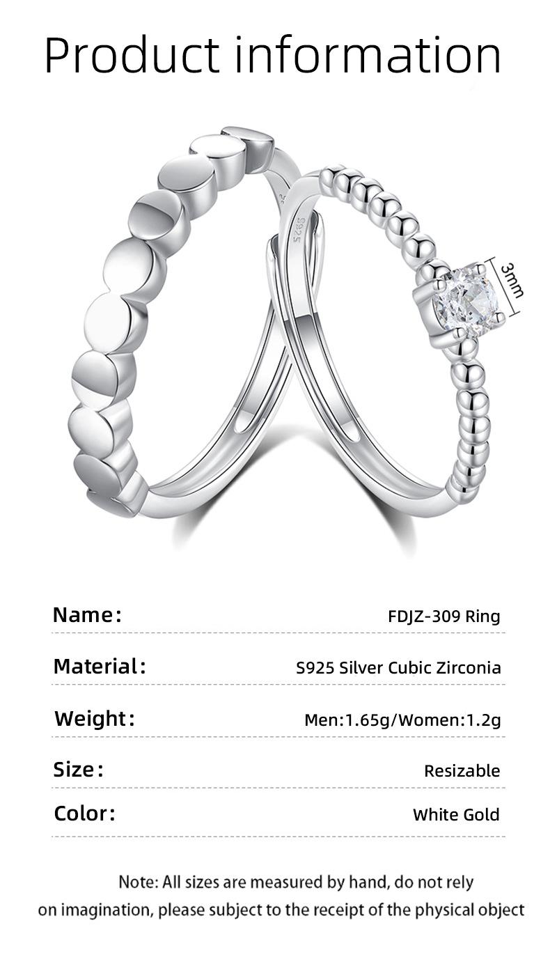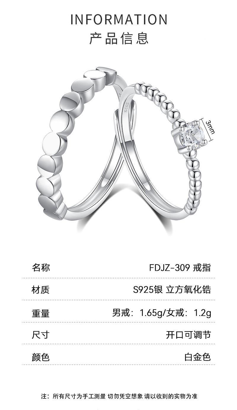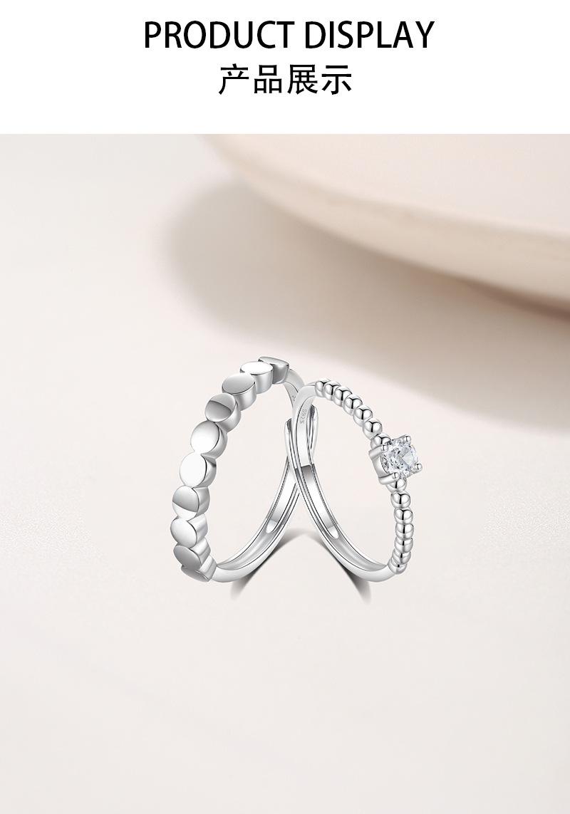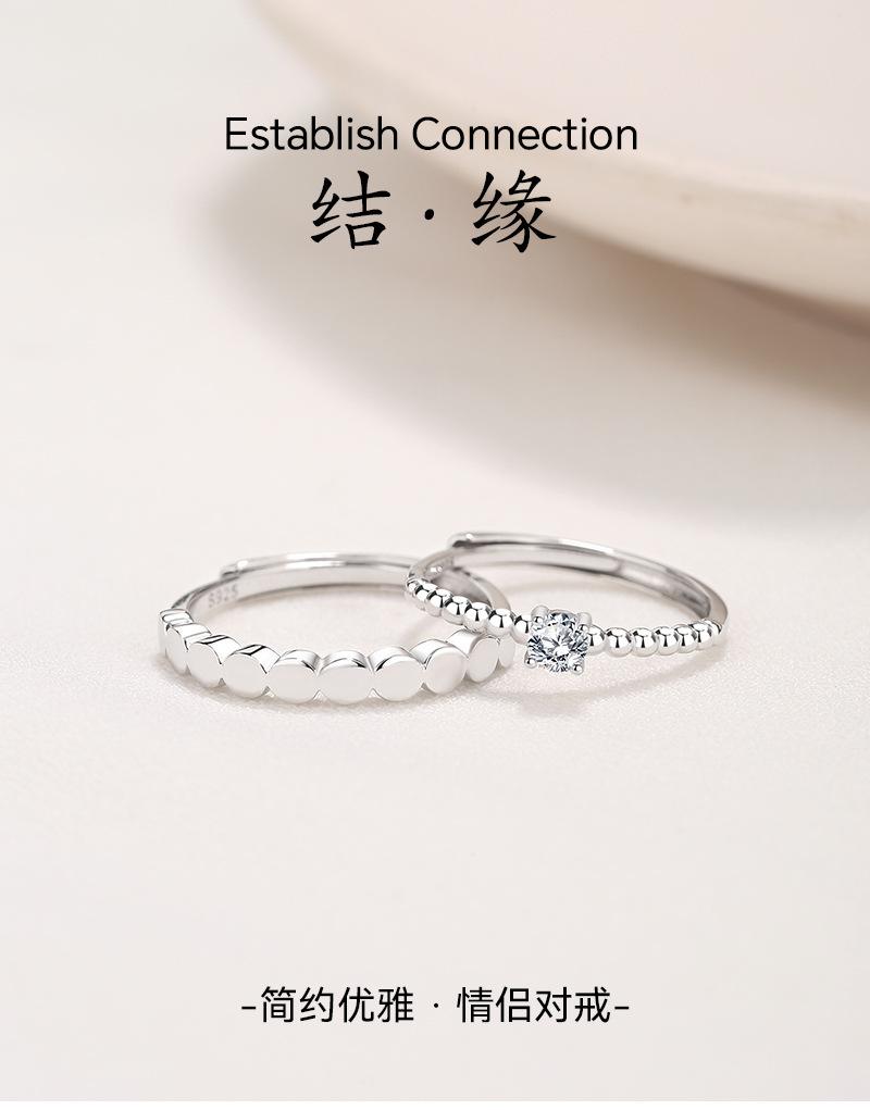Anillo de pareja con borde de plata S925 para mujer, ligero, de lujo, con un solo diamante, diseño abierto, venta al por mayor