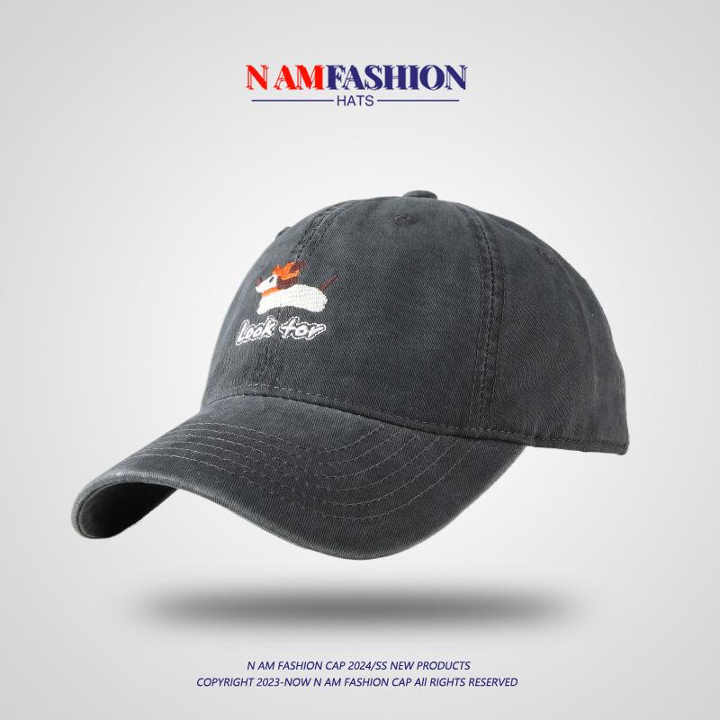 Cartoon embroidered lookfar baseball cap black, Cartoon embroidered lookfar baseball cap light gray, Cartoon e...