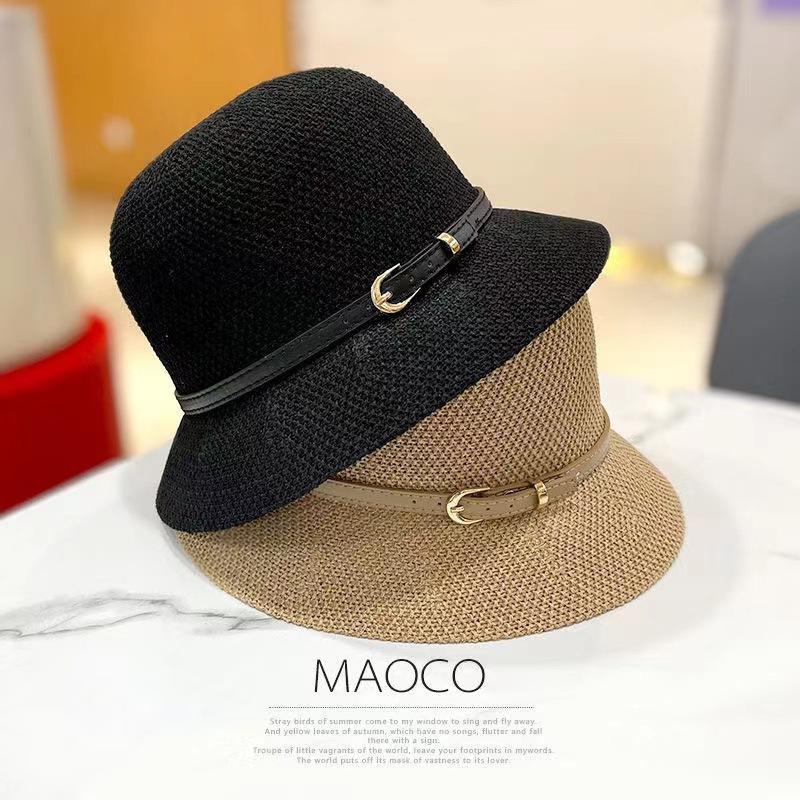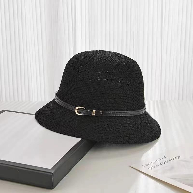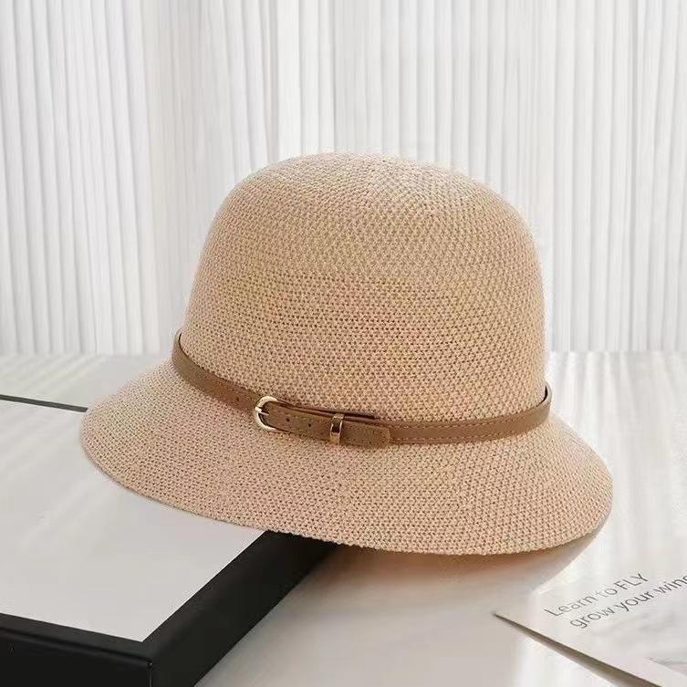Gray--belt bucket hat, Brown--belt bucket hat, Beige--belt bucket hat, Brick red--belt bucket hat