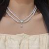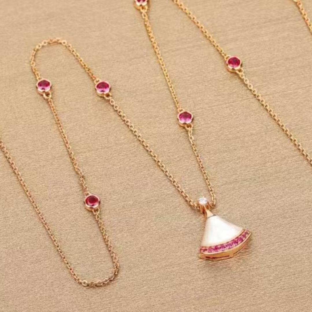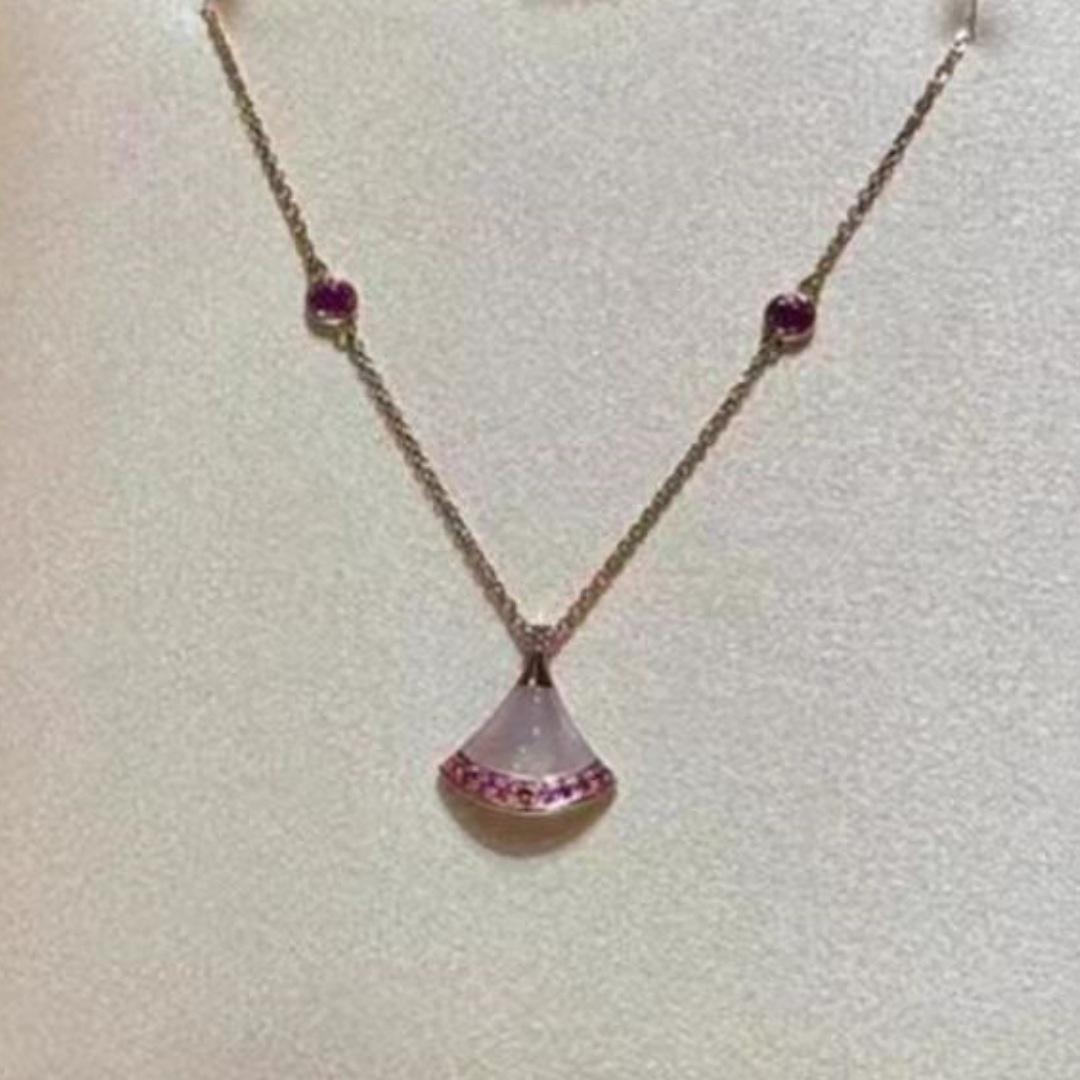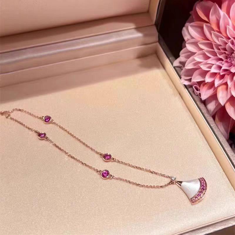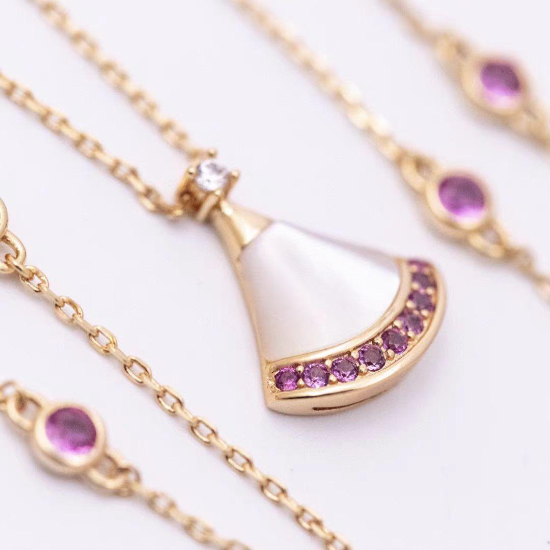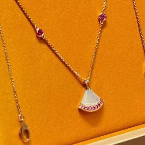 Falda pequeña elegante con incrustaciones de sentimientos románticos, chapada en oro, a la moda, abanico blanco con collar de diamantes, cadena de clavícula elegante y ligera de lujo