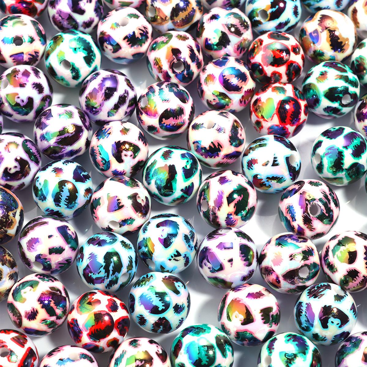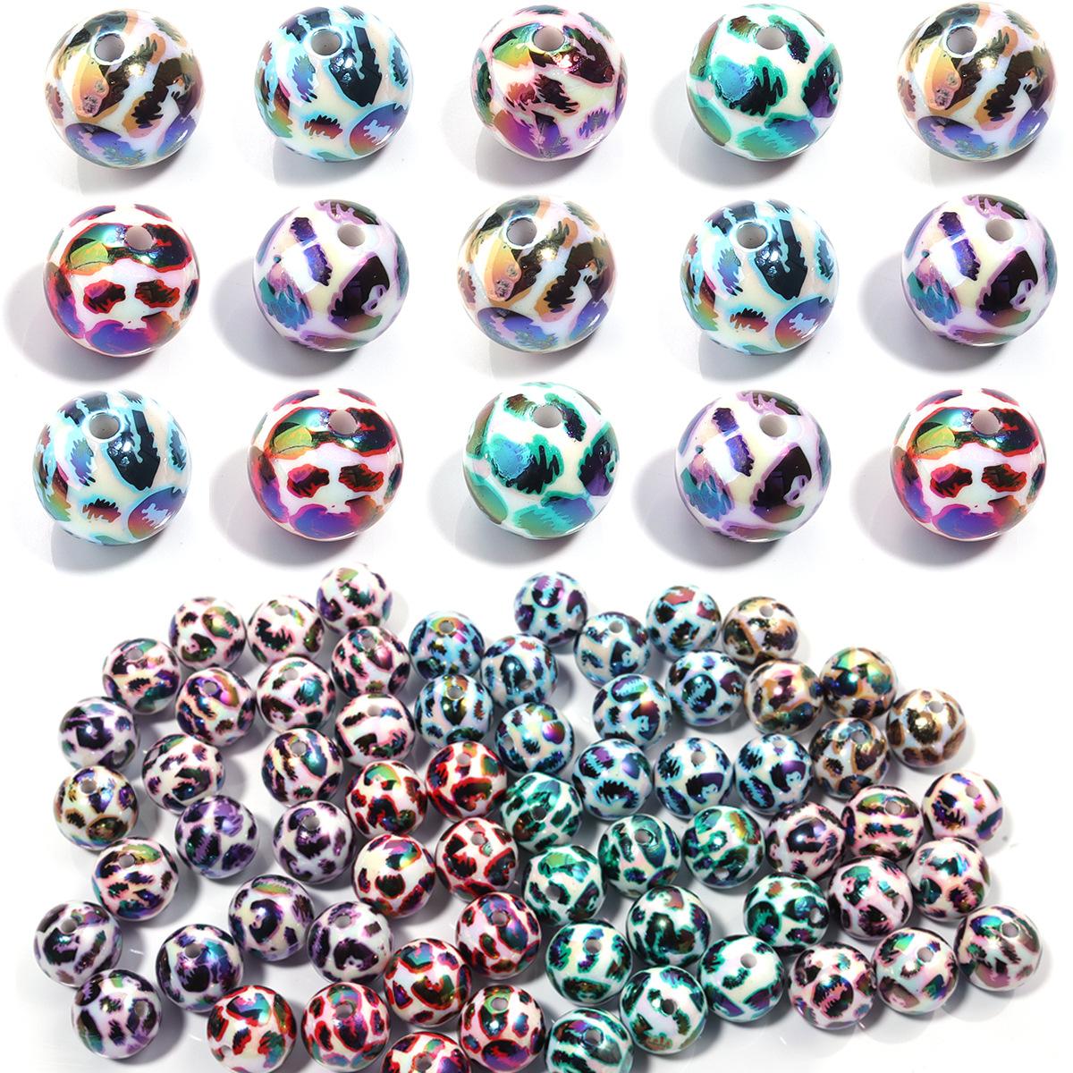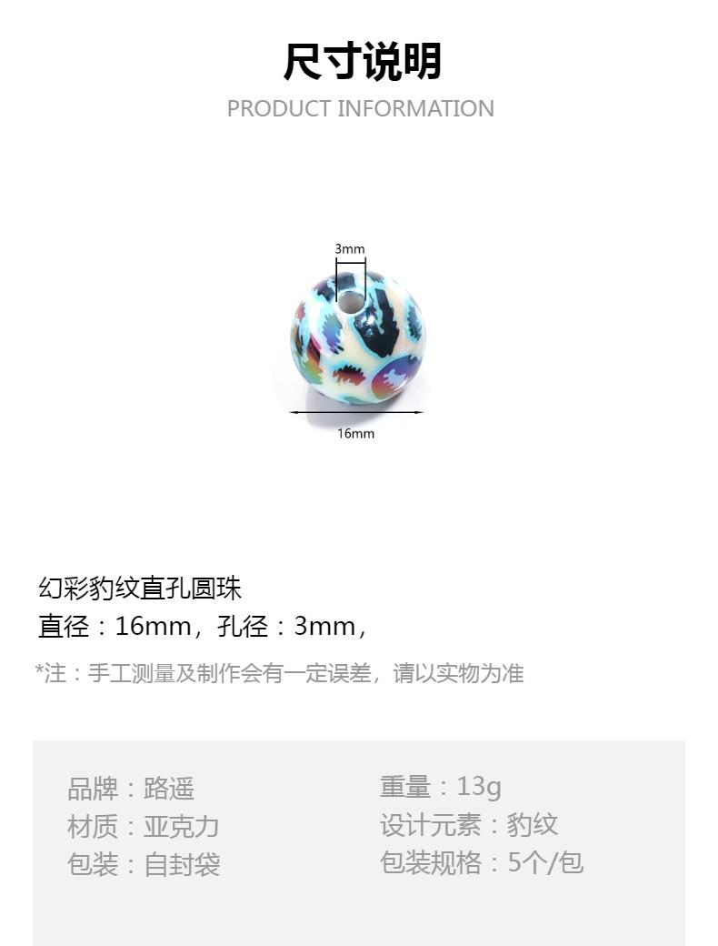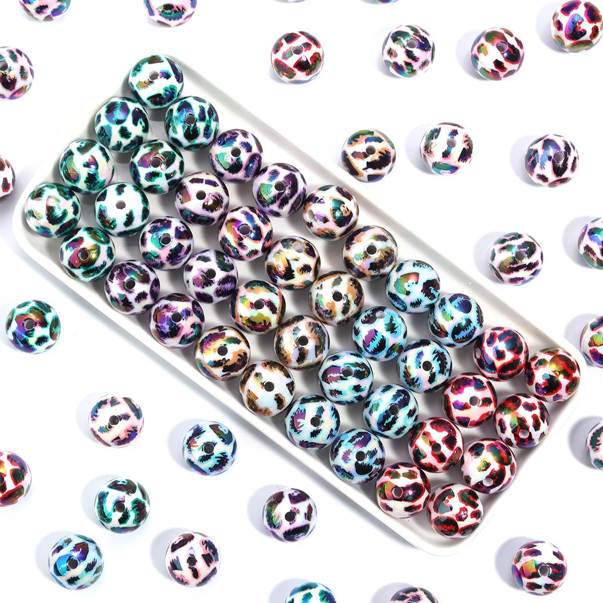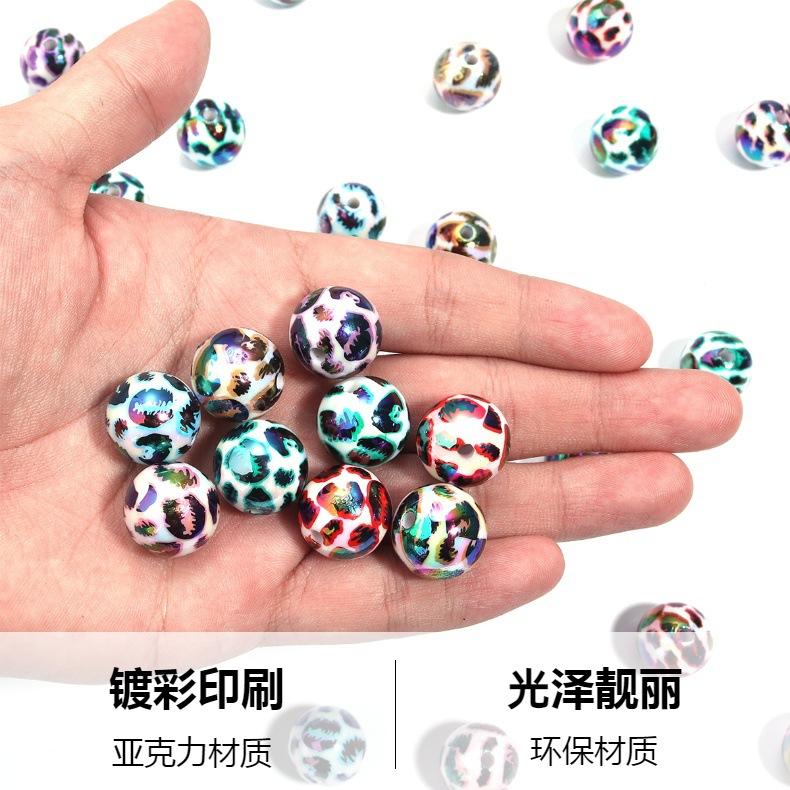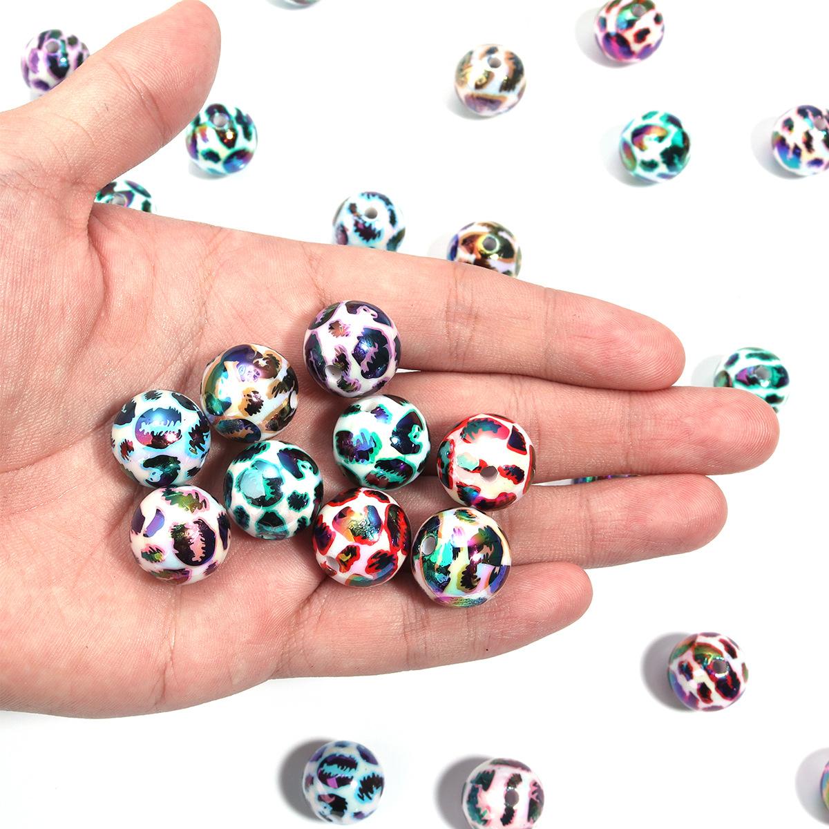 Cuentas sueltas de acrílico de 16 mm con agujero recto mágico, cuentas redondas de leopardo, joyería, collar de cuentas, pulsera, accesorios de bricolaje