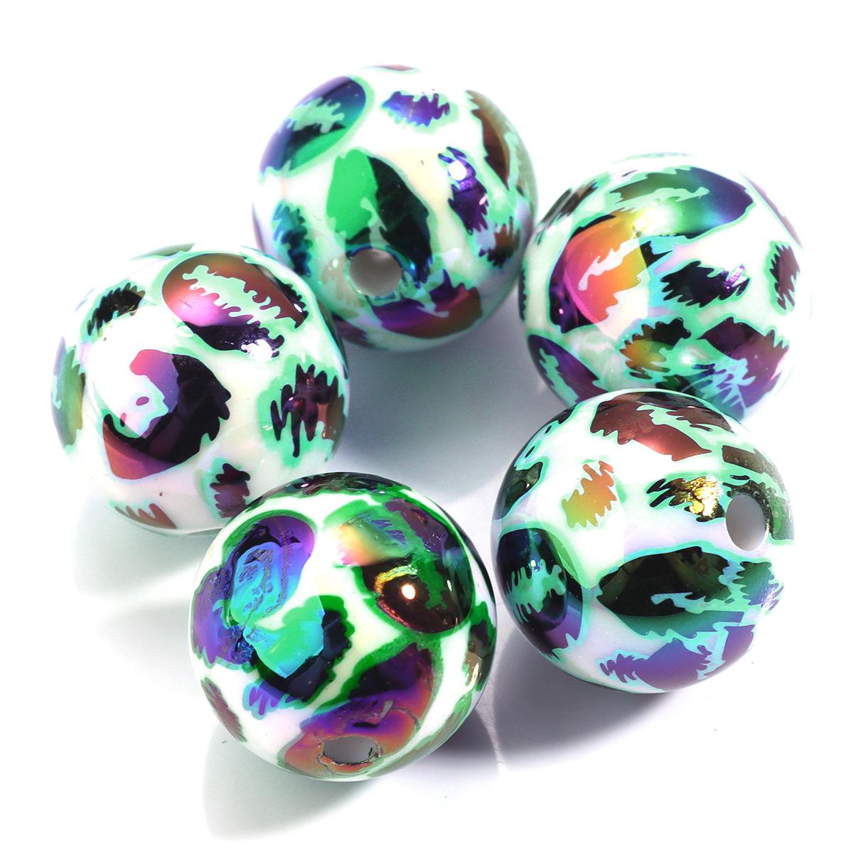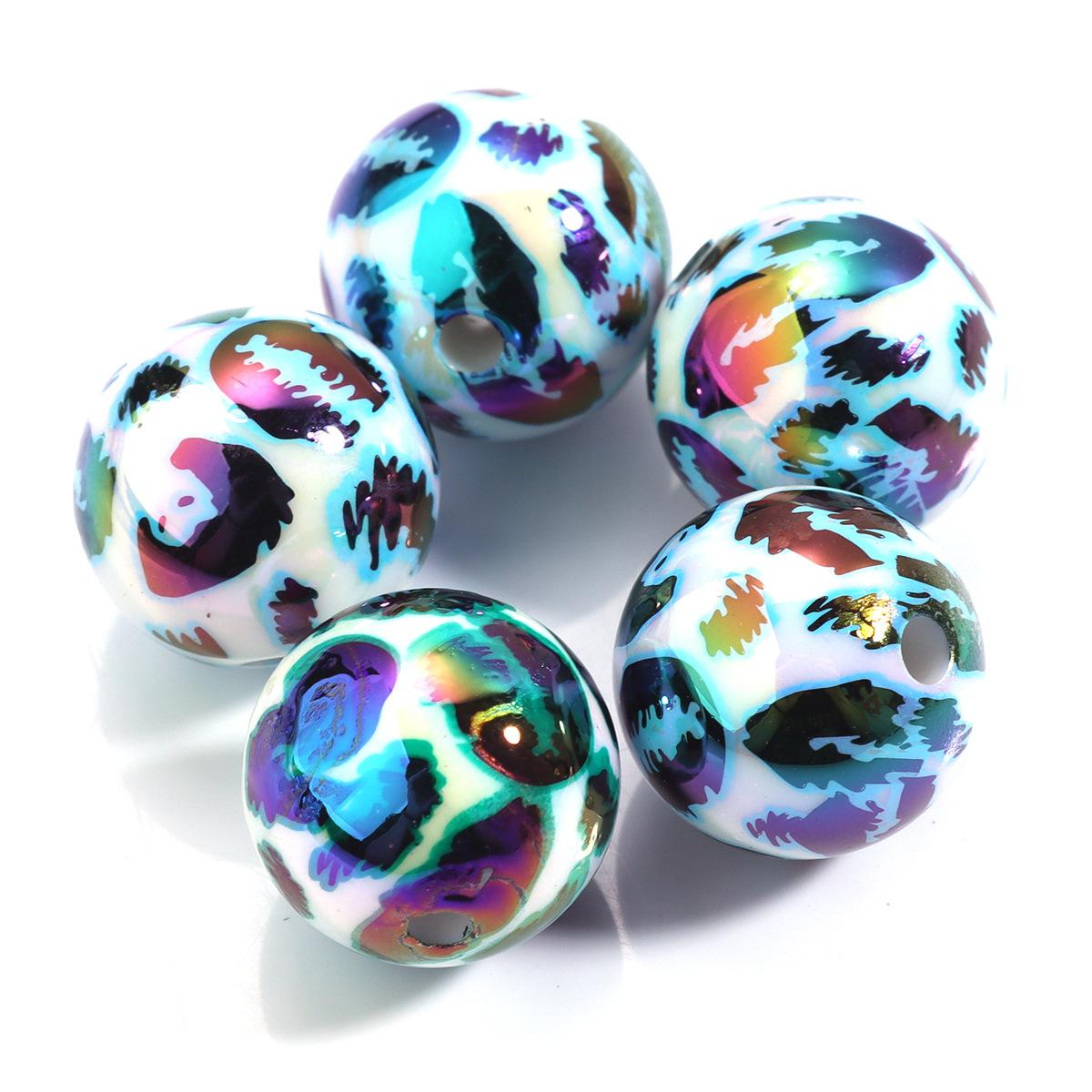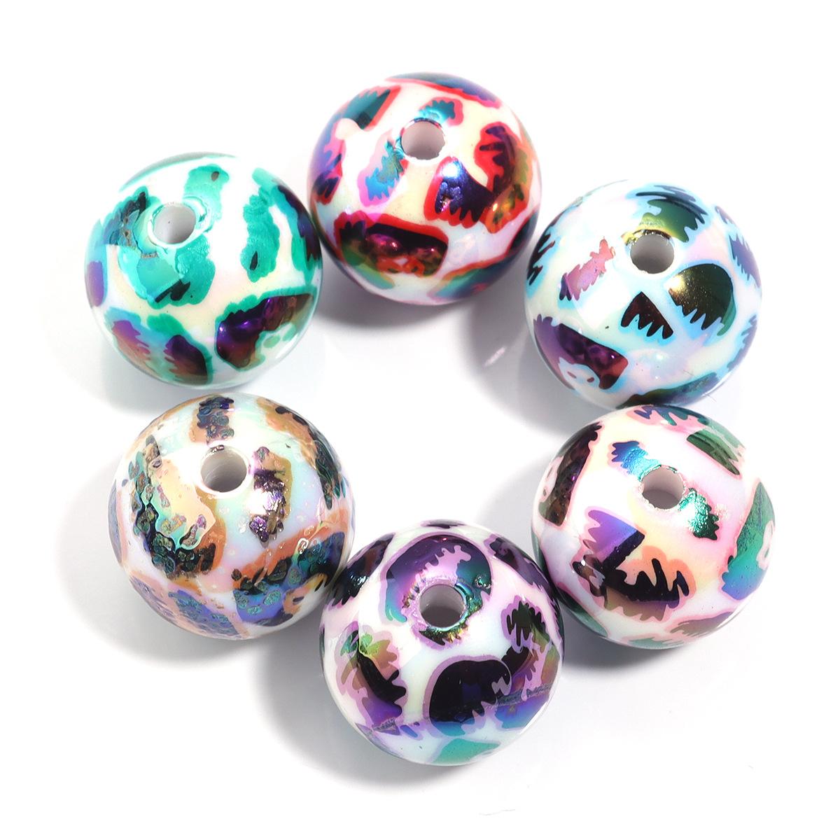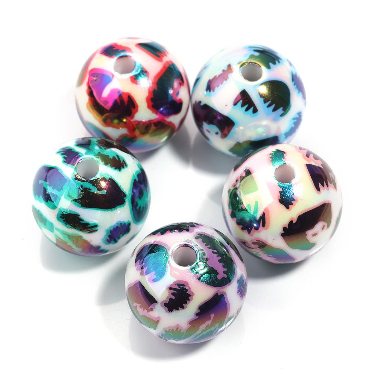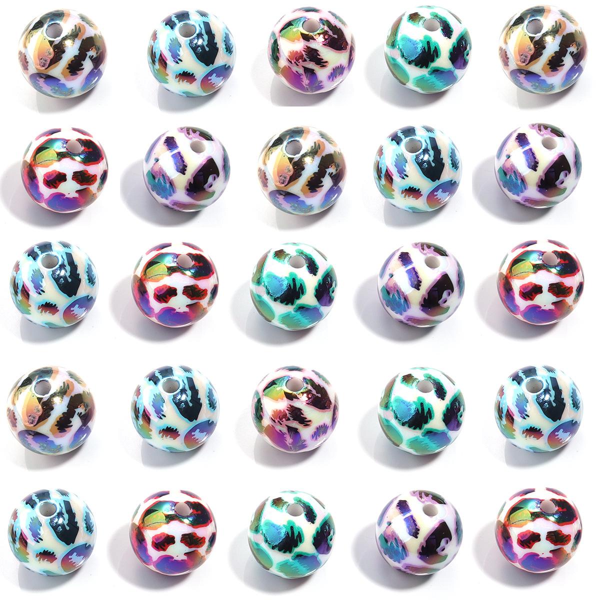 Cuentas sueltas de acrílico de 16 mm con agujero recto mágico, cuentas redondas de leopardo, joyería, collar de cuentas, pulsera, accesorios de bricolaje