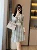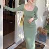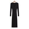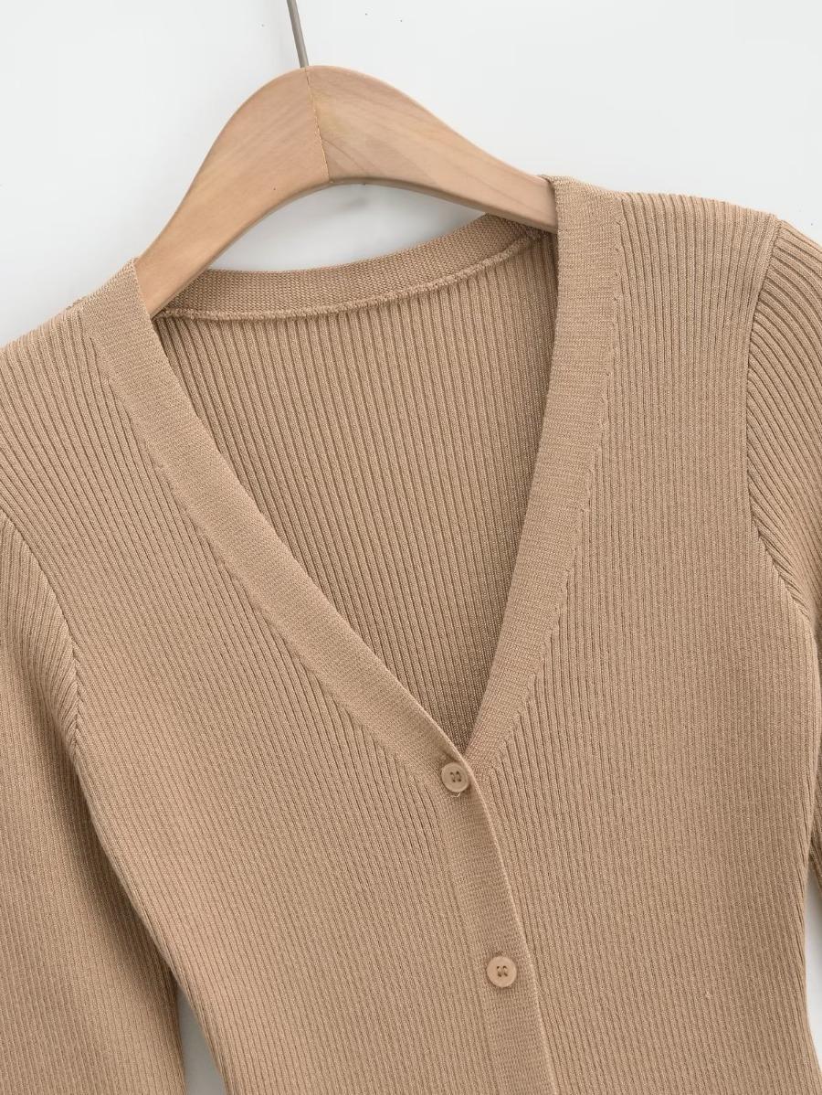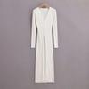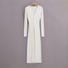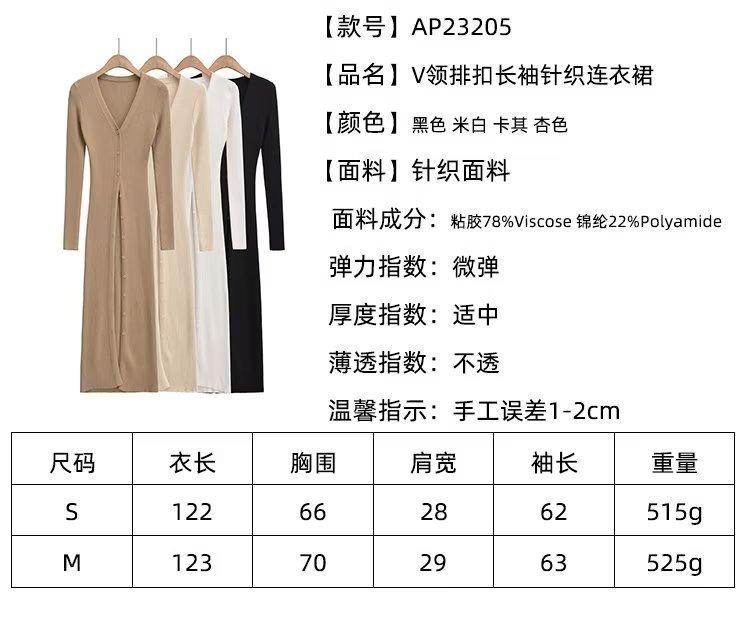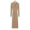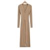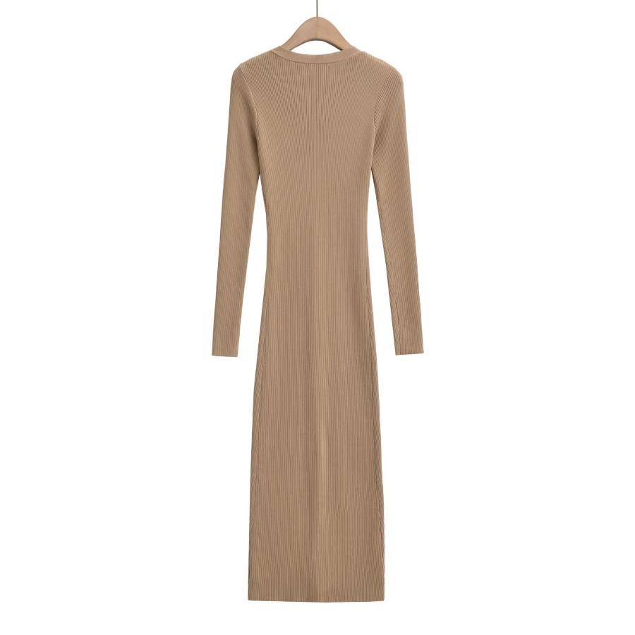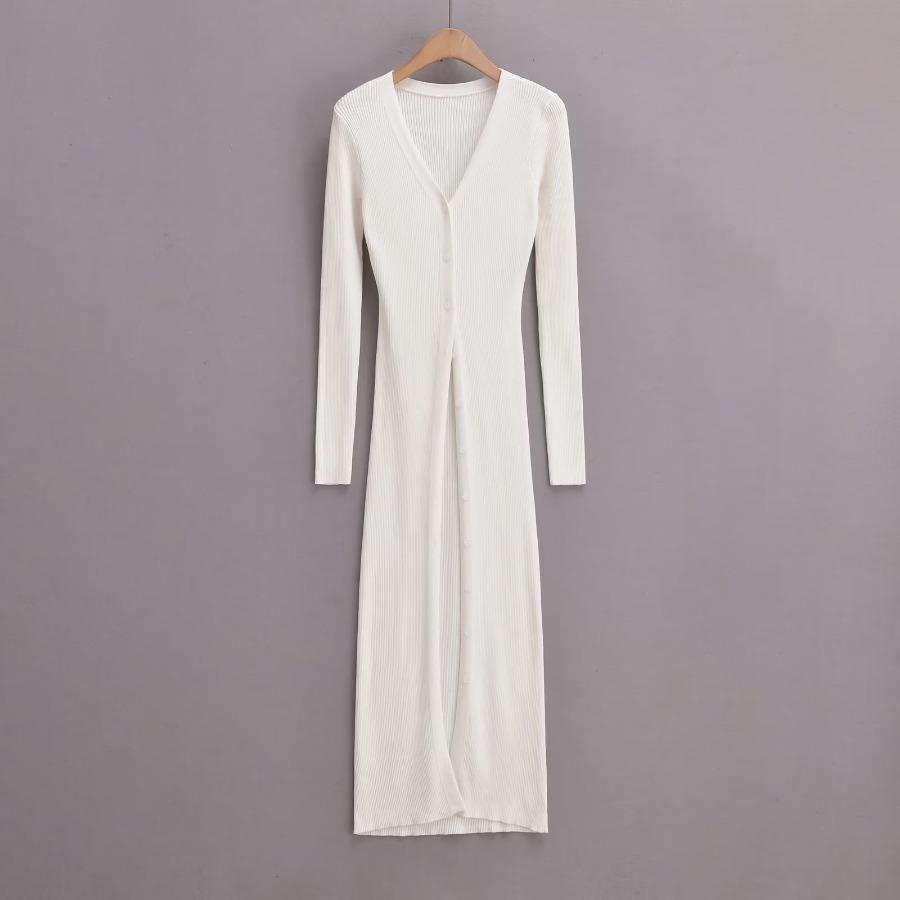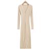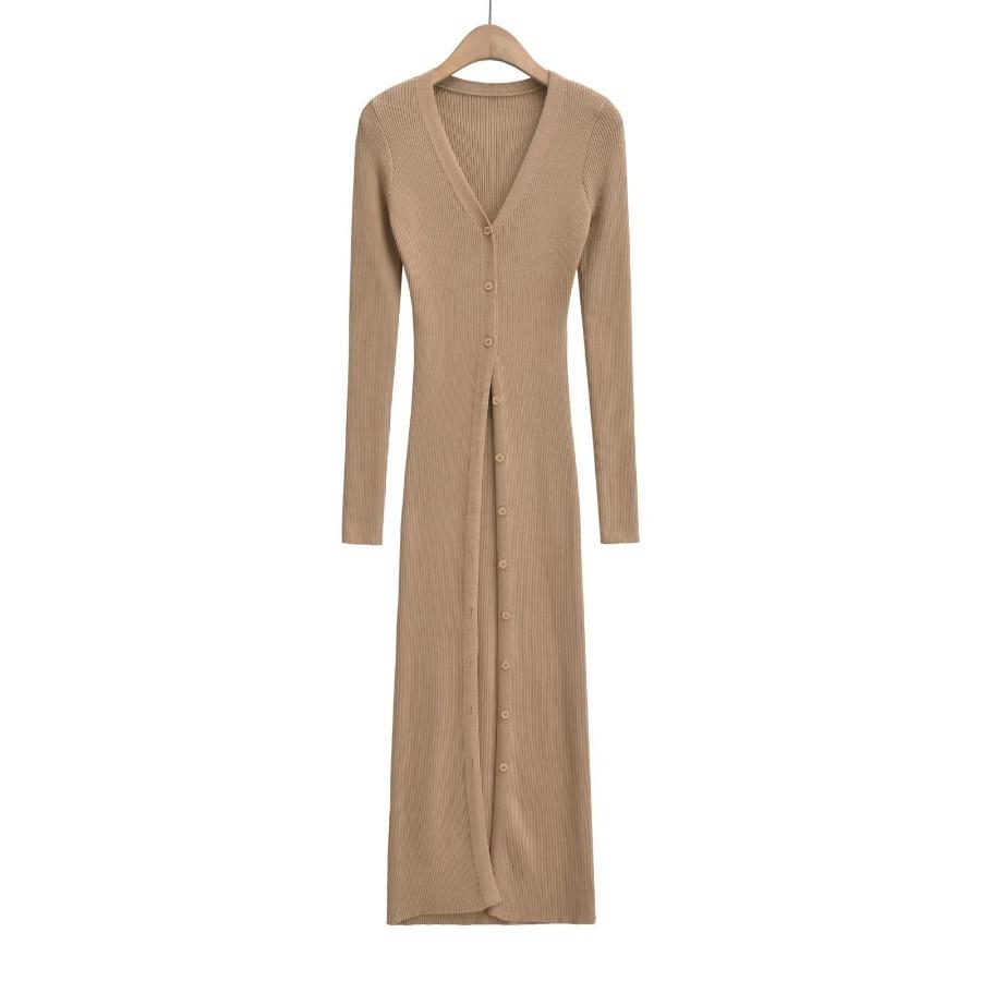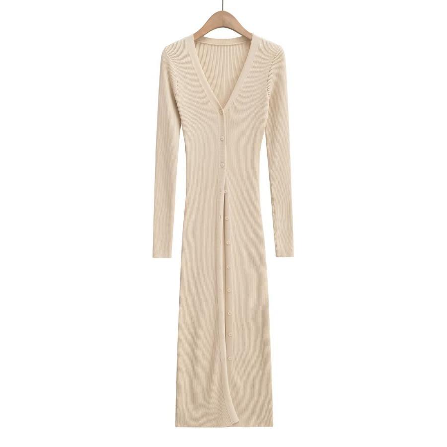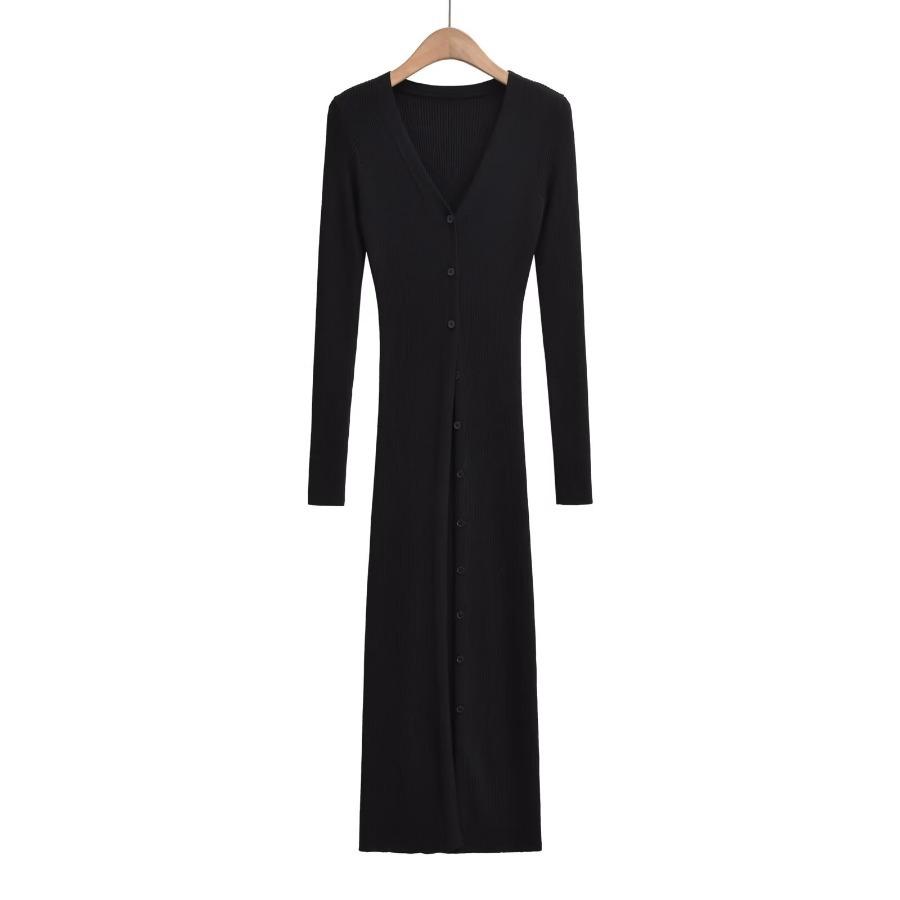 Vestido tipo cárdigan de punto de manga larga con escote en V y botones para chica sexy retro de otoño, nuevo vestido tubo elástico de color liso