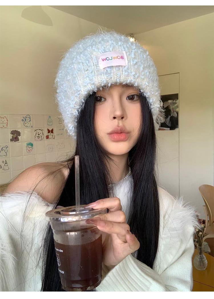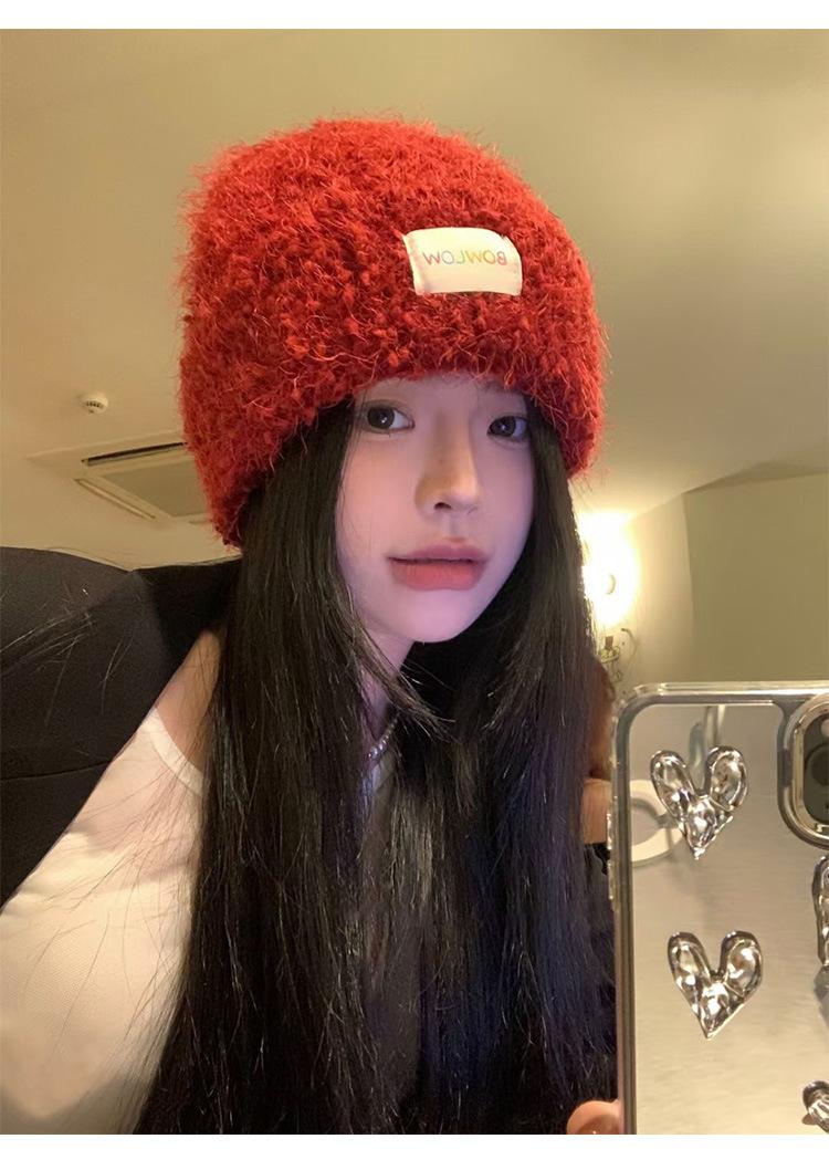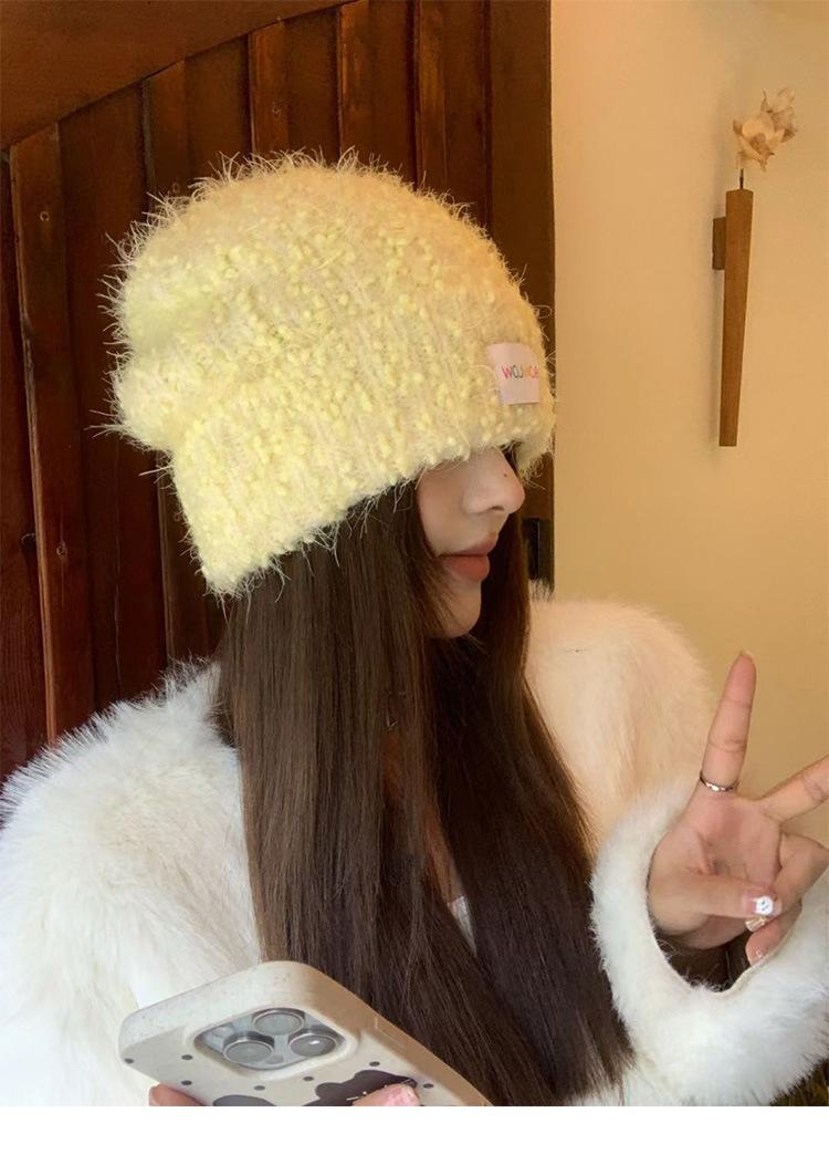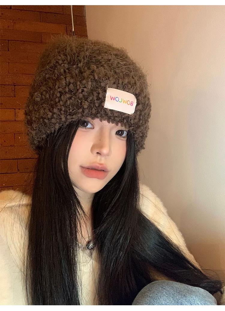 Sombrero de felpa sombrero de lana grueso de invierno para niños circunferencia de cabeza grande cálido delgado versátil sombrero tejido a prueba de viento jersey sombrero para el frío