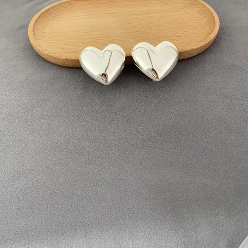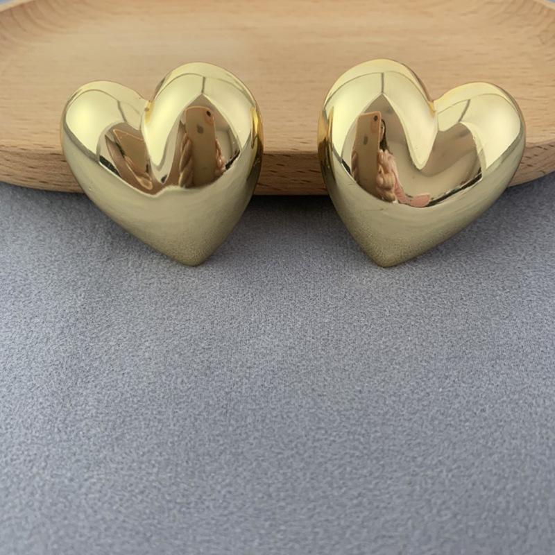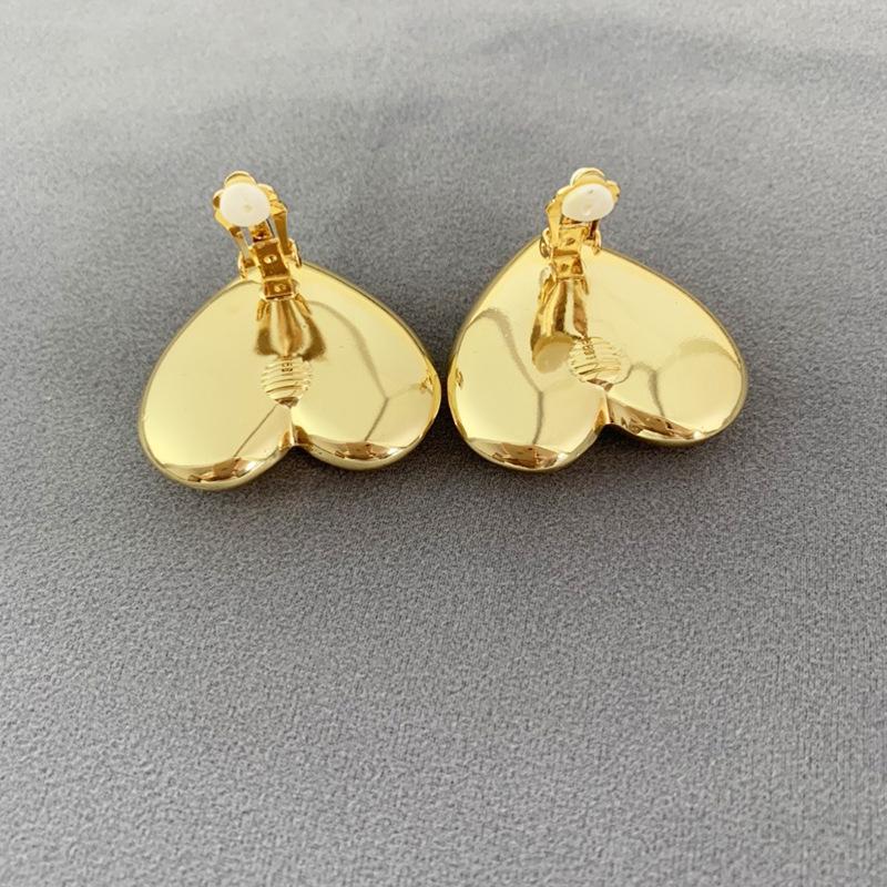 Clip para oreja de amor tridimensional hueco grande liso de doble cara para otoño e invierno, aretes sin agujero en la oreja, cobre chapado, aretes de corazón de melocotón de alta gama
