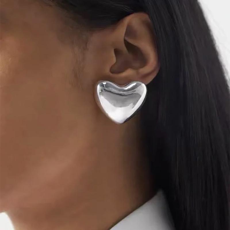 Clip para oreja de corazón grande de 4 cm de diámetro, super atmosférico, hueco, latón chapado en oro real