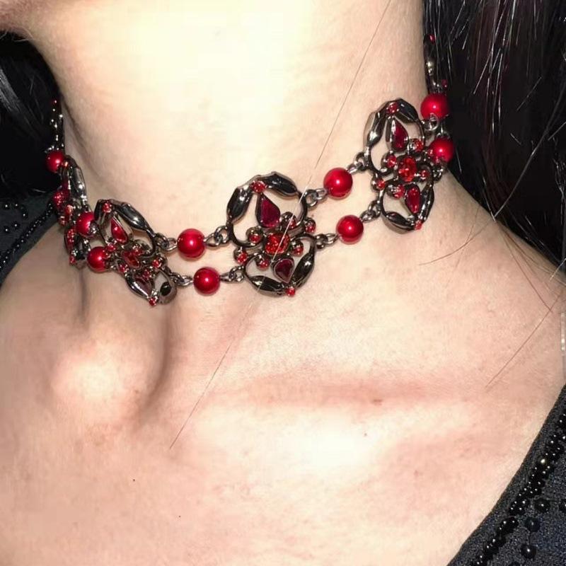 Collar de cuentas redondas rojas, elegante y de lujo, con un toque dulce y fresco, para mujer, con un diseño moderno y elegante, ideal para clavículas.