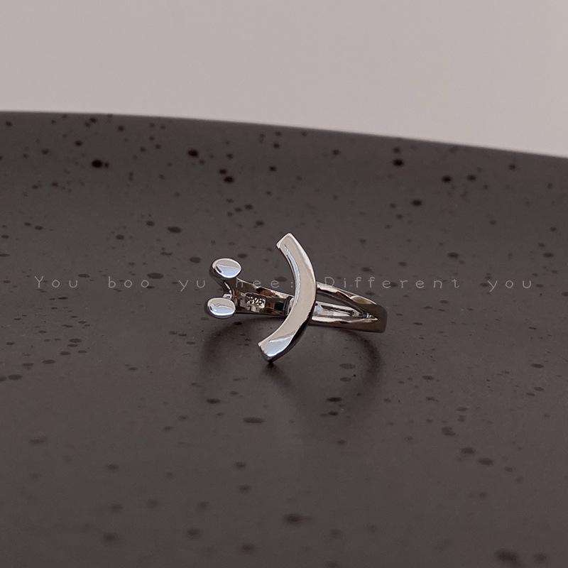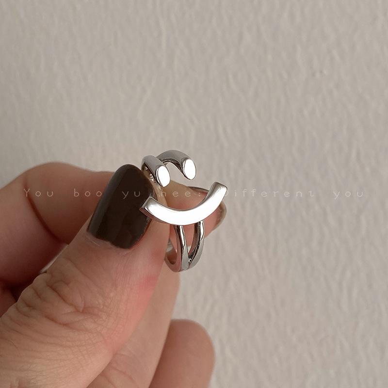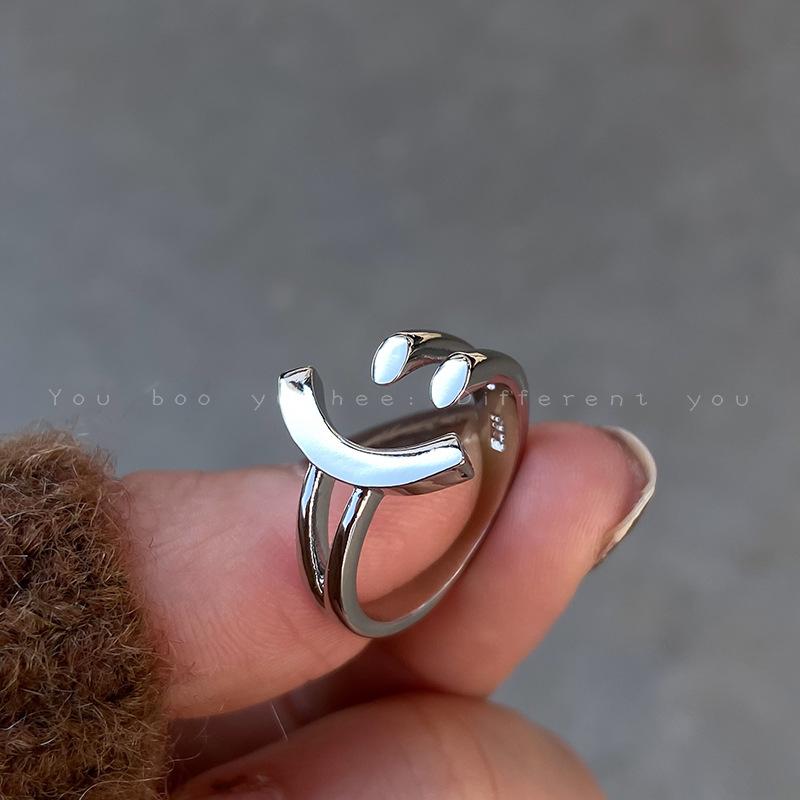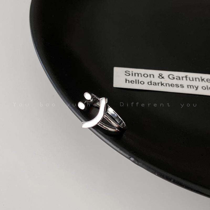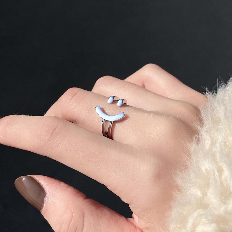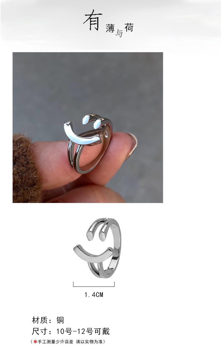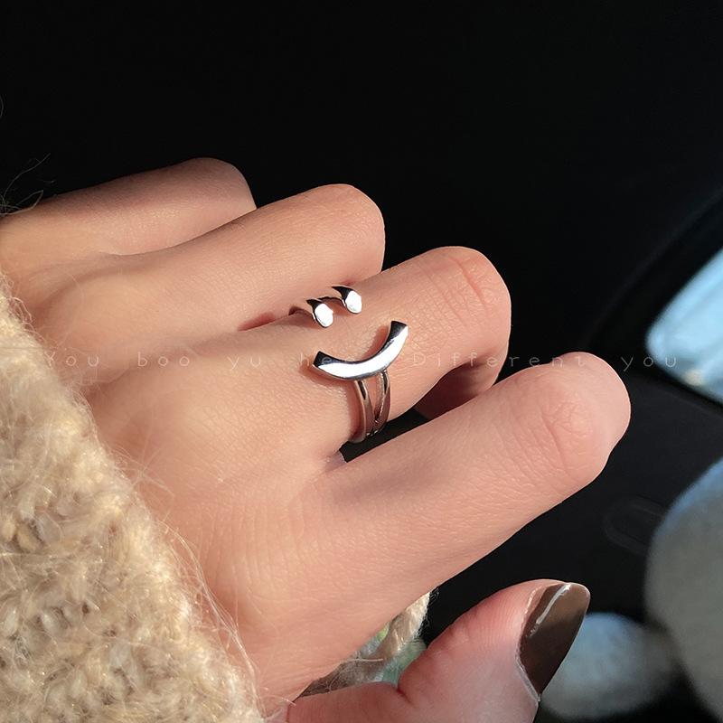 Anillo abierto con cara sonriente de plata de moda de estilo coreano, anillo de nicho con personalidad de moda femenina, anillo simple que combina con todo, anillo de alto sentido para mujer