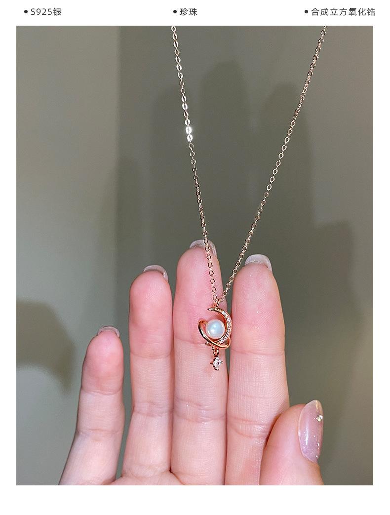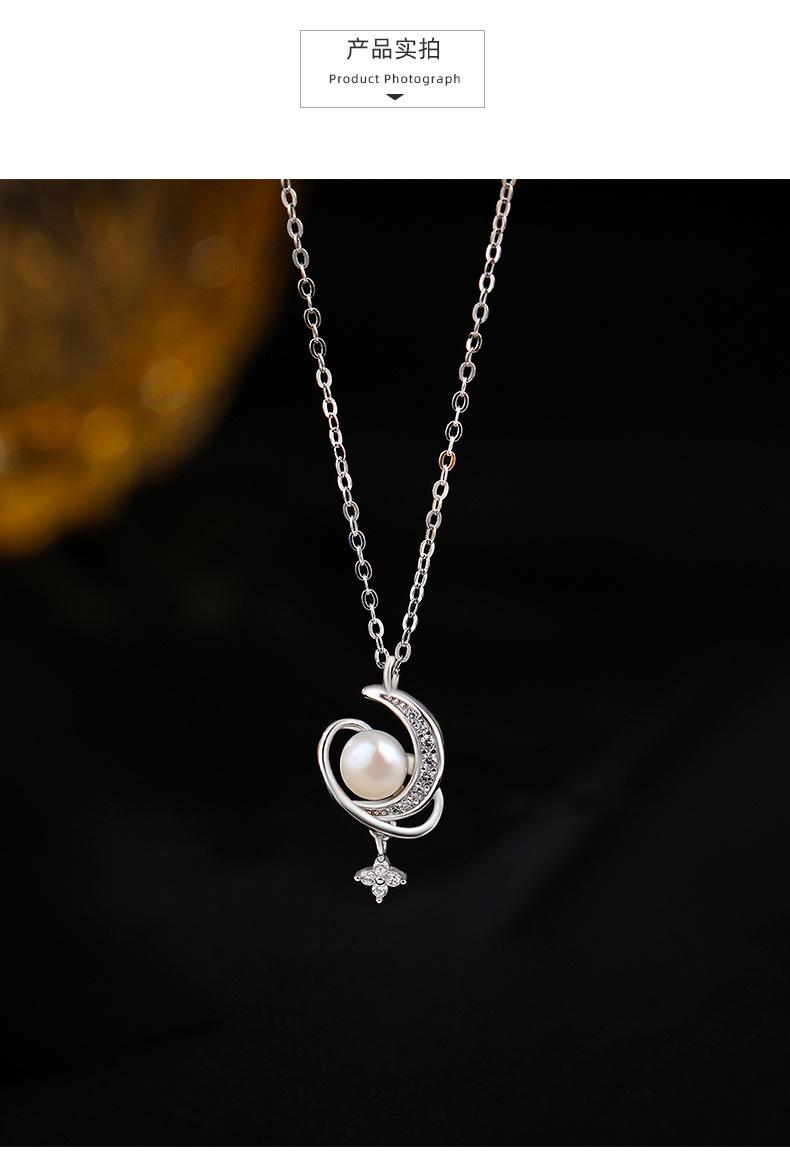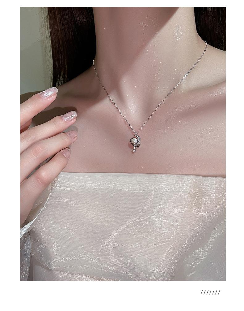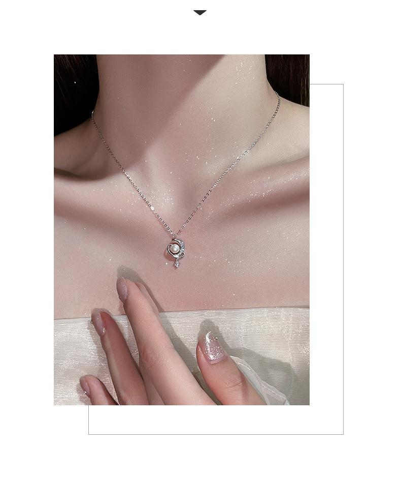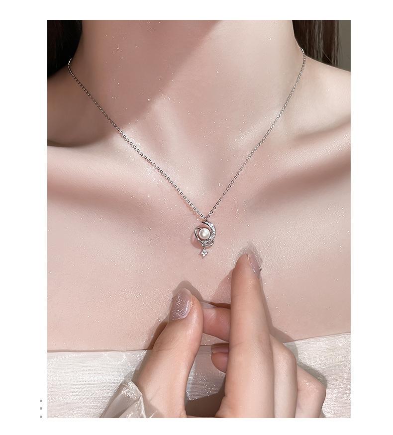 Nuevo collar de plata de ley S925 con perla de luna y estrella envolvente, ligero, de lujo, personalizado, con nicho, combinable con todo, elegante cadena de clavícula.