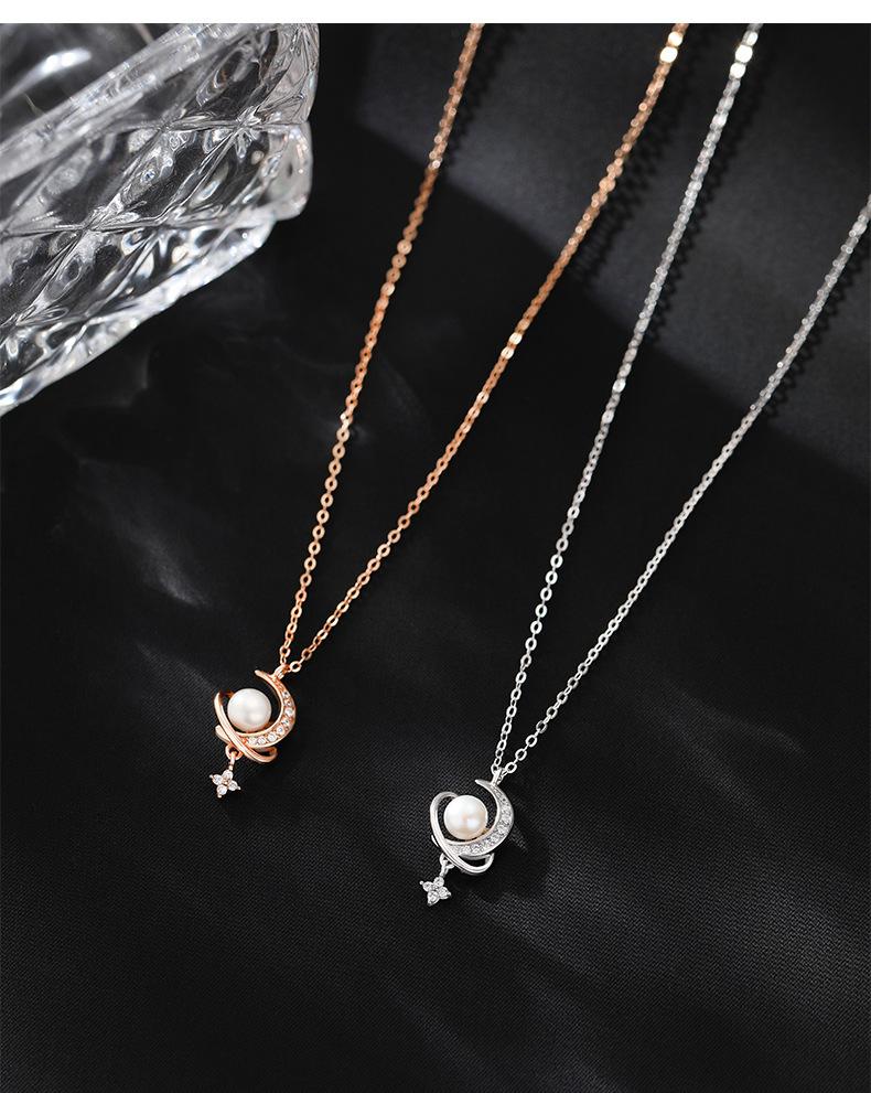 Surround the star and moon pearl necklace white gold, Surround the star and moon pearl necklace rose gold