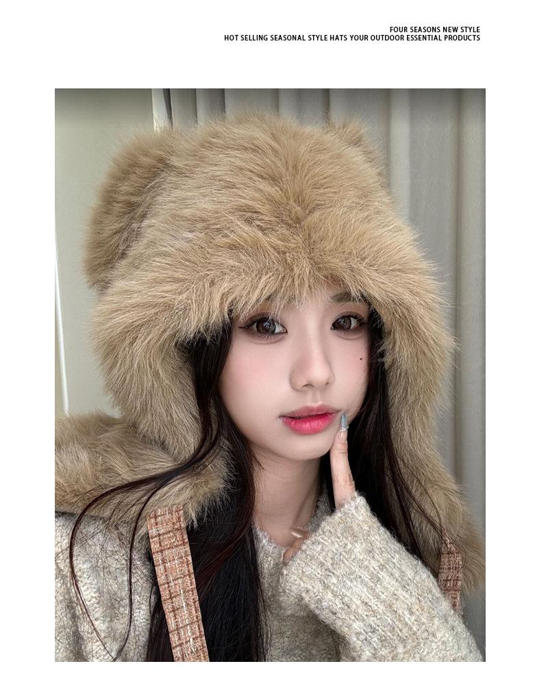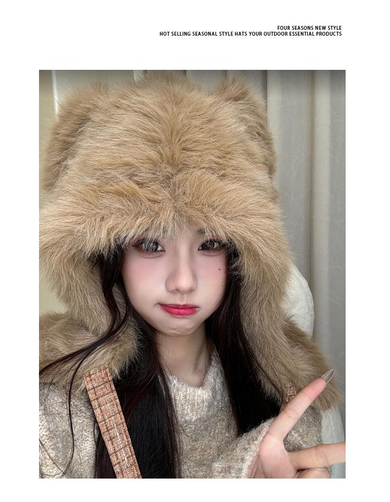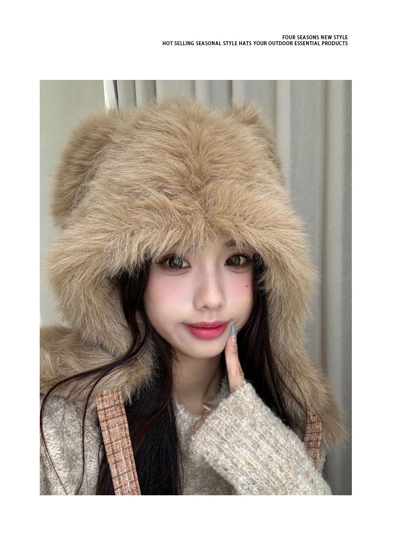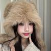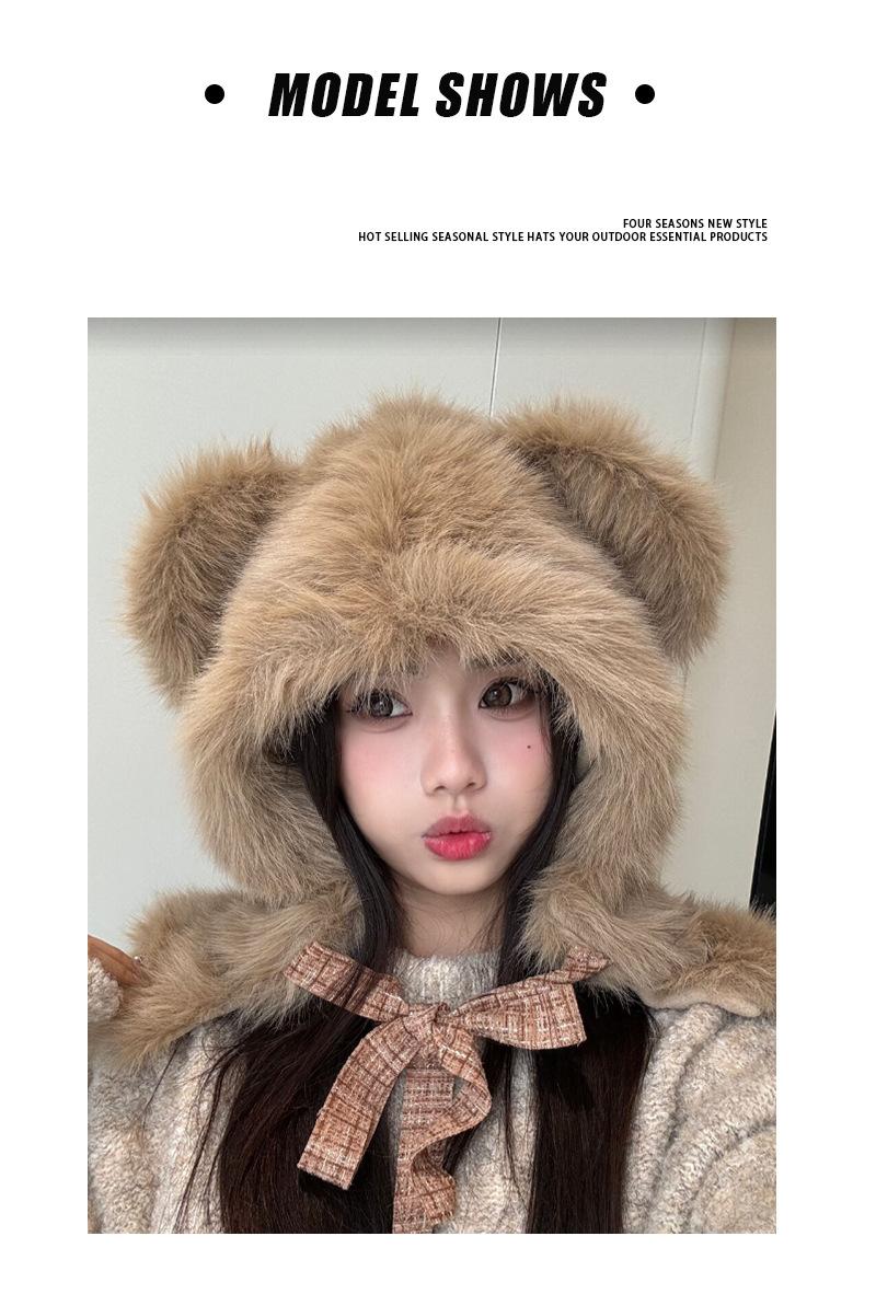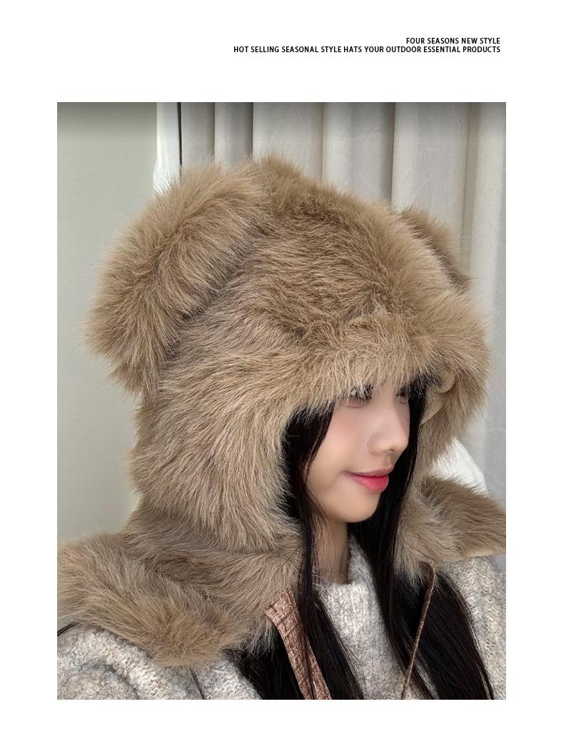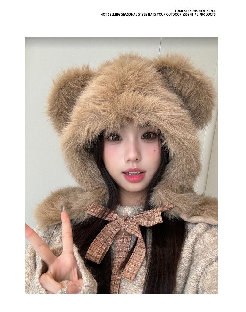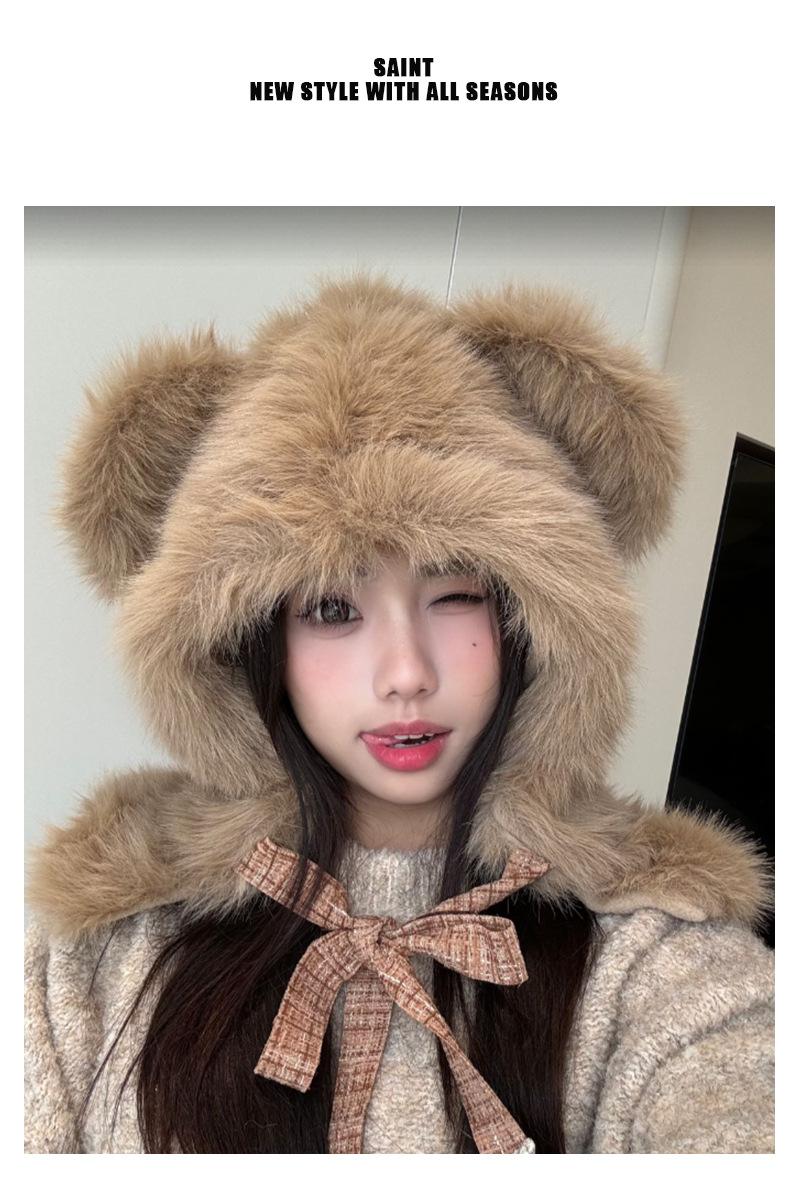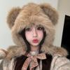 Bonito gorro de oso de peluche para mujer, de otoño e invierno, a la moda, grueso, cálido, con protección para los oídos, bufanda integrada, resistente al viento, gorro Lei Feng.