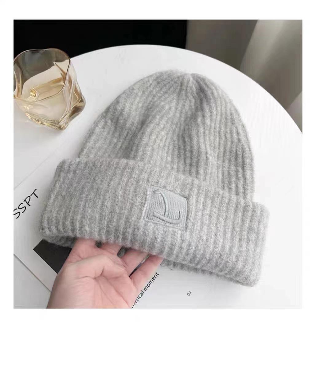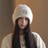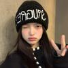 Gorro de lana de punto con estampado de letras para otoño e invierno, protector de orejas para mujer, cálido, estilo coreano, combina con todo, con aspecto de cara pequeña, estilo moderno.
