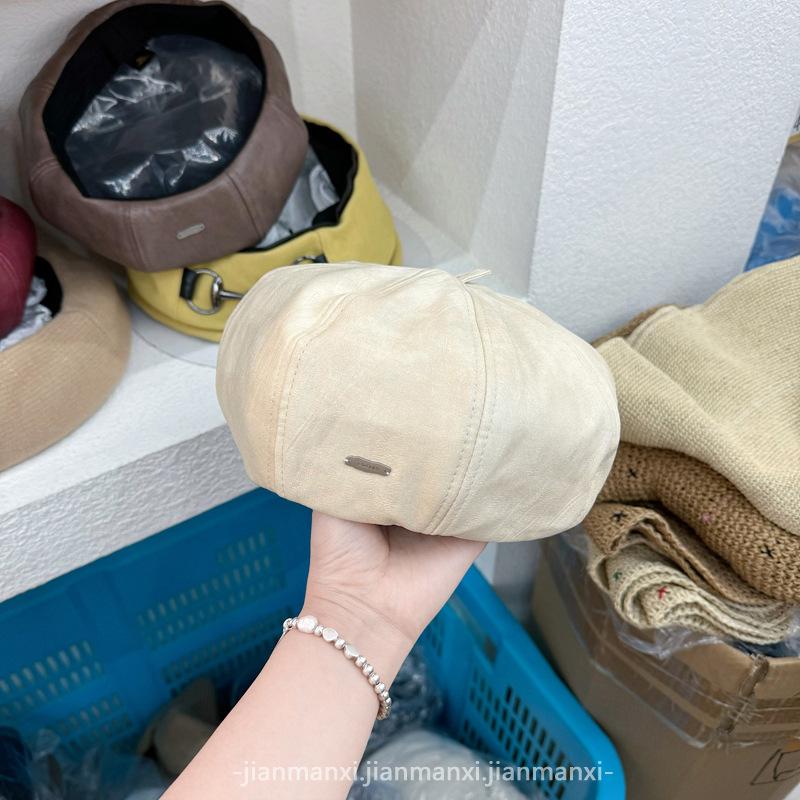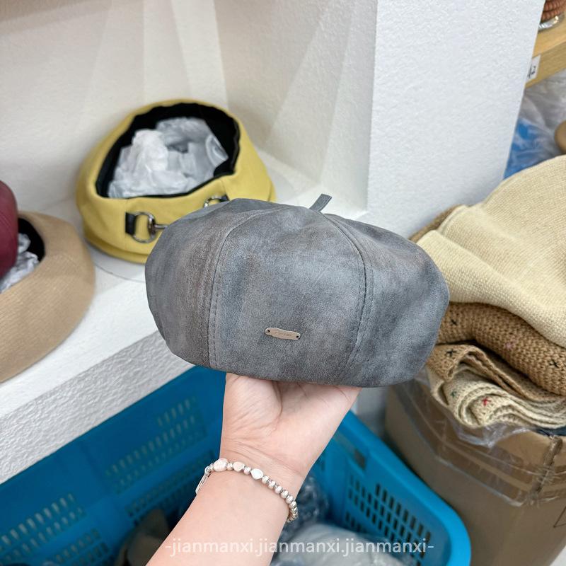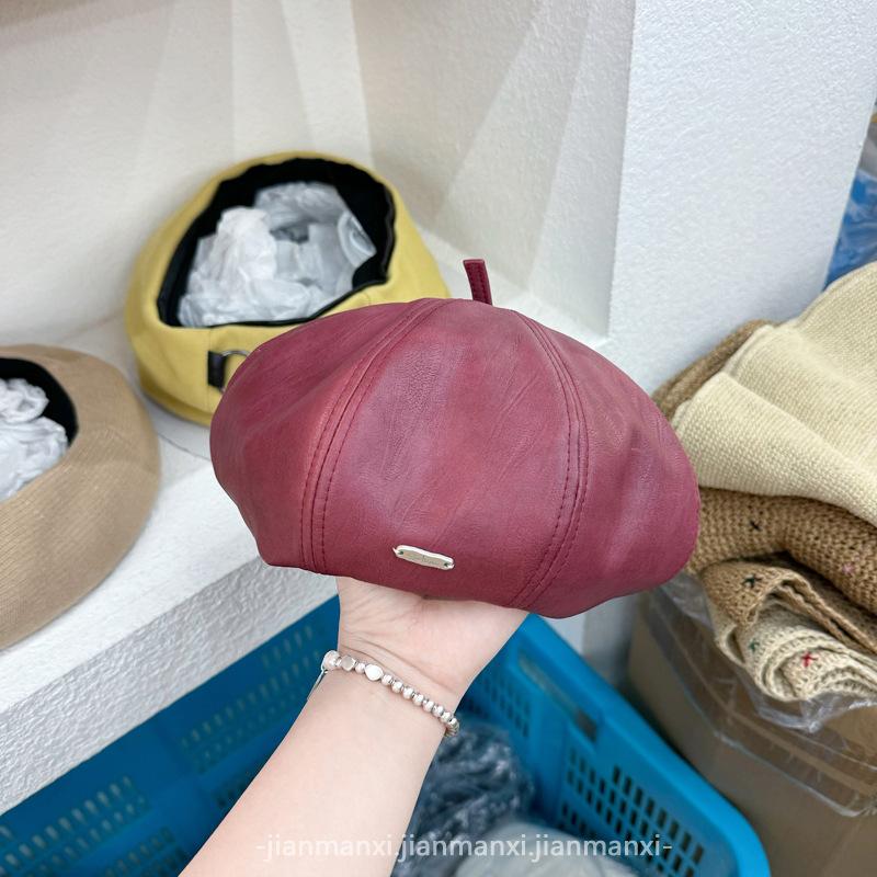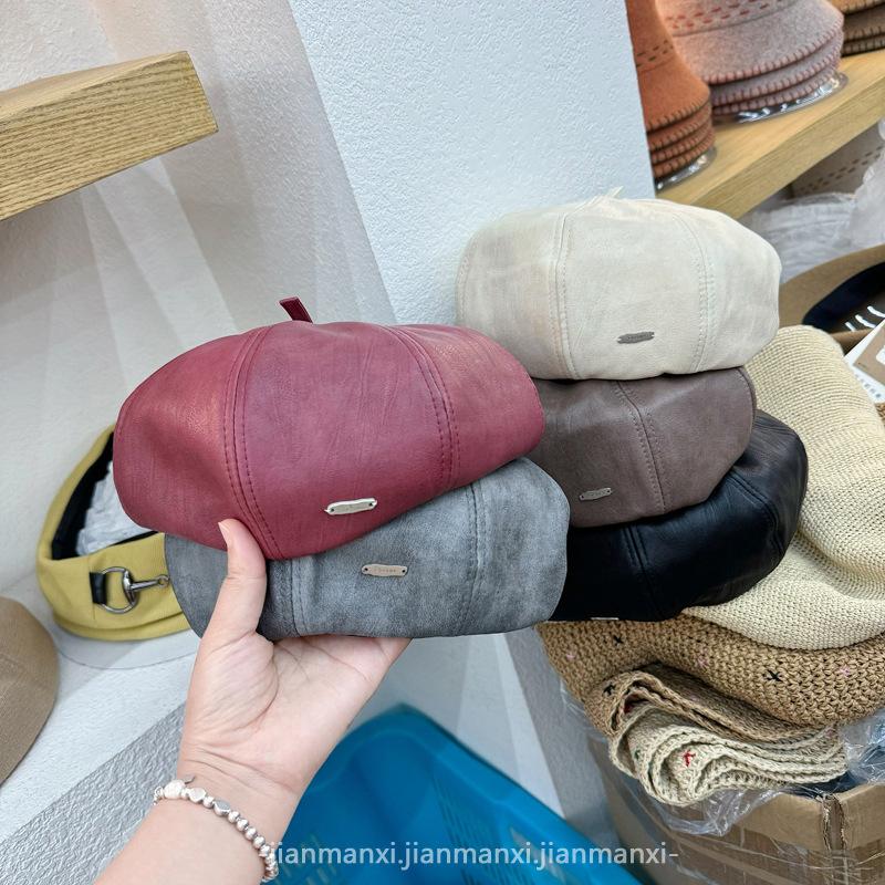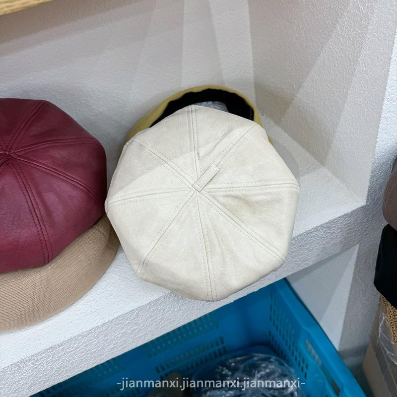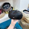 Boina de cuero sintético para otoño e invierno, nueva gorra octogonal, estilo retro extranjero, sombrero para niña, sombrero de temperamento simple para mujer, venta al por mayor