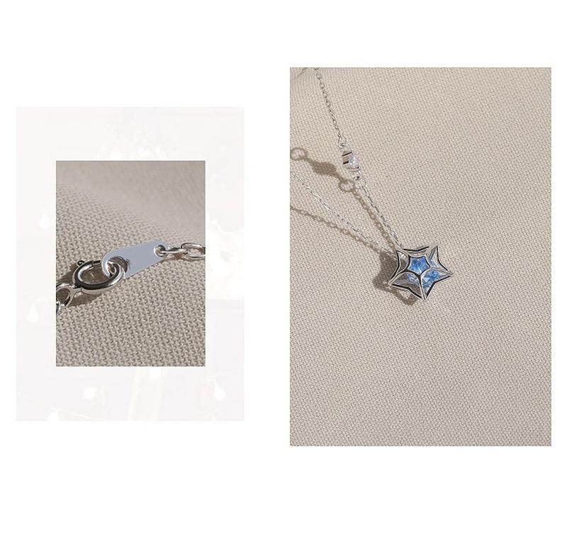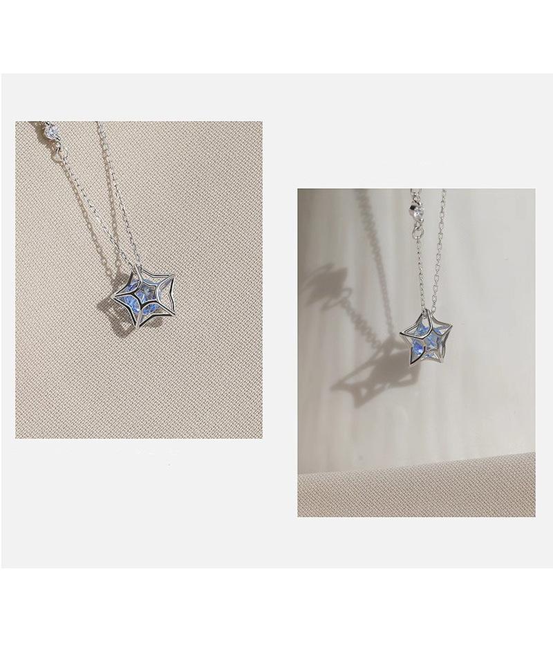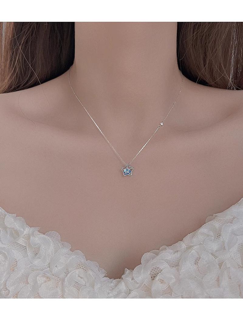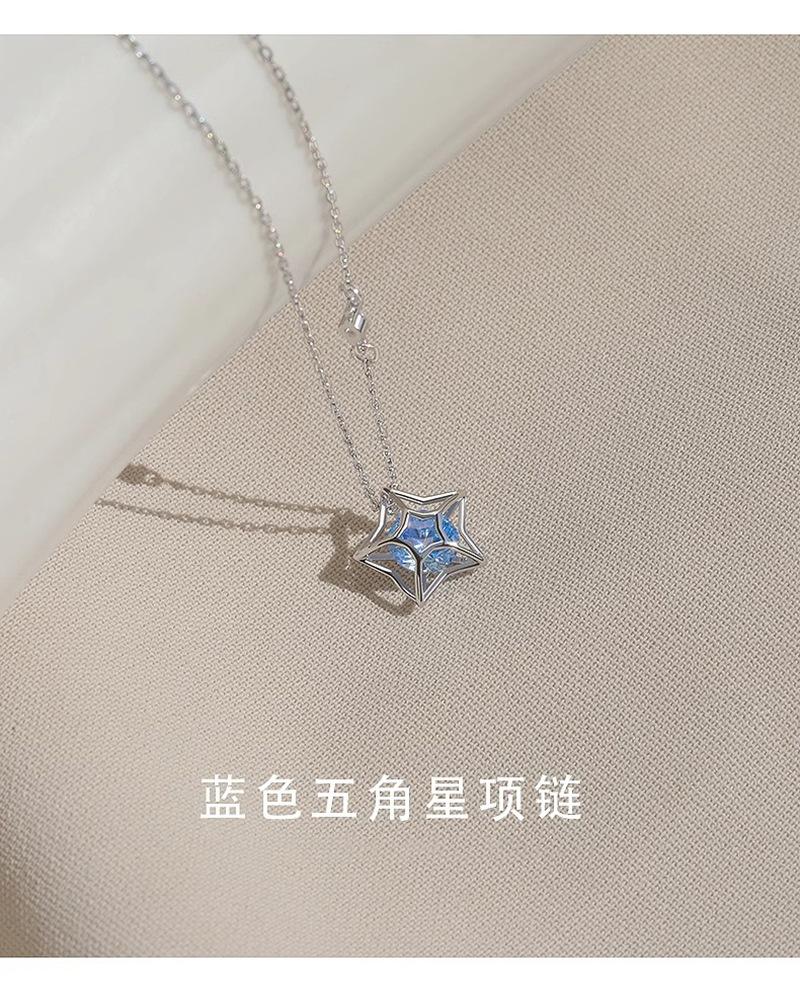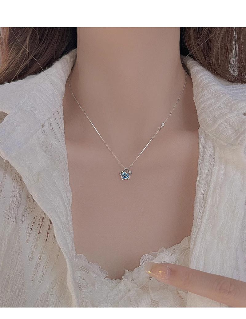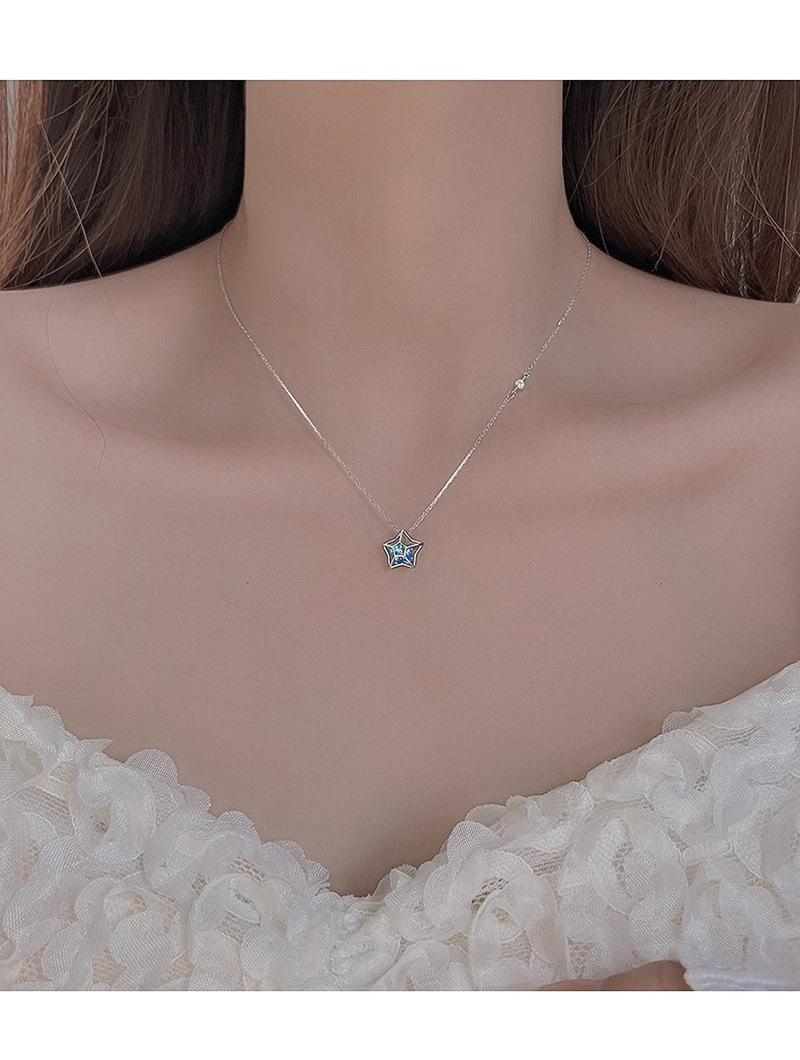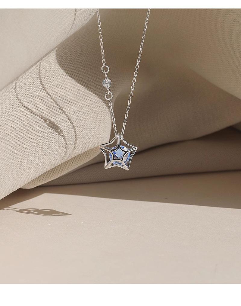 Collar hueco de estrella de cinco puntas con circonita azul para mujer, diseño de nicho simple, temperamento, cadena de clavícula de acero inoxidable, venta al por mayor