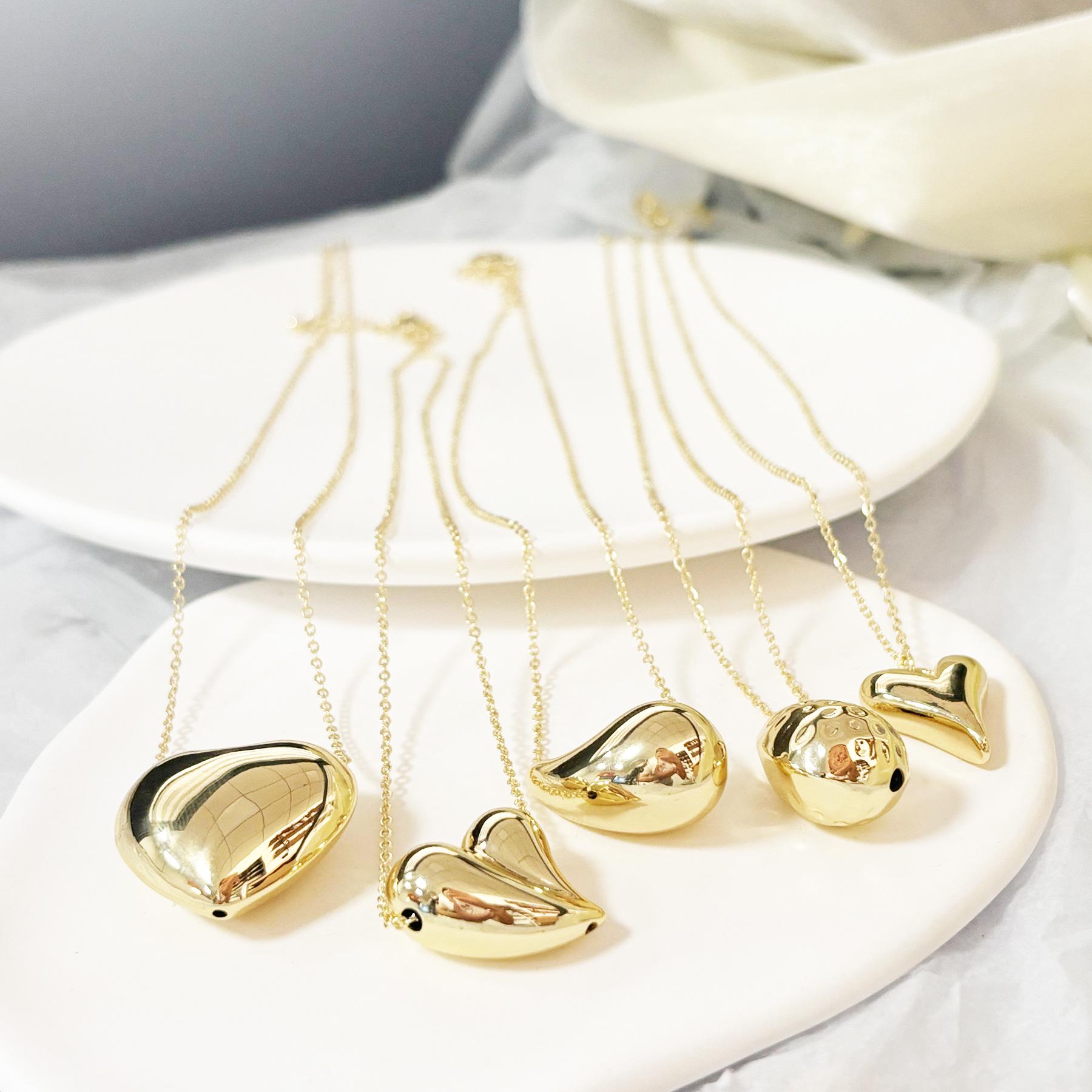 Collar geométrico de gota de agua de amor de alta calidad chapado en oro, cadena de suéter de acero inoxidable de moda, cadena de cuello, cadena de clavícula, venta al por mayor