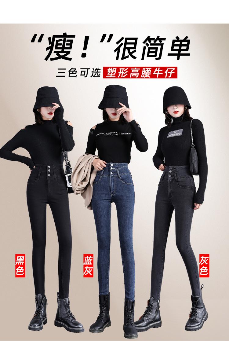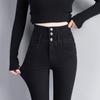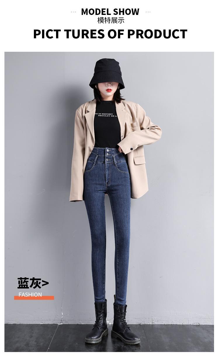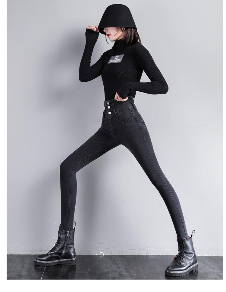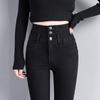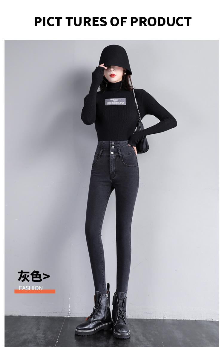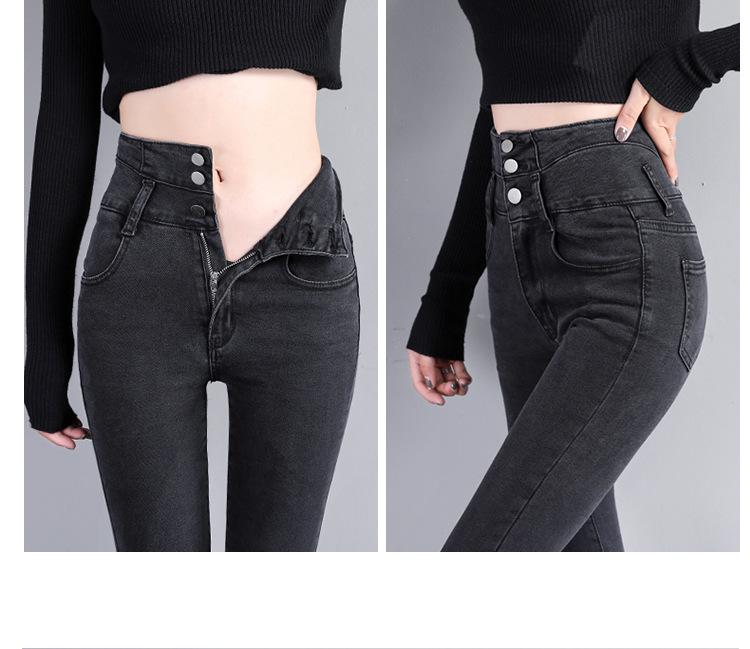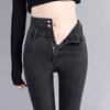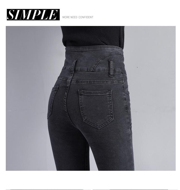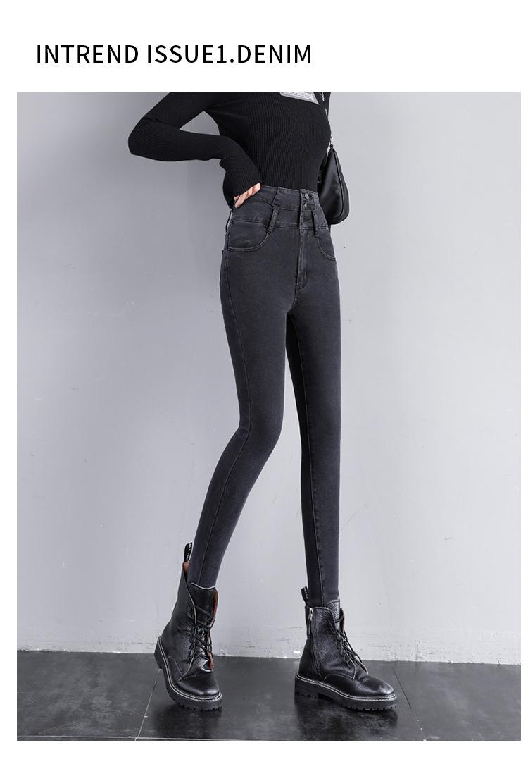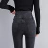 Pantalones vaqueros grises de cintura alta para mujer, ajustados y ajustados, de invierno, estilo coreano, elásticos y ajustados, para adelgazar.