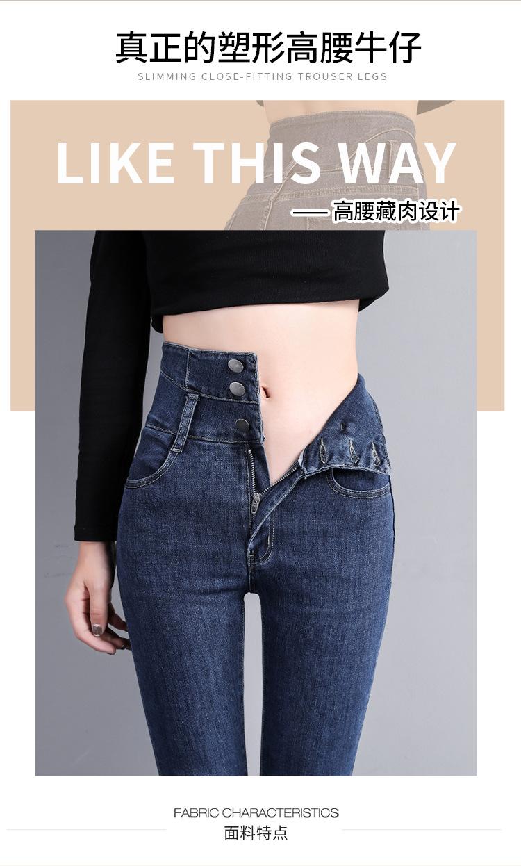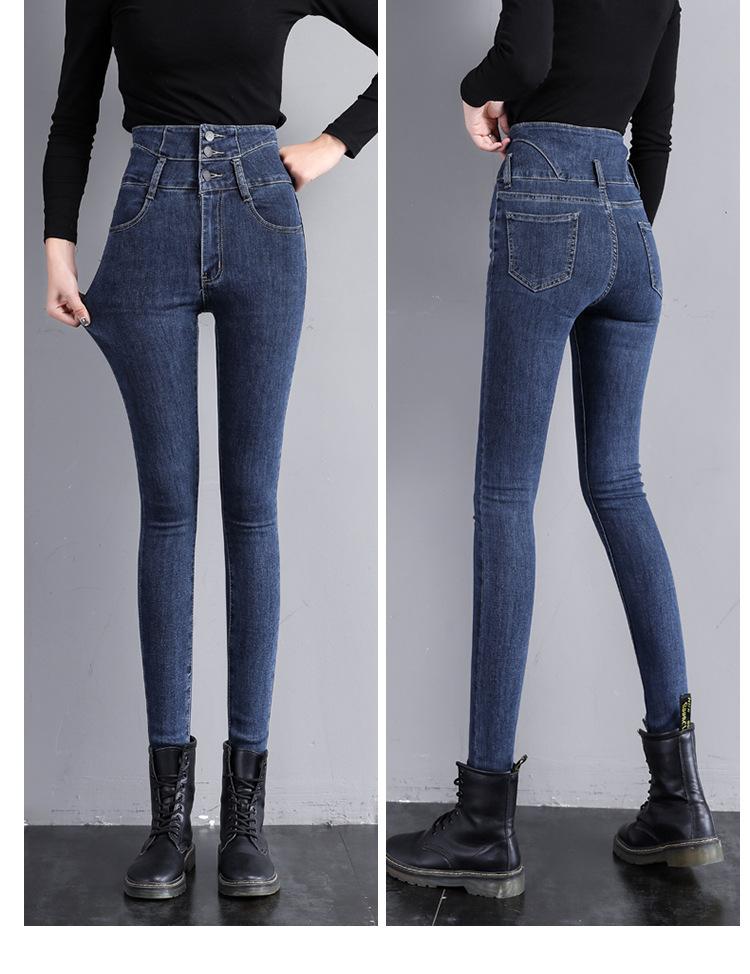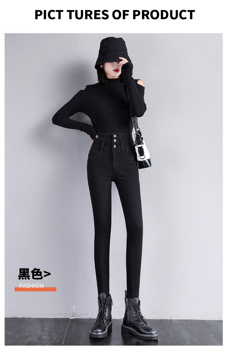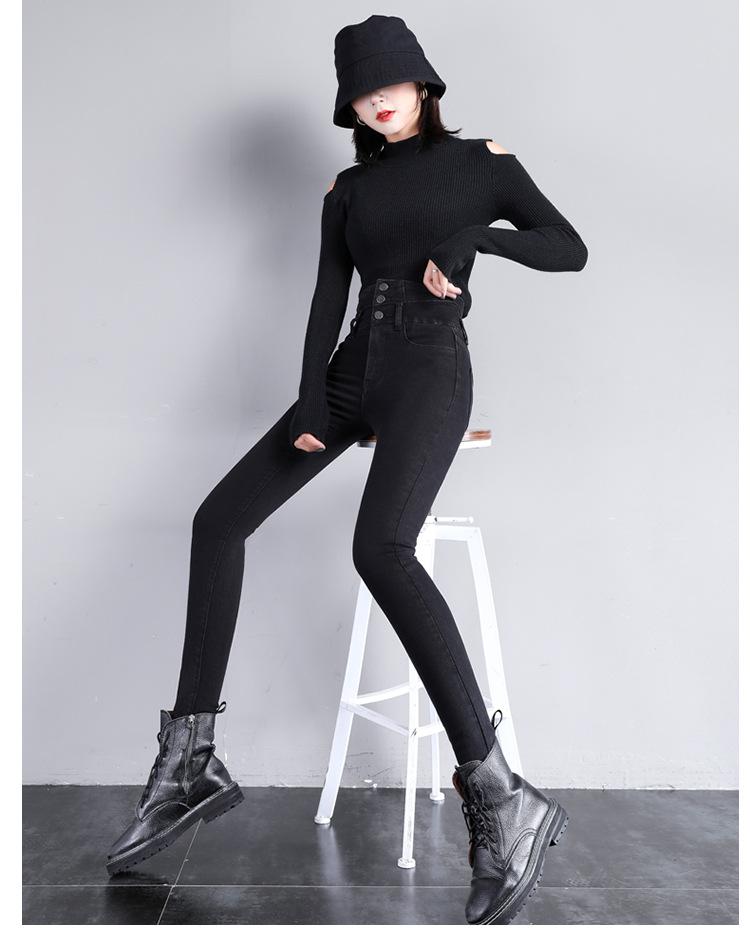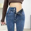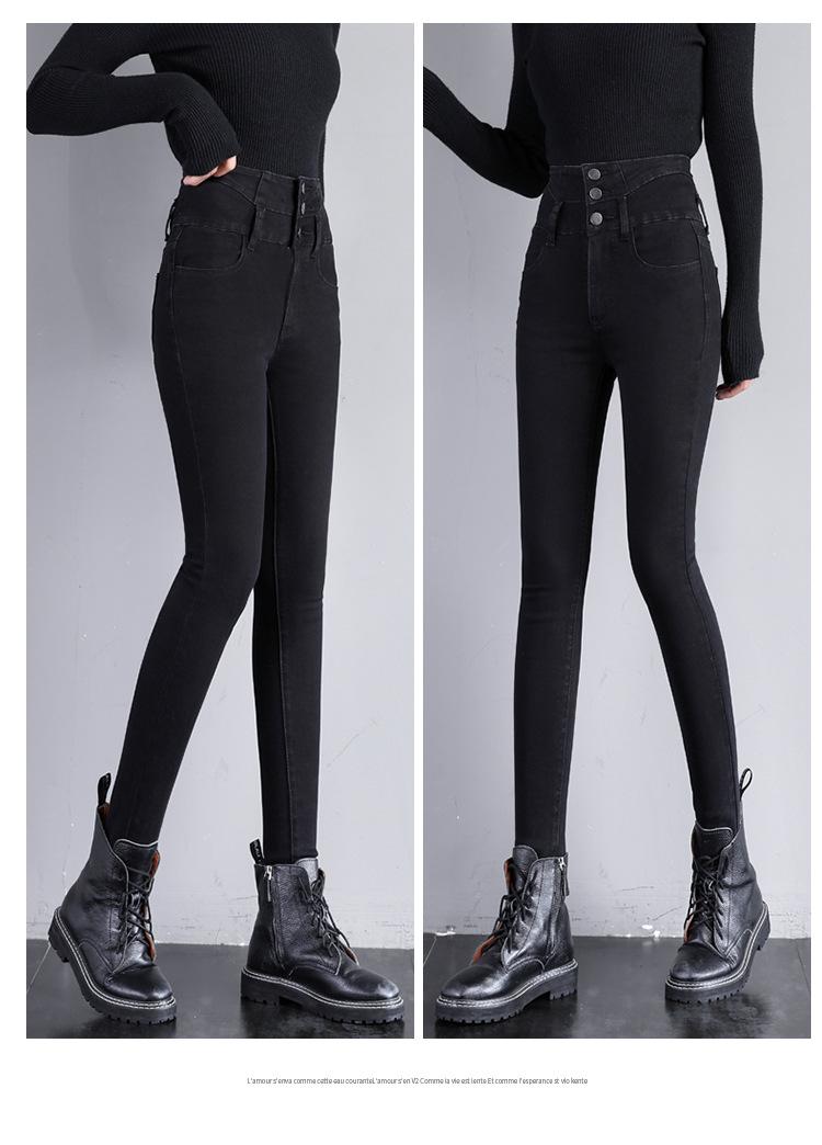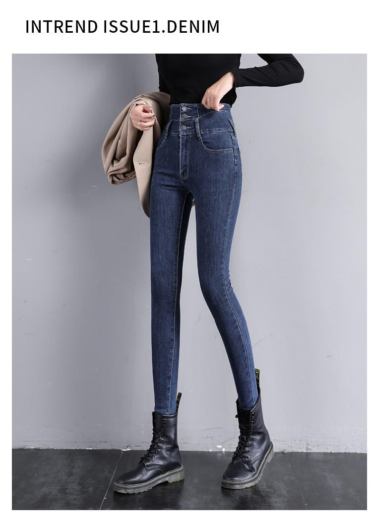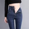 Pantalones vaqueros grises de cintura alta para mujer, ajustados y ajustados, de invierno, estilo coreano, elásticos y ajustados, para adelgazar.