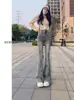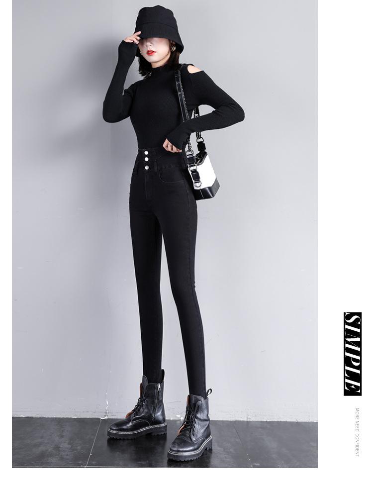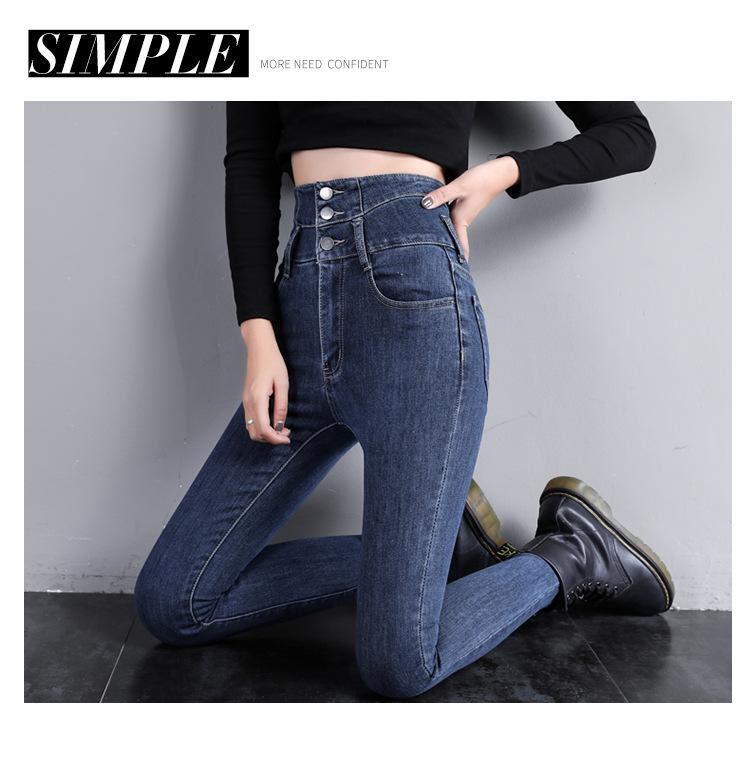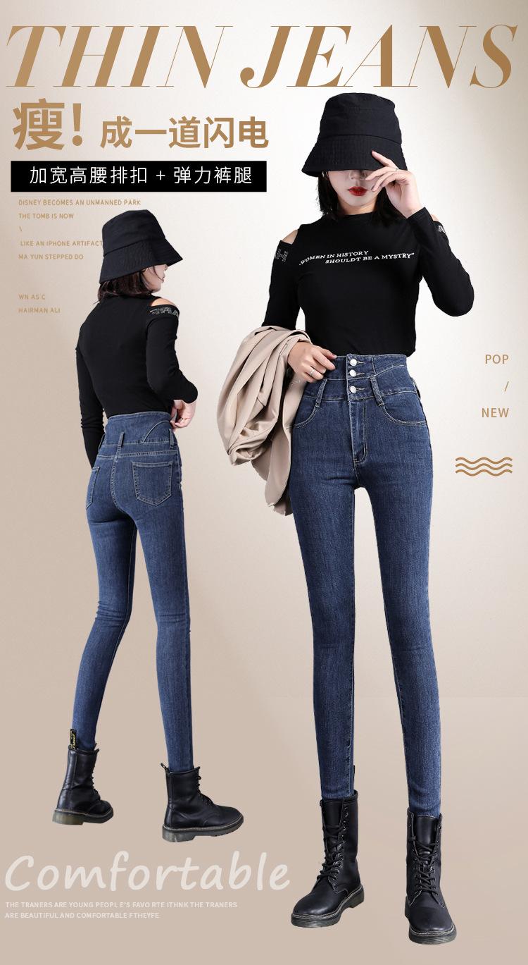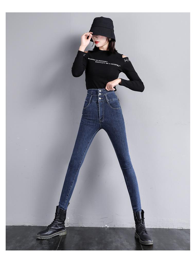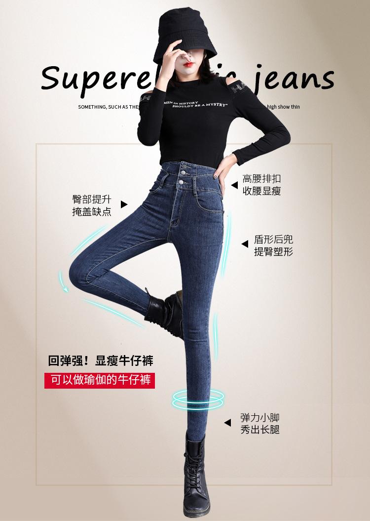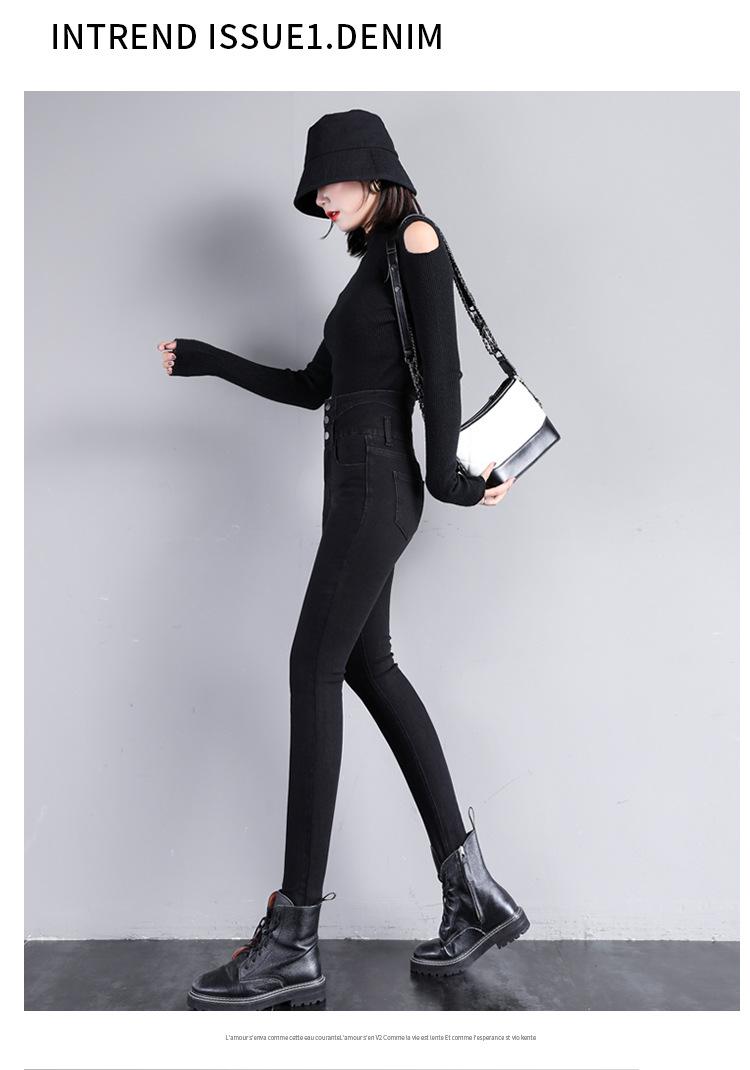 Pantalones vaqueros grises de cintura alta para mujer, ajustados y ajustados, de invierno, estilo coreano, elásticos y ajustados, para adelgazar.