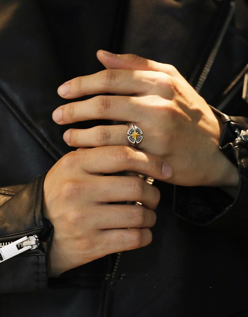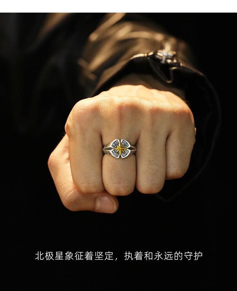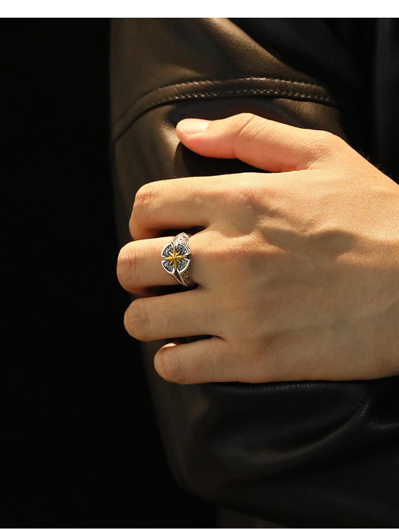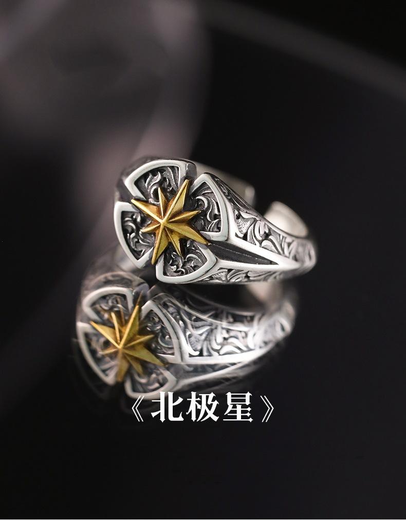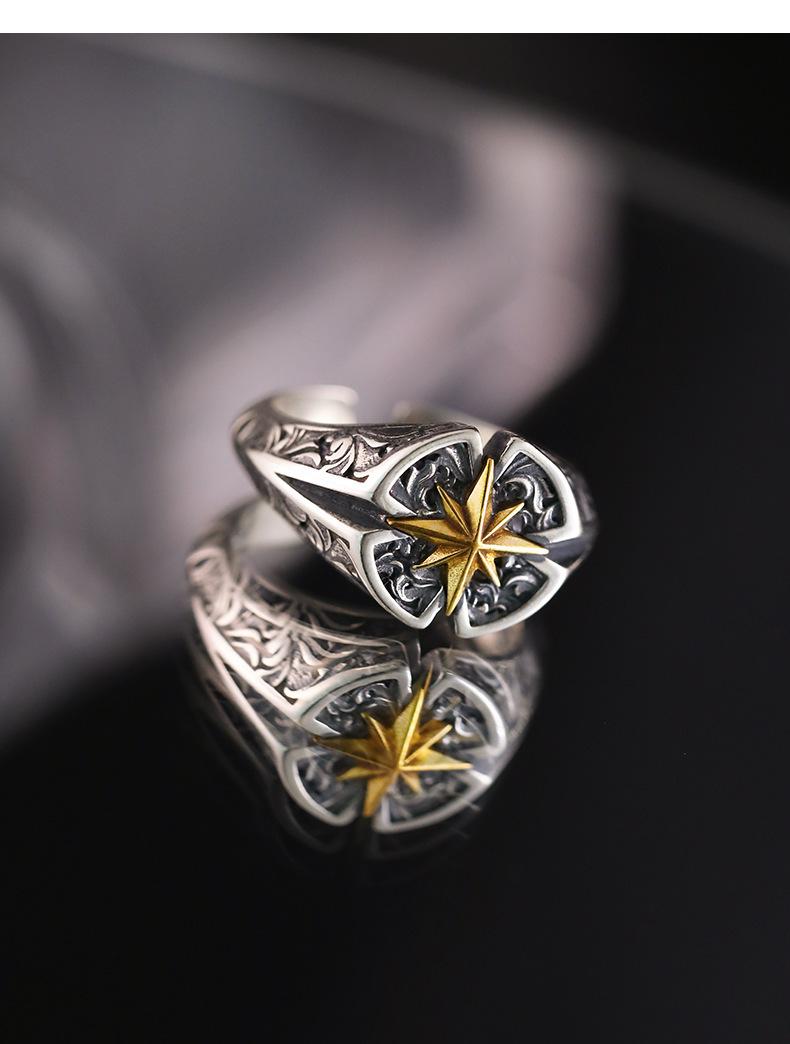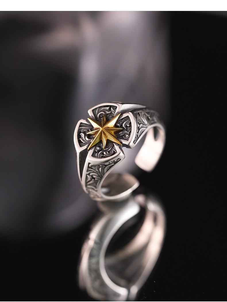 Anillo abierto de estilo frío con personalidad de alta calidad, estilo Polaris, estrella cruzada, combinable a la moda.