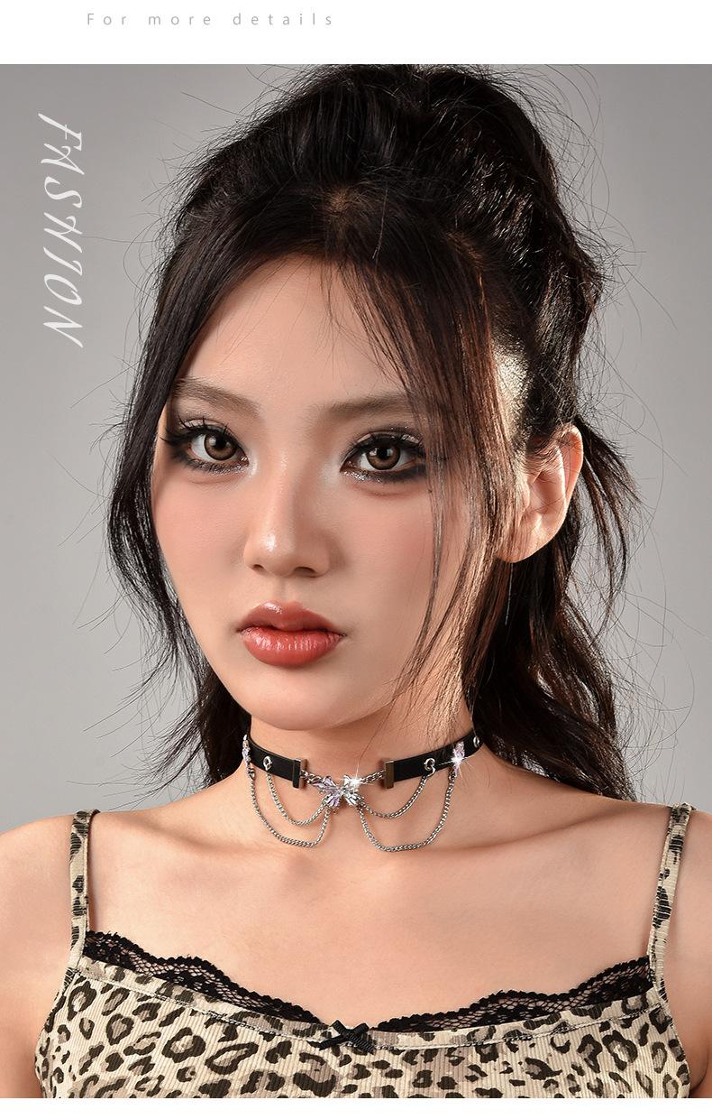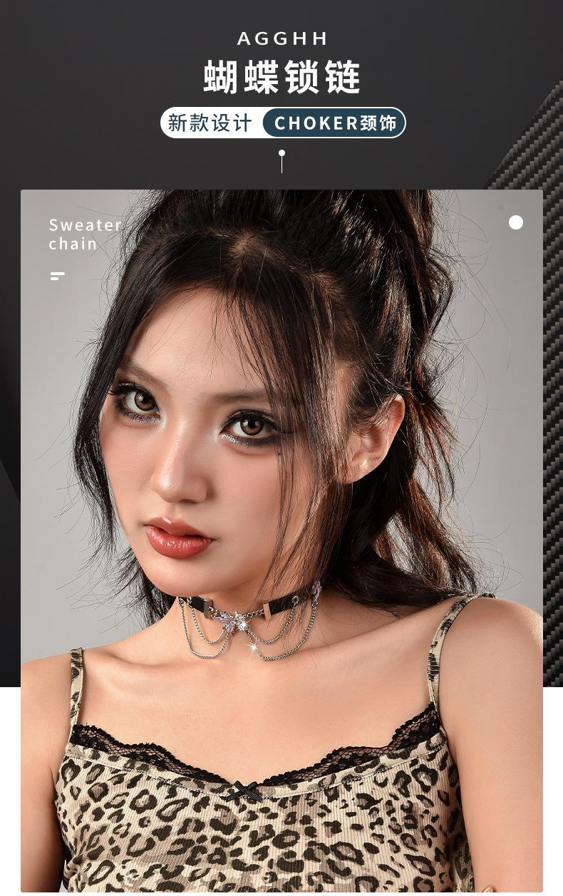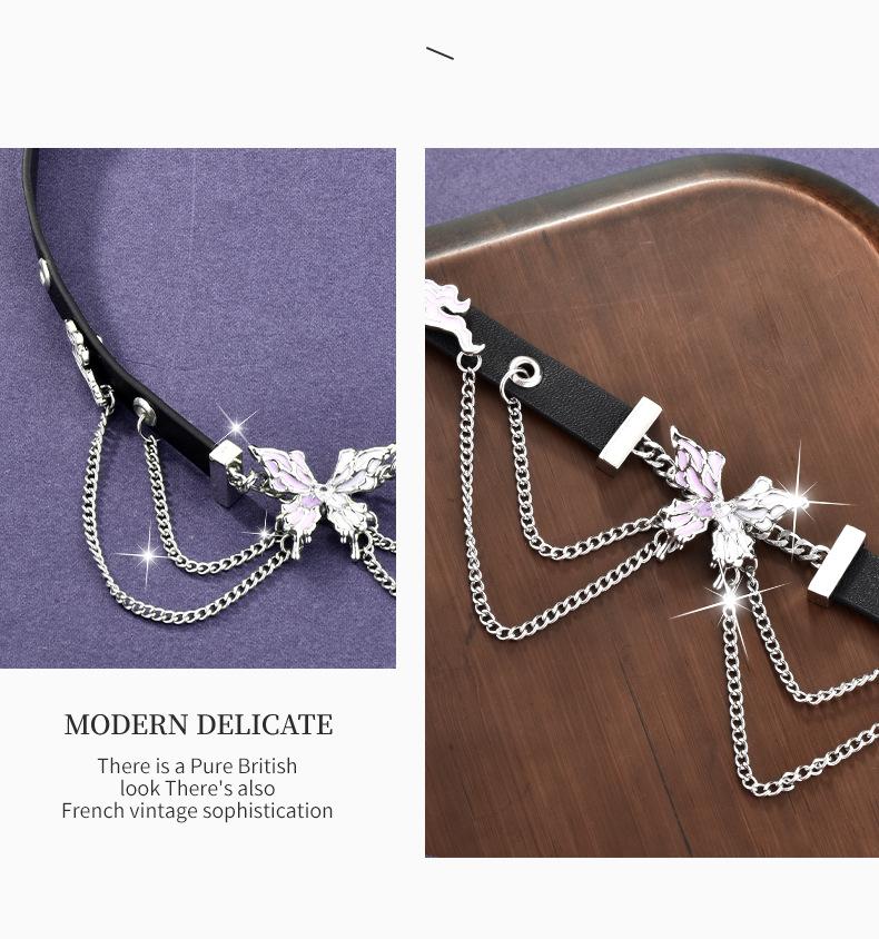 Collar elegante de cuero con borlas de mariposa y degradado, directo de fábrica, con diseño de nicho para mujer, correa para el cuello, cadena para clavícula, nuevo