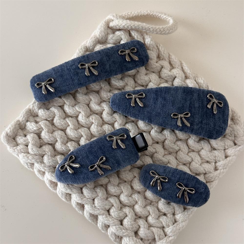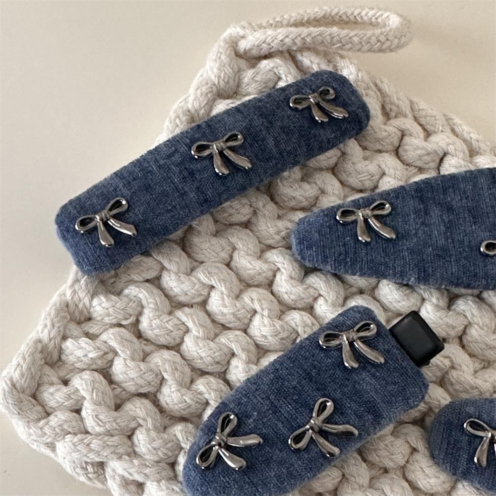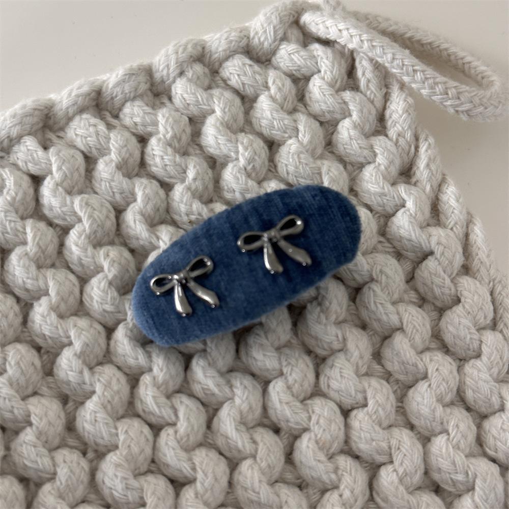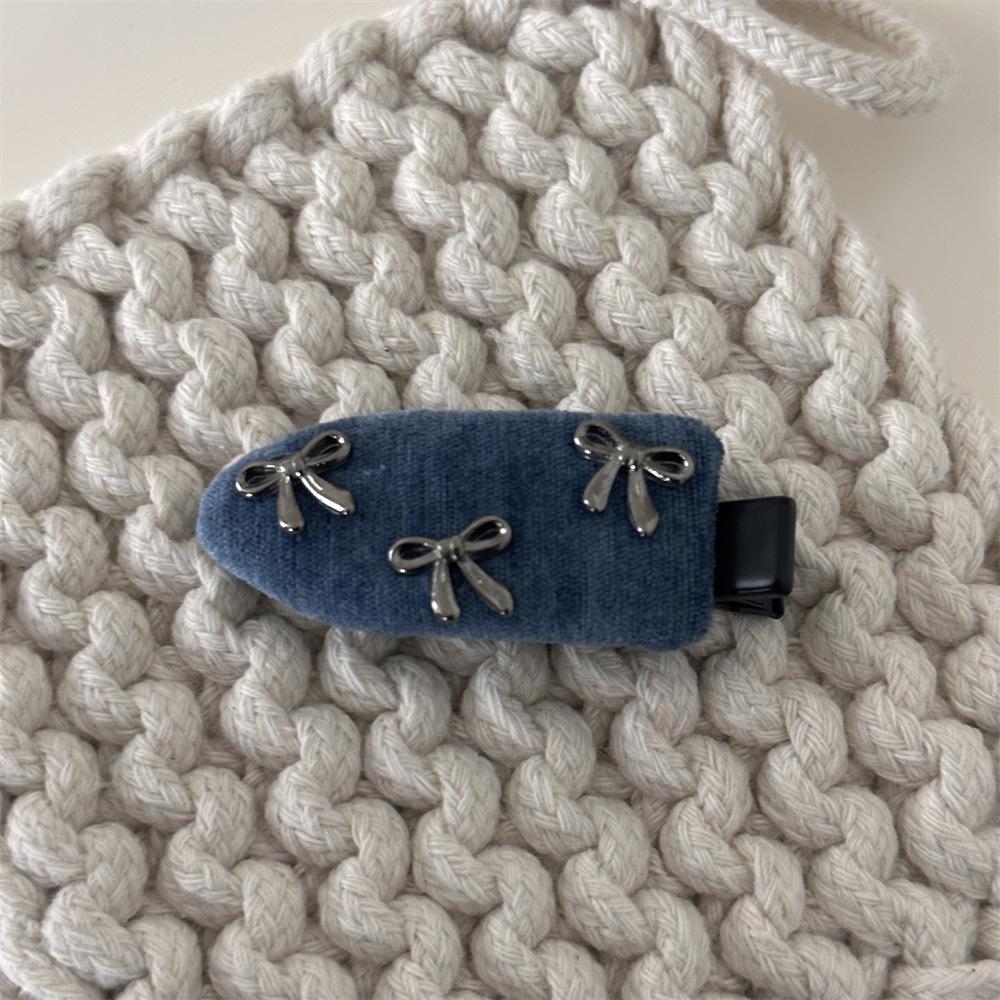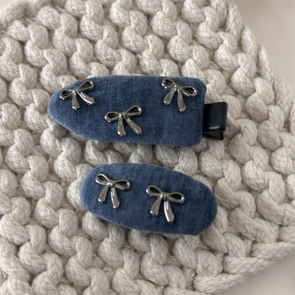 Estilo de Color Frío Elegante Sentido de Alta Gama Pasador Metálico Gris Distintivo Lazo Clip Lateral Accesorios para el Cabello Nuevo Estilo Accesorios para el Cabello de Mujer