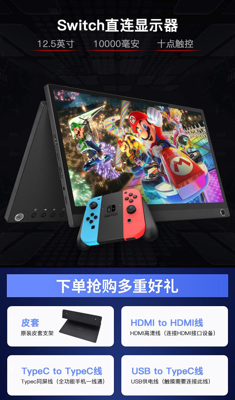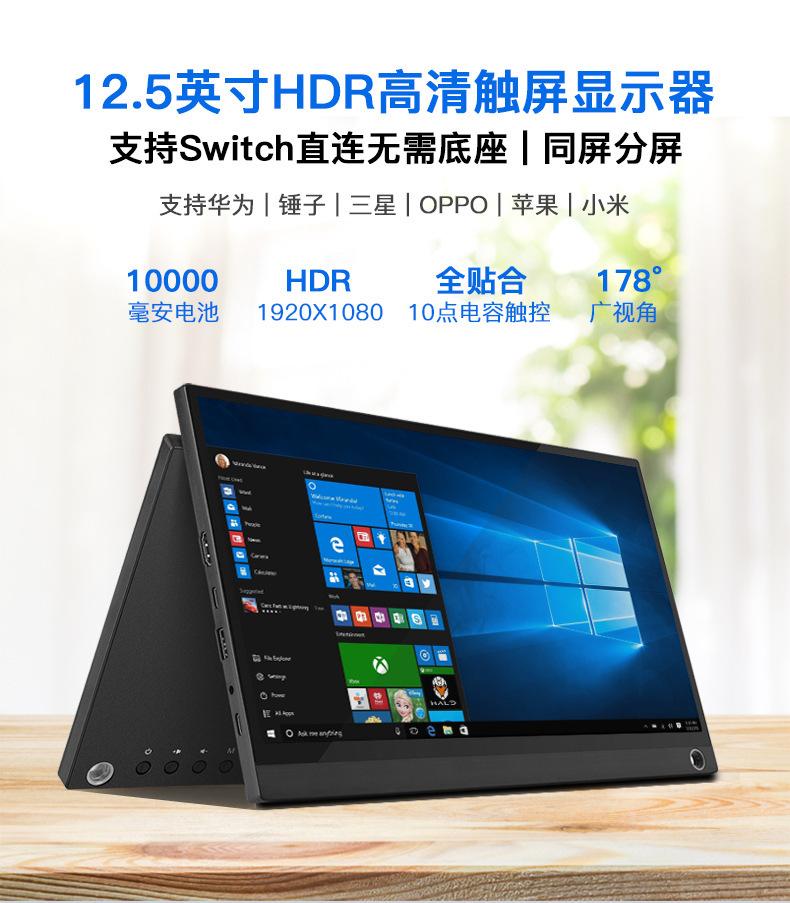 Pantalla portátil de 12.5 pulgadas soporta pantalla de juego ps4/ns/switch, pantalla de expansión para teléfono móvil y computadora