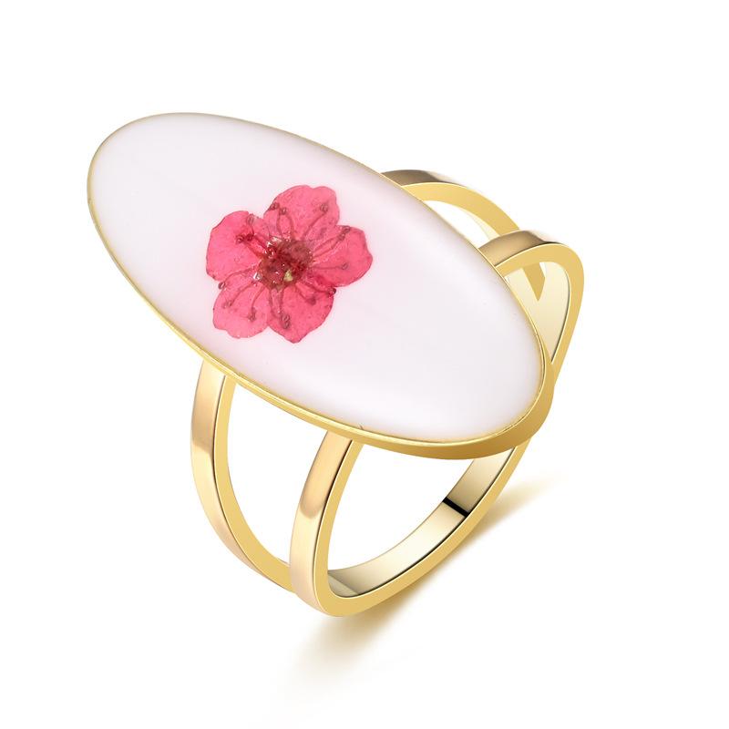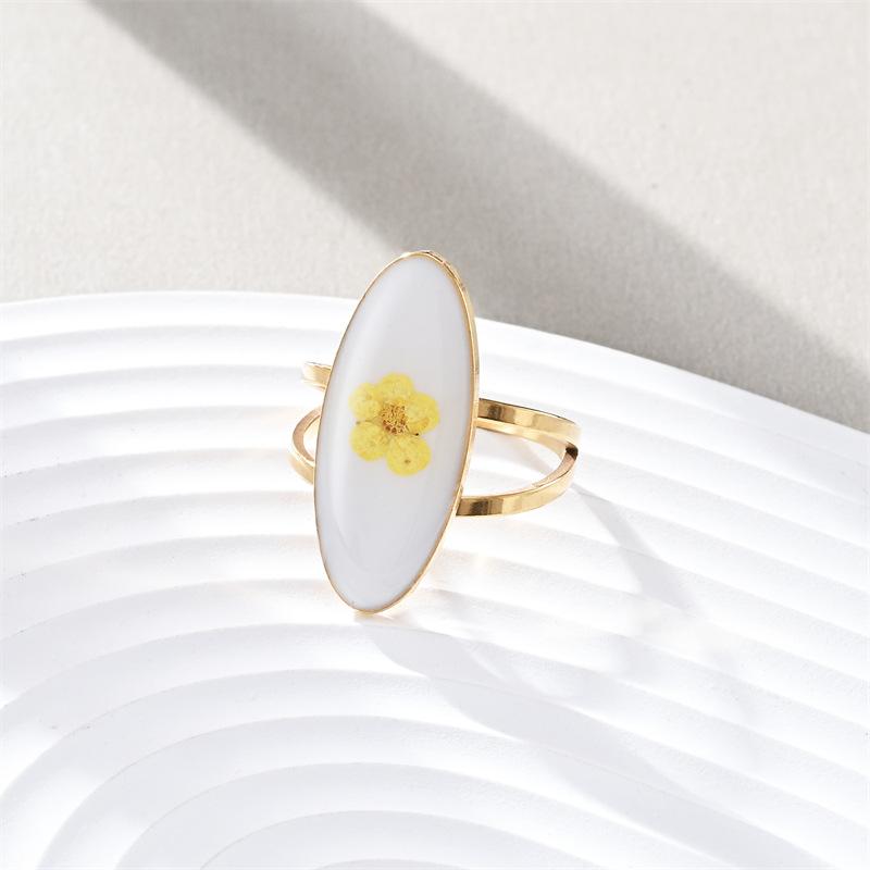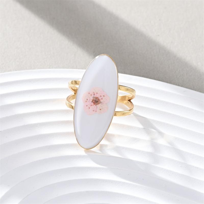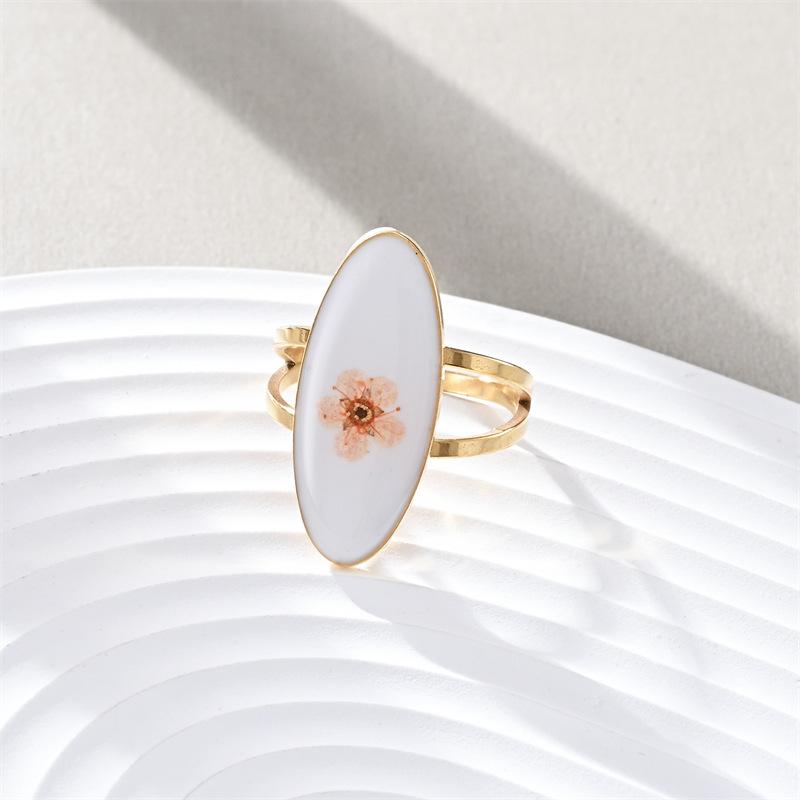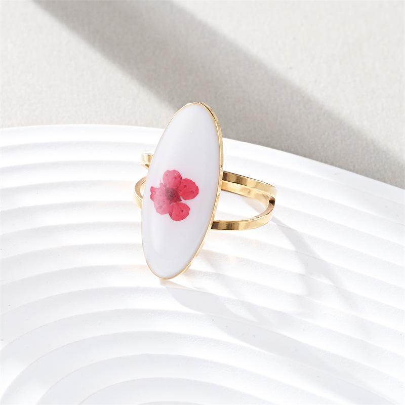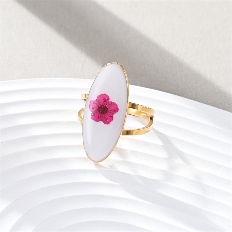 Anillo de dedo de acero inoxidable con personalidad europea y americana, con gota de aceite, flor ovalada, simple, lujoso, inmortal, con flor seca, para mujer, fabricantes, venta al por mayor